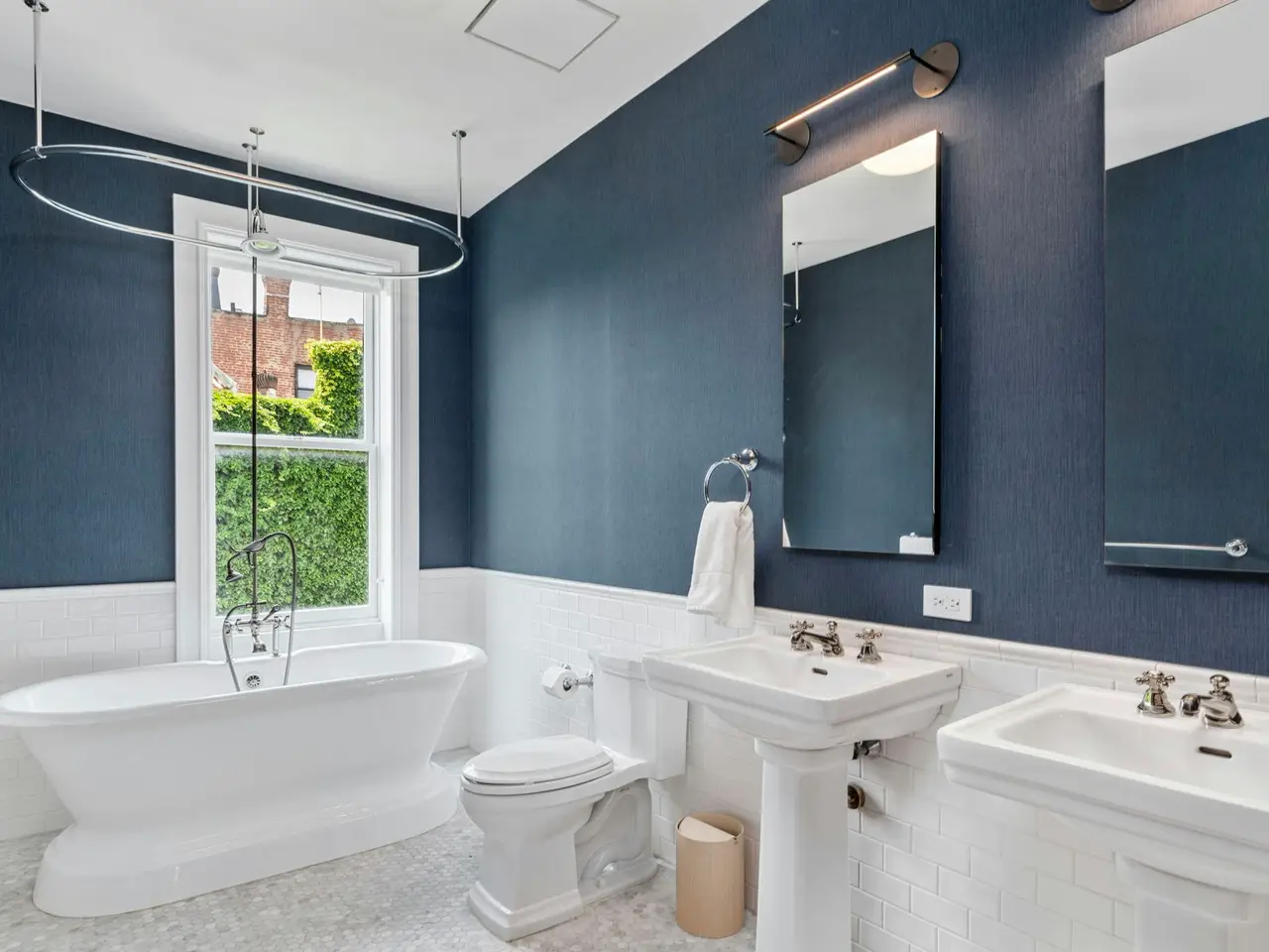 386 Stuyvesant Avenue was constructed in 1894 and is located on the prestigious "Doctor's Row" in Bedford Stuyvesant Brooklyn. Embodying all of the charm, exquisite craftsmanship and masterful attention to detail that is typical of its era, this home is still full of its original woodwork, even after undergoing a very thoughtful and modernizing renovation. It is a grand four-story, 19'' x 48'' home with over 3200 square feet of interior space and roughly 1000 square feet of exterior space in the backyard. All new mechanicals, electrical, and windows make this Brooklyn Townhouse rental a rare find and completely turn-key. Not only that, but the entire interior of the house was also re-imagined and designed by the world-renowned architect and interior designer, Michael Chen. Parlor floor: 10''4 ceiling height Classic Living and Dining rooms Chef's kitchen with abundant natural light provided by the very large bay windows (w/ stained glass insets.) There is also a small half-bathroom just off the main entrance hallway Second floor: Large master suite w/ loads of natural light Upholstered built-in banquet window seat Walk-in closets Windowed master bathroom that features dual sinks and a full glass standing shower A seating area that can function as an office, dressing room, or small library is located on the other end of the floor. Third floor: Three additional bedrooms A lovely full bathroom with a classic free-standing cast iron tub Large laundry room with additional shelves and storage. Restored skylights that brighten up the stairway, hall and floor during the daytime Garden Floor: 1000sf Backyard that is steps away from a full "Summer Kitchen, "outfitted with a refrigerator, sink, and plenty of storage space. Separate garden apartment w/ dedicated entry/exit not included in the rental Other notable features include: Washer / Dryer Dishwasher Hardwood Floors Decorative Fireplaces Soaking Tub and Showers High Ceilings Bay Windows Skylights Windowed Bathrooms Recessed Lighting Walk-in Closets Backyard Eastern, Western and Southern exposures Transportation: The express A train is just several blocks away, along with a number of bus route options. While the Townhouse does not have a garage, there are always more than enough of spaces for parking on the street.