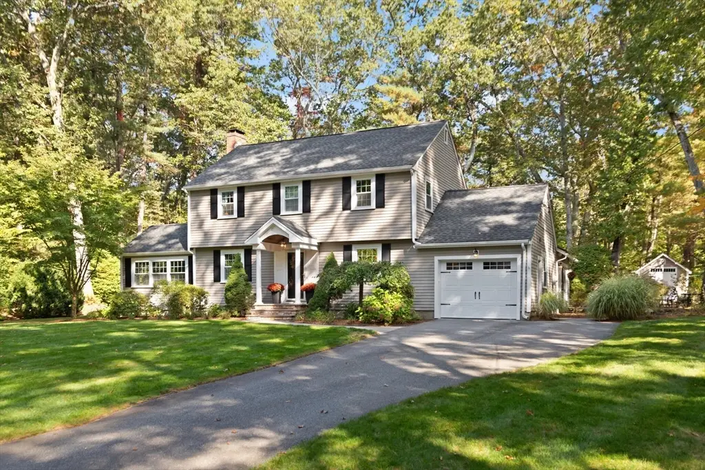 This picture-perfect colonial home is nestled in a peaceful cul-de-sac and exudes maximum curb appeal! Meticulously maintained and updated, this residence features upgraded windows and doors, a brand-new heating system, central air conditioning, and much more! The grand vaulted family room serves as the heart of the home where a wood-burning fireplace acts as a warm focal point, illuminated by oversized picture windows for abundant natural light. This room also provides easy access to two beautiful outdoor patios, perfect for dining al fresco, sipping morning coffee, or entertaining guests. The yard is private, and expansive, offering hours of enjoyment and play. A cozy front-to-back living room features French doors that lead to a bright and cheerful home office or playroom. The second level is home to 4 bedrooms and a full bath, while the lower level boasts a great bonus room, ample storage, and a large unfinished space with great finish potential. This home is truly a gem!
