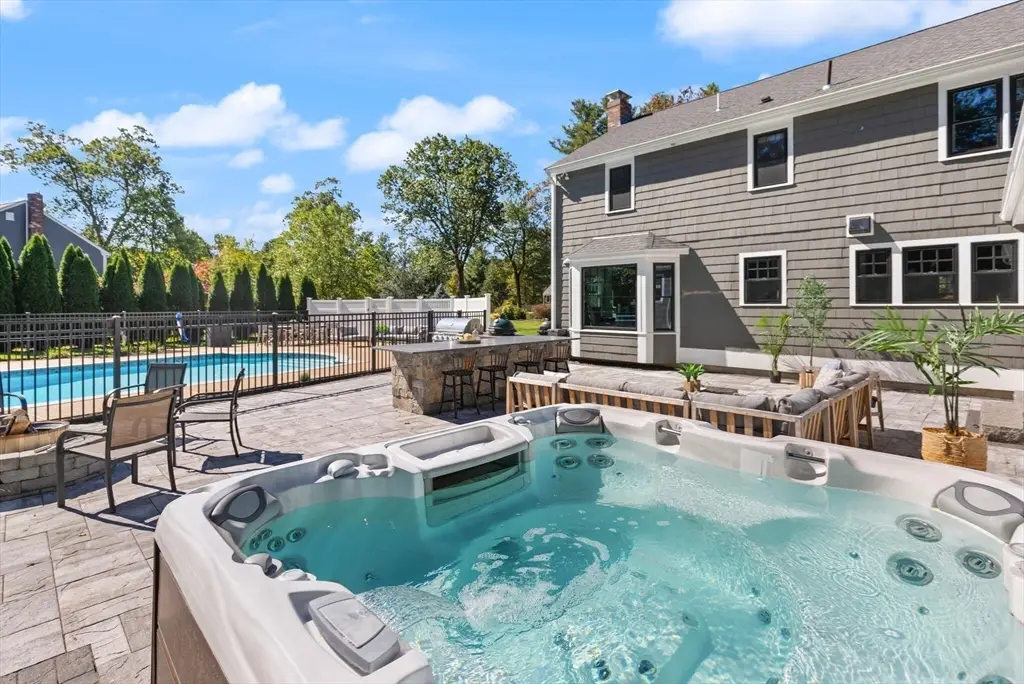 Don't mistake this home for a "Classic Colonial"; this property has been completely transformed inside and out through a meticulous and custom renovation. The result is a stunning residence featuring warm woods, crisp whites, and coastal hues. The entire property feels like a Shangri-La, set in a peaceful and welcoming neighborhood. Key features include a one-acre parcel, four-bay garage with EV charger, 5 bedrooms on the upper level, along with a guest suite on the first floor that includes a full bath and a walk-in closet. YouÆll also find 2 laundry rooms, 2 walk-in pantries, 2 dishwashers, and a large mudroom, among many other incredible amenities. Entertain friends and family in your own paradise, complete with an inground heated swimming pool, hot tub, fire pit, outdoor kitchen plumbed with a 36" gas grill and a built-in Big Green Egg! Plus, you'll have plenty of space for outdoor activities in your expansive yard! There's nothing to do here but move right in. A remarkable home!