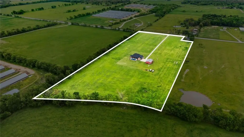 Discover this exquisite 4,693 sq. ft., 4-bedroom, 4.5-bathroom estate home set on 20 lush acres. This two-story gem offers a perfect blend of luxury and functionality. The expansive open entertainment area features a projection screen and a massive game room, ideal for hosting gatherings. The open kitchen, with granite and hardwood, seamlessly flows into the living room, complete with a cozy gas fireplace, creating a warm and inviting atmosphere. Step outside to the covered porch and entertainment area, where you'll find an in-ground saltwater pool, perfect for relaxation and outdoor fun. The master suite is a true retreat, boasting an oversized walk-in, dual entrance closet, and an open floor plan master bath designed for ultimate comfort. The property is adorned with lush grass, providing a serene and picturesque setting. Additionally, a large 60 x 40 insulated shop with electric and three overhead doors offers ample space for projects and storage. This gorgeous estate offers a unique blend of elegance.
