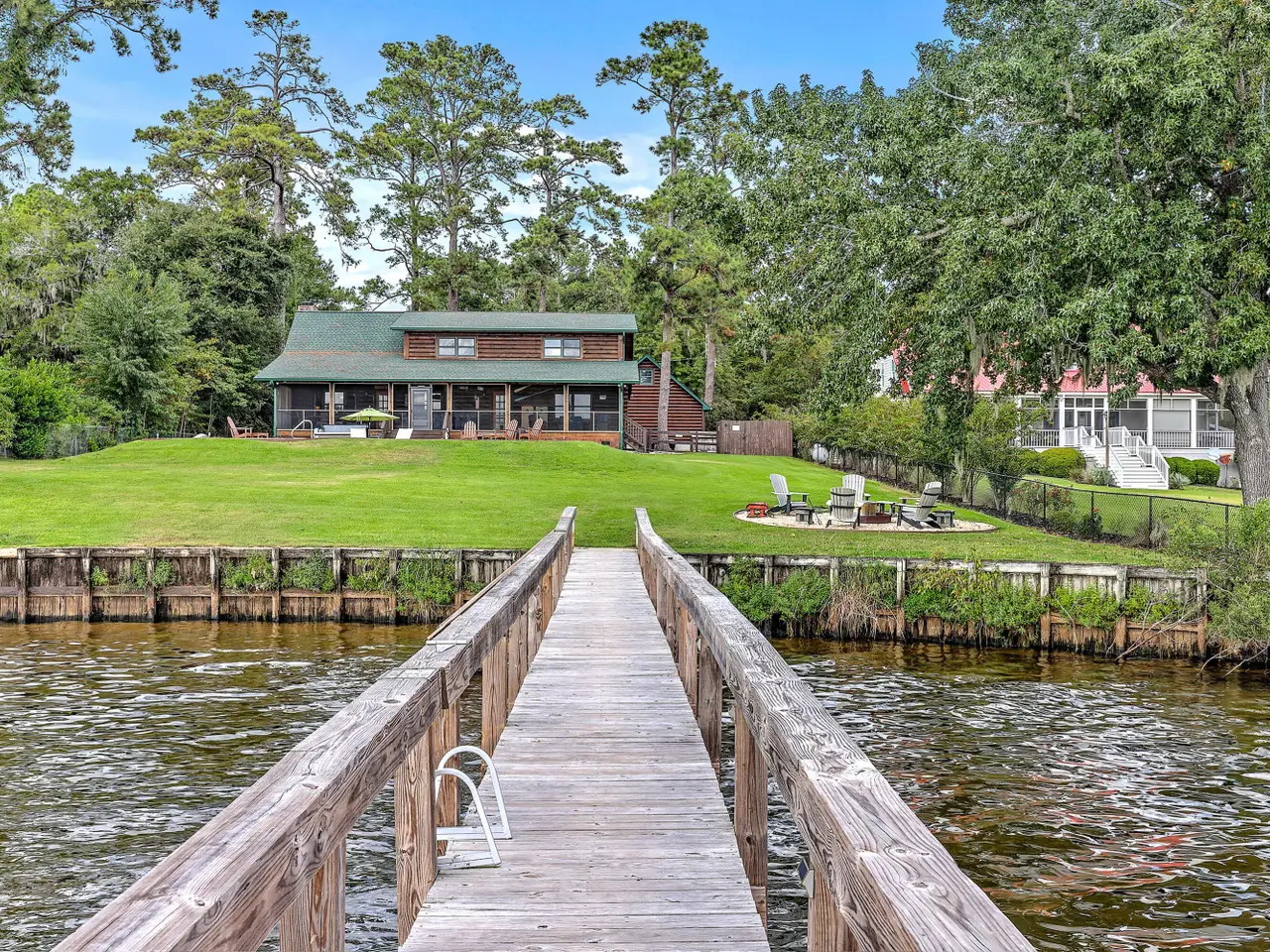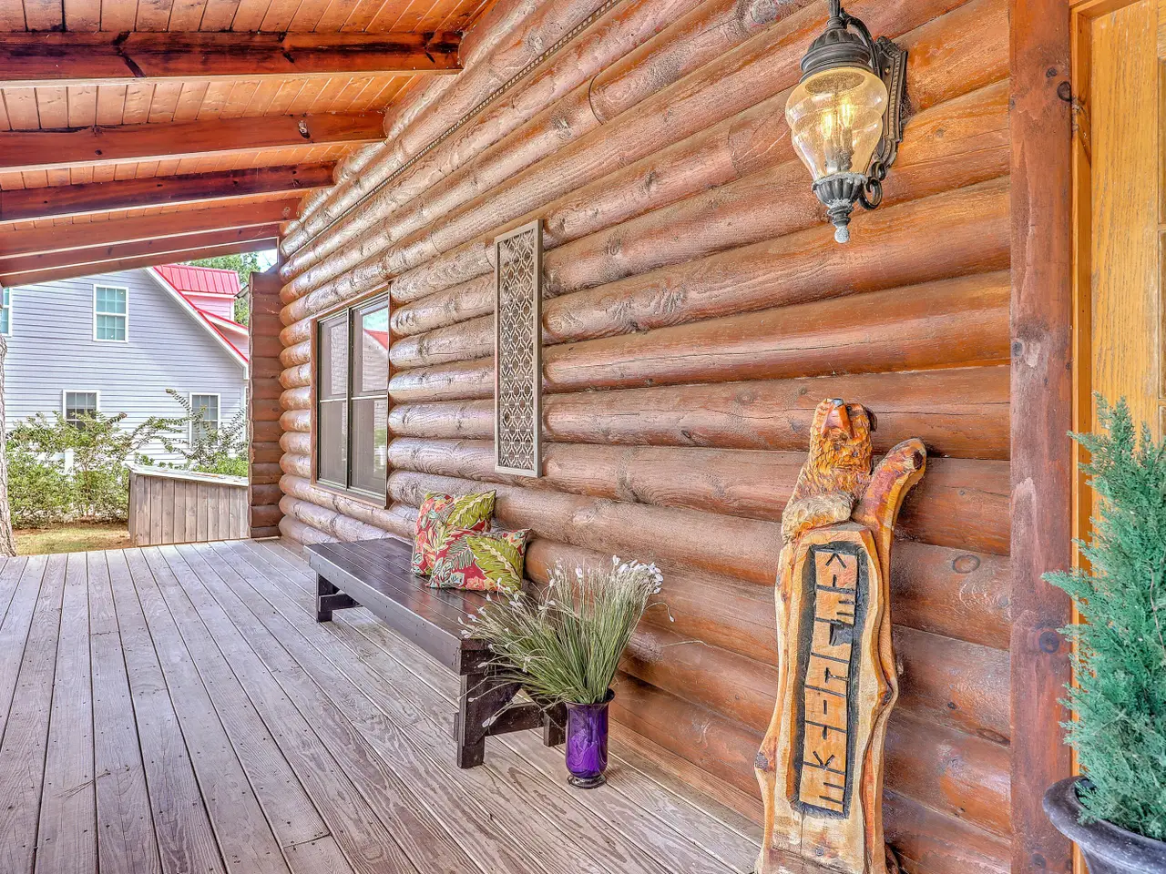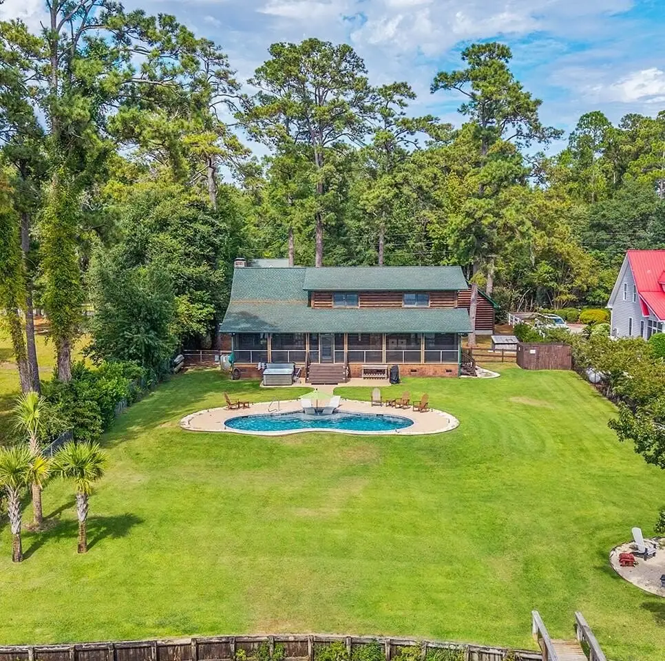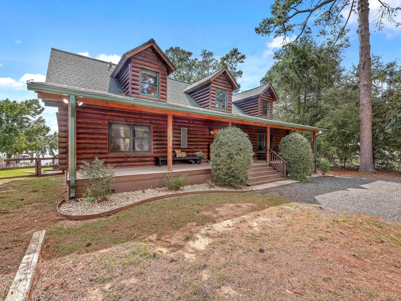 Discover a tranquil escape with this custom-built log cabin situated on the serene shores of Lake Marion. This property masterfully combines rustic elegance with modern amenities, offering an ideal opportunity for a second home, primary residence, or a lucrative short-term rental investment.Experience the grandeur of an open-concept living space with soaring ceilings crafted from tongue-and-groove heart pine, centered around a magnificent stone fireplace. The fireplace, enhanced by a reclaimed mantle originating from the 2002 San Juan forest fire, provides the perfect ambiance for cozy evenings. Culinary enthusiasts will delight in the chef's kitchen, which features custom live-edge countertops from Texas, bespoke Cypress and Hickory cabinetry, and premium appliances including an ice maker and wine cooler. The first floor offers two spacious bedrooms and a well-appointed bathroom with dual sinks and granite counters, complemented by a full laundry room for ultimate convenience. Upstairs, a private primary suite awaits, featuring a walk-in closet and an en suite bath with a clawfoot tub, walk-in shower, and dual vanities. Step outside to a screened porch, complete with a custom bar offering seating for eight, a sink, mini-fridge, and gas burner, making it an ideal space for entertaining. The backyard oasis includes a custom Gunite pool, a six-person hot tub, a grilling station, a firepit area, and a private fishing pier perfect for savoring Lake Marion's stunning sunsets. This log cabin is crafted with 9-inch spruce logs using the Swedish coping style, professionally sealed in 2022, ensuring sturdy construction. An oversized 4-car garage, equipped with a full bath, and an unfinished upstairs offers excellent potential for additional living space. Recent upgrades include a 40-year architectural roof, new gutters, a Rinnai tankless water heater, and an efficient 2022 HVAC system. Located on the north shore of Lake Marion, this property is just minutes from I-95, providing convenient access for day trips to Charleston, Myrtle Beach, and Columbia. The area is renowned for its natural beauty and tranquility, making it an appealing retreat for water sports enthusiasts, nature lovers, and those seeking a peaceful lifestyle. Currently operating as a successful short-term rental, this property accommodates up to 14 guests and boasts over 150 five-star reviews, consistently generating well over $100,000 annually. Whether you're looking for a charming home to call your own or an investment property with proven income potential, this Lake Marion cabin offers a perfect blend of appeal and practicality. Contact us to schedule a viewing or for more information about this exceptional property. Disclosure: The ability to operate a short-term rental in this jurisdiction is subject to local laws and regulations, which may change over time. There is no guarantee that the current permissions or allowances for short-term rentals will remain in effect in the future. Prospective buyers are encouraged to conduct their own due diligence regarding the current and future status of short-term rental regulations.
