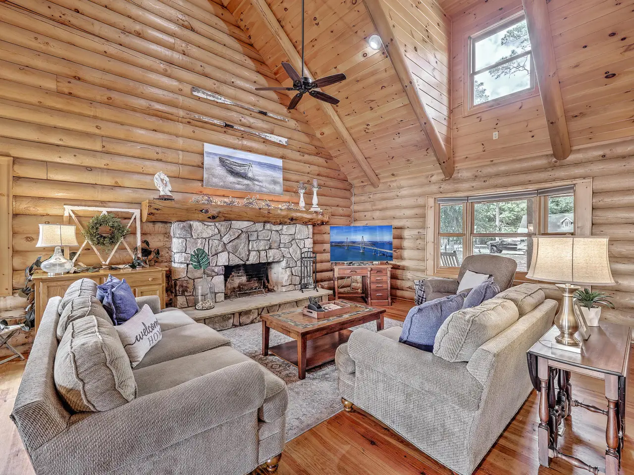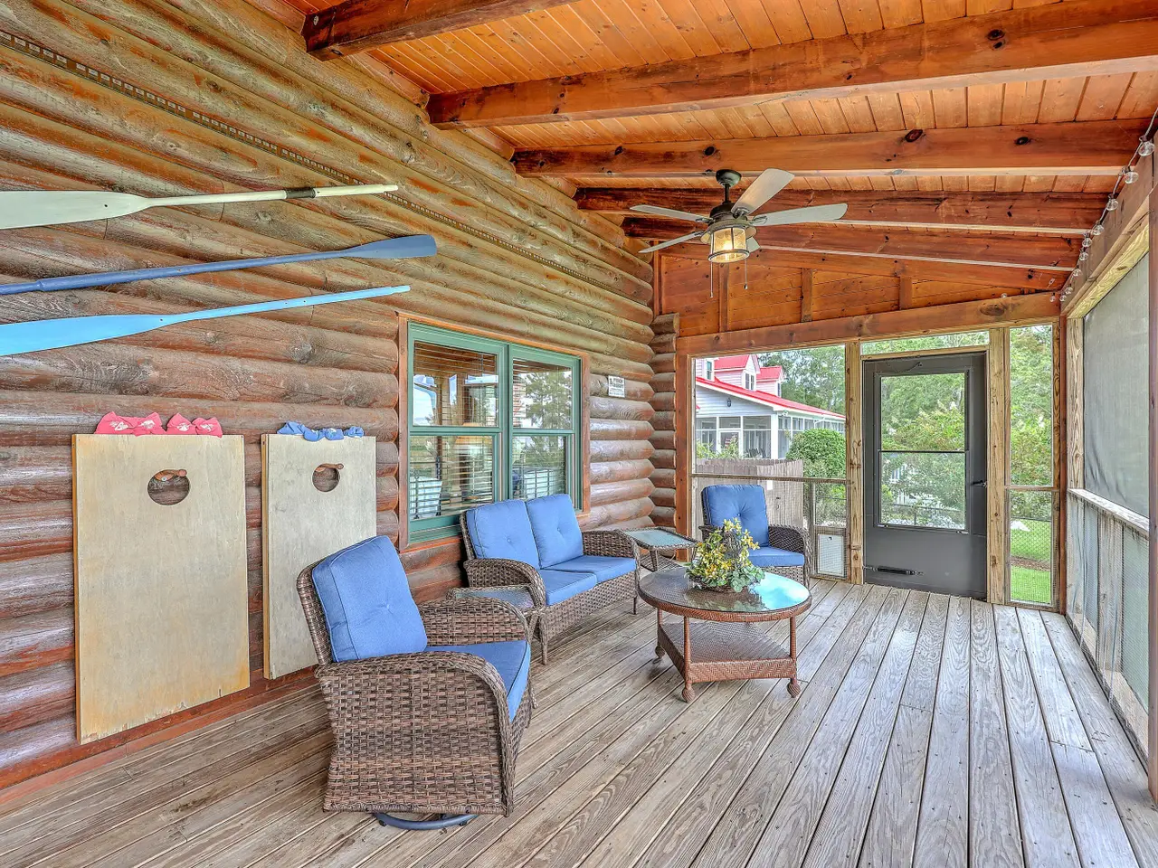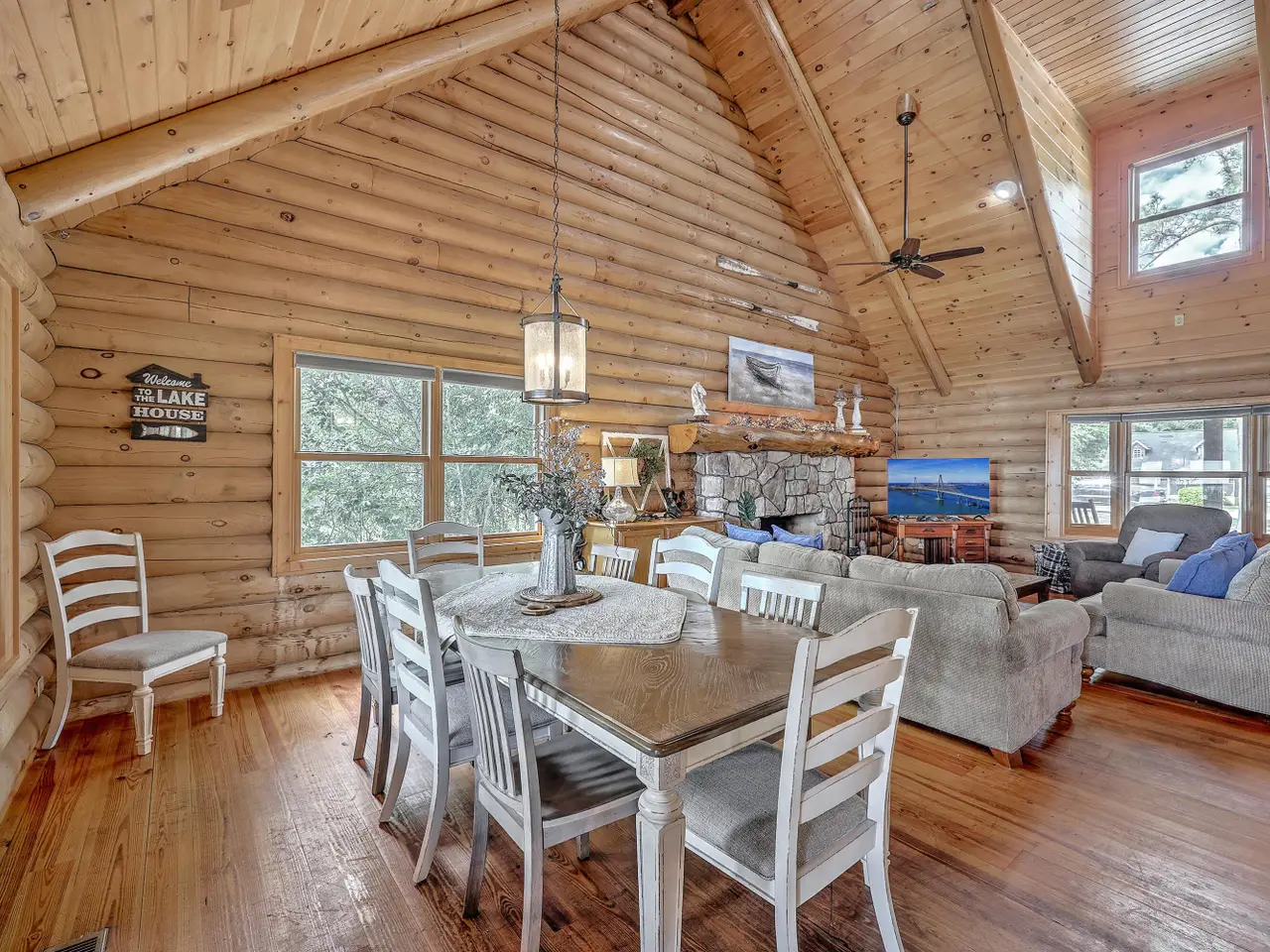 Discover a tranquil escape with this custom-built log cabin situated on the serene shores of Lake Marion. This property masterfully combines rustic elegance with modern amenities, offering an ideal opportunity for a second home, primary residence, or a lucrative short-term rental investment.Experience the grandeur of an open-concept living space with soaring ceilings crafted from tongue-and-groove heart pine, centered around a magnificent stone fireplace. The fireplace, enhanced by a reclaimed mantle originating from the 2002 San Juan forest fire, provides the perfect ambiance for cozy evenings. Culinary enthusiasts will delight in the chef's kitchen, which features custom live-edge countertops from Texas, bespoke Cypress and Hickory cabinetry, and premium appliances including an ice maker and wine cooler. The first floor offers two spacious bedrooms and a well-appointed bathroom with dual sinks and granite counters, complemented by a full laundry room for ultimate convenience. Upstairs, a private primary suite awaits, featuring a walk-in closet and an en suite bath with a clawfoot tub, walk-in shower, and dual vanities. Step outside to a screened porch, complete with a custom bar offering seating for eight, a sink, mini-fridge, and gas burner, making it an ideal space for entertaining. The backyard oasis includes a custom Gunite pool, a six-person hot tub, a grilling station, a firepit area, and a private fishing pier perfect for savoring Lake Marion's stunning sunsets. This log cabin is crafted with 9-inch spruce logs using the Swedish coping style, professionally sealed in 2022, ensuring sturdy construction. An oversized 4-car garage, equipped with a full bath, and an unfinished upstairs offers excellent potential for additional living space. Recent upgrades include a 40-year architectural roof, new gutters, a Rinnai tankless water heater, and an efficient 2022 HVAC system. Located on the north shore of Lake Marion, this property is just minutes from I-95, providing convenient access for day trips to Charleston, Myrtle Beach, and Columbia. The area is renowned for its natural beauty and tranquility, making it an appealing retreat for water sports enthusiasts, nature lovers, and those seeking a peaceful lifestyle. Currently operating as a successful short-term rental, this property accommodates up to 14 guests and boasts over 150 five-star reviews, consistently generating well over $100,000 annually. Whether you're looking for a charming home to call your own or an investment property with proven income potential, this Lake Marion cabin offers a perfect blend of appeal and practicality. Contact us to schedule a viewing or for more information about this exceptional property. Disclosure: The ability to operate a short-term rental in this jurisdiction is subject to local laws and regulations, which may change over time. There is no guarantee that the current permissions or allowances for short-term rentals will remain in effect in the future. Prospective buyers are encouraged to conduct their own due diligence regarding the current and future status of short-term rental regulations.