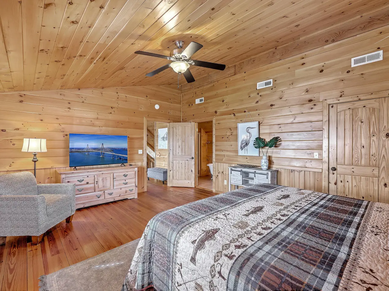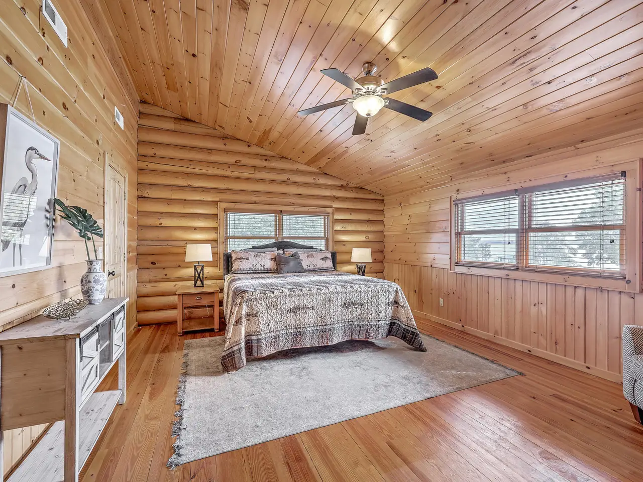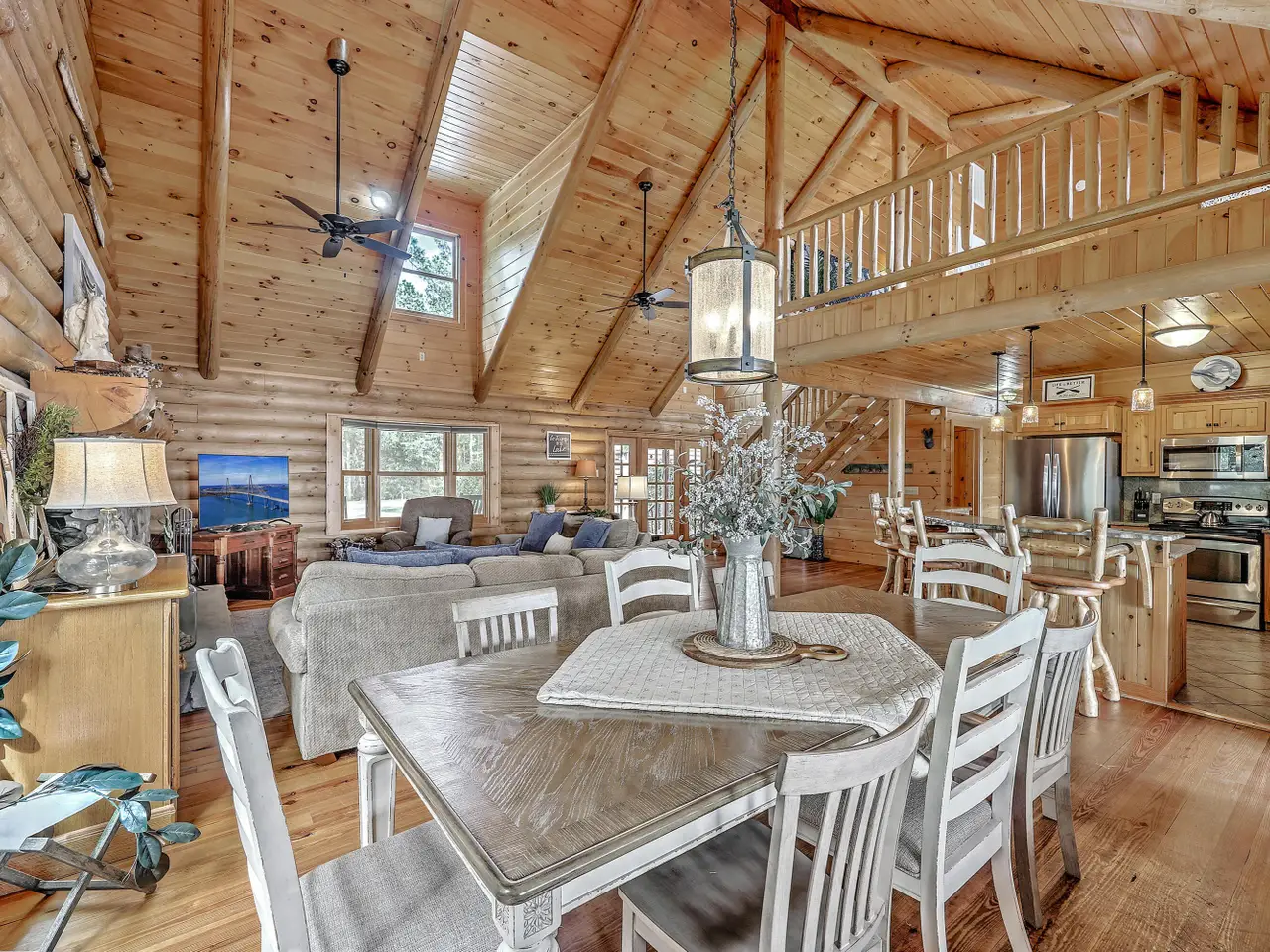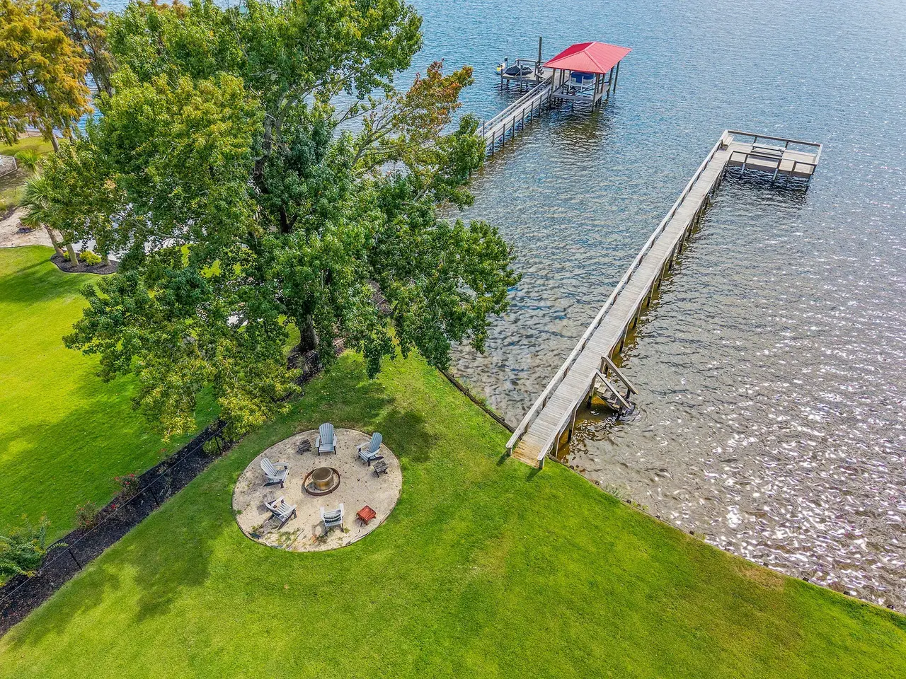 Discover a tranquil escape with this custom-built log cabin situated on the serene shores of Lake Marion. This property masterfully combines rustic elegance with modern amenities, offering an ideal opportunity for a second home, primary residence, or a lucrative short-term rental investment.Experience the grandeur of an open-concept living space with soaring ceilings crafted from tongue-and-groove heart pine, centered around a magnificent stone fireplace. The fireplace, enhanced by a reclaimed mantle originating from the 2002 San Juan forest fire, provides the perfect ambiance for cozy evenings. Culinary enthusiasts will delight in the chef's kitchen, which features custom live-edge countertops from Texas, bespoke Cypress and Hickory cabinetry, and premium appliances including an ice maker and wine cooler. The first floor offers two spacious bedrooms and a well-appointed bathroom with dual sinks and granite counters, complemented by a full laundry room for ultimate convenience. Upstairs, a private primary suite awaits, featuring a walk-in closet and an en suite bath with a clawfoot tub, walk-in shower, and dual vanities. Step outside to a screened porch, complete with a custom bar offering seating for eight, a sink, mini-fridge, and gas burner, making it an ideal space for entertaining. The backyard oasis includes a custom Gunite pool, a six-person hot tub, a grilling station, a firepit area, and a private fishing pier perfect for savoring Lake Marion's stunning sunsets. This log cabin is crafted with 9-inch spruce logs using the Swedish coping style, professionally sealed in 2022, ensuring sturdy construction. An oversized 4-car garage, equipped with a full bath, and an unfinished upstairs offers excellent potential for additional living space. Recent upgrades include a 40-year architectural roof, new gutters, a Rinnai tankless water heater, and an efficient 2022 HVAC system. Located on the north shore of Lake Marion, this property is just minutes from I-95, providing convenient access for day trips to Charleston, Myrtle Beach, and Columbia. The area is renowned for its natural beauty and tranquility, making it an appealing retreat for water sports enthusiasts, nature lovers, and those seeking a peaceful lifestyle. Currently operating as a successful short-term rental, this property accommodates up to 14 guests and boasts over 150 five-star reviews, consistently generating well over $100,000 annually. Whether you're looking for a charming home to call your own or an investment property with proven income potential, this Lake Marion cabin offers a perfect blend of appeal and practicality. Contact us to schedule a viewing or for more information about this exceptional property. Disclosure: The ability to operate a short-term rental in this jurisdiction is subject to local laws and regulations, which may change over time. There is no guarantee that the current permissions or allowances for short-term rentals will remain in effect in the future. Prospective buyers are encouraged to conduct their own due diligence regarding the current and future status of short-term rental regulations.