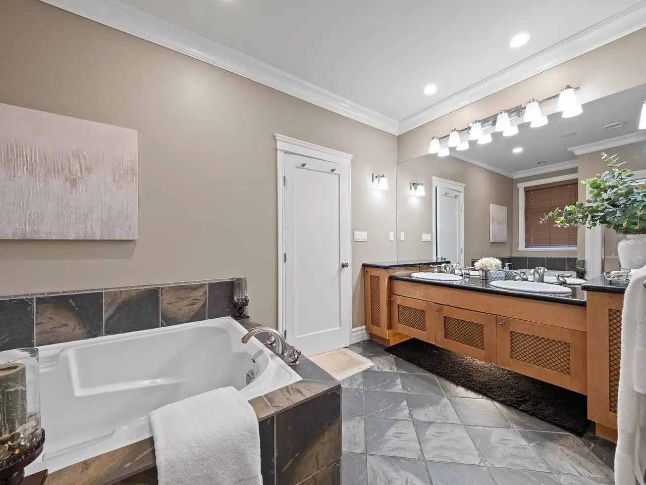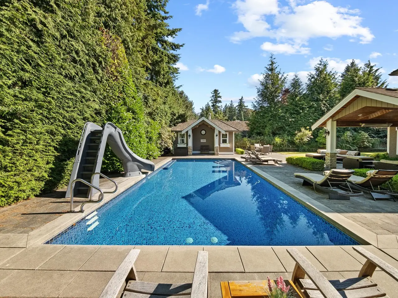 Welcome to this beautiful 3,358 SF custom home on a 14,723 SF lot in South Surrey’s coveted Elgin area. The main floor offers formal living & dining rooms, an eat-in kitchen, sitting area, stylish wine room, home office and lovely primary suite. Dual staircases lead to 3 generous upper bedrooms with ensuites. Enjoy the private, backyard oasis with a skylit covered patio area, built-in BBQ, hot tub, impeccably maintained inground swimming pool and pool house with bath and change room. Close to Crescent Park, scenic trails, and top schools Chantrell Creek & Elgin Park. Location, comfort and lifestyle…this is home!