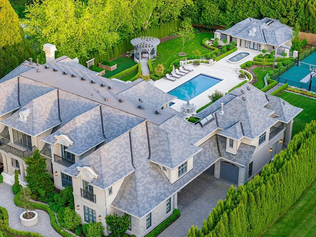 GRAY OWL MANOR; the Finest Estate Offering in the Lower Mainland. This 12,000+ sqft estate is the pinnacle of luxury living. Designed in a timeless French inspired aesthetic & situated on a gated acre manicured to perfection. Custom finishes inside and out for year-round entertaining. Full home automation, an elevator, rich millwork details, limestone fireplaces, temperature controlled wine room, home theatre, and a separate pool house complete with a golf-simulator. Open-concept great room, beautiful kitchen with a striking La Cornue range, and additional prep kitchen, formal dining room with a bar. 8 bedrooms total with the primary suite tucked away on the main floor, plus a two bedroom guest suite. Resort-like outdoor pool and hot tub, with a full sports court. A True Masterpiece!
