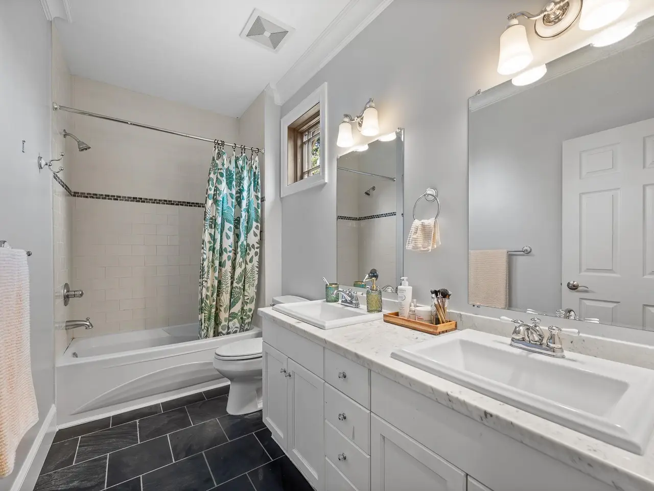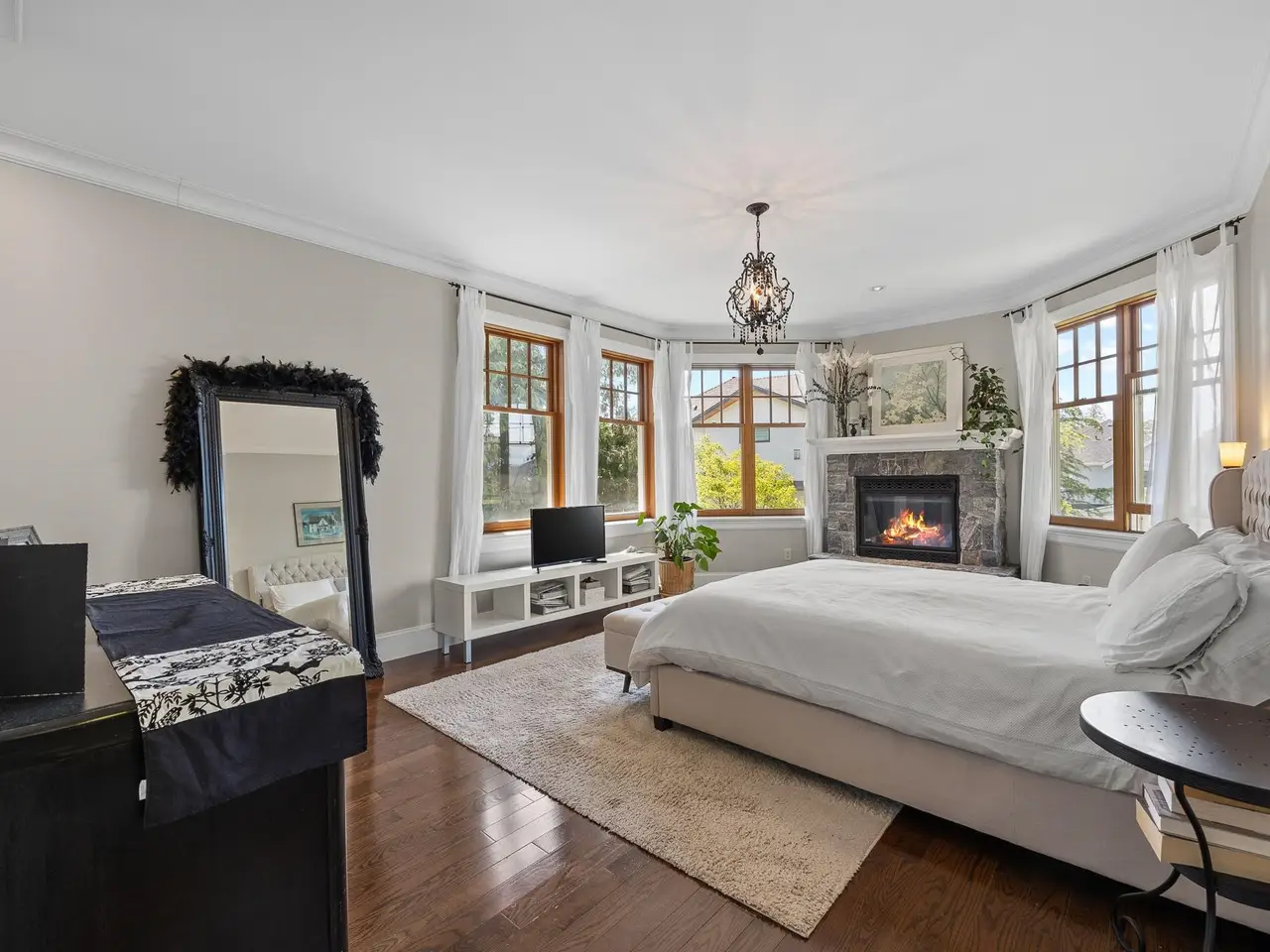 Timeless Shaughnessy-inspired estate residence situated on Grandview's most prestigious locations. Designed by renowned Loy Leyland, this 6,800sqft custom-built home exudes quality craftsmanship with traditional charm. Walking through the front porch, you’re greeted by cross-hall formal living and dining rooms, beautiful dream kitchen and a spacious family room. Seamless access to the outdoors through multiple sets of French doors and a private guest room tucked away on the main. 4 bedrooms above, including the charming primary suite with a private deck. Bonus loft floor above perfect for a games room or study area. Lower level complete with a spacious rec. room, bar, gym and guest bedroom. Situated on a full ACRE, this property offers North Shore Mountain views with ample privacy.