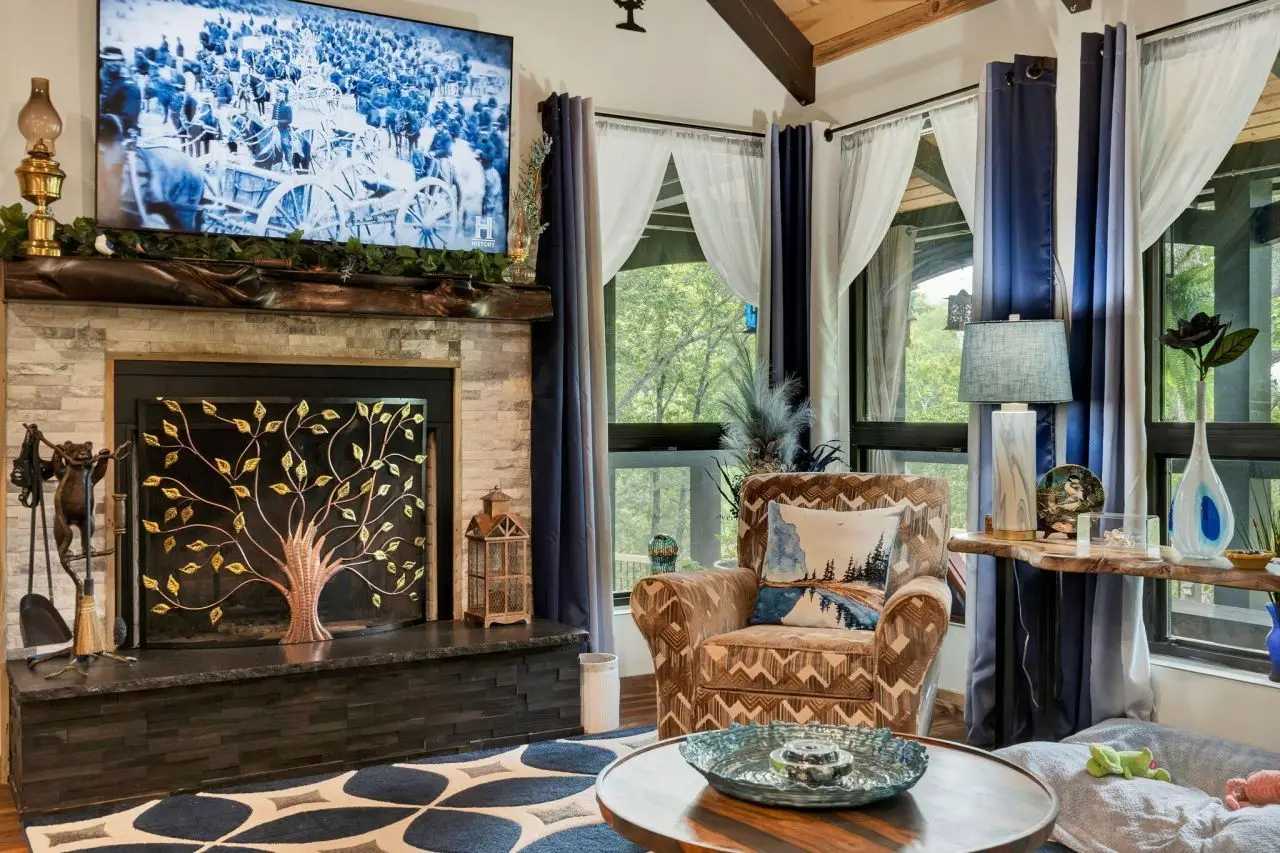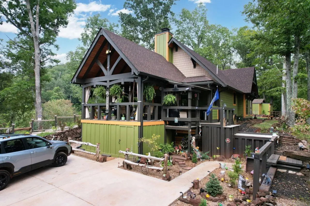 Welcome to your mountain-top oasis! This exceptional property encompasses over 15 acres spanning two mountains, offering unmatched privacy, year-round creek frontage, and stunning long-range views. Built just two years ago with natural dried spruce, this custom retreat blends high-end finishes with rustic mountain charm. The 2-bedroom, 2-bath home showcases an open floor plan with soaring tongue-and-groove pine cathedral ceilings and expansive Pella Impervia windows and doors that frame the breathtaking scenery. Each bedroom includes its own en-suite bathroom with Pfister fixtures and heatilators. The kitchen features quartz countertops and custom hickory cabinetry, while the living area is highlighted by a custom 42-inch wood-burning fireplace, set in one-piece leathered black granite and crowned with a black walnut mantle. Outdoor living is at its best with a wrap-around covered porch designed to double as an additional living space. Outfitted with TV and stereo wiring and custom weather curtains, it offers year-round enjoyment. Underneath deck is an unfinished basement, perfect for more storage area. Landscaped walkways, waterfalls, and garden areas and a fire pit complete the serene, spa-like atmosphere.Also included is a one bedroom/one bath guest house, large wired tool room, underground electricity, gated driveway entry, and a surround security system. Multiple cleared building sites provide opportunities for expansion. The property also qualifies for a greenbelt tax exemption, making it a smart investment as well as a peaceful retreat.Whether you're searching for a full-time residence, private getaway, or an investment rental this mountain-top sanctuary is truly one-of-a-kind.Schedule your private showing today and experience the beauty, privacy, and craftsmanship this property has to offer. Seller is offering home furnished or unfurnished. Please see below for more detailed information. Exterior Hardie board siding with lifetime warranty35-year architectural shingle roof for lasting durabilityCustom weather curtains enclosing the entire exterior deck2x6 exterior walls for added strength and efficiencyR60 foam insulation for superior energy savingsSolid wood interior doors throughoutInterior trim crafted from natural beetle board for unique character50-gallon high-efficiency water heater26-inch concrete slab foundation for stabilitySecurity system for peace of mindSolar generator backup power solutionFully decked attic providing additional storage space
