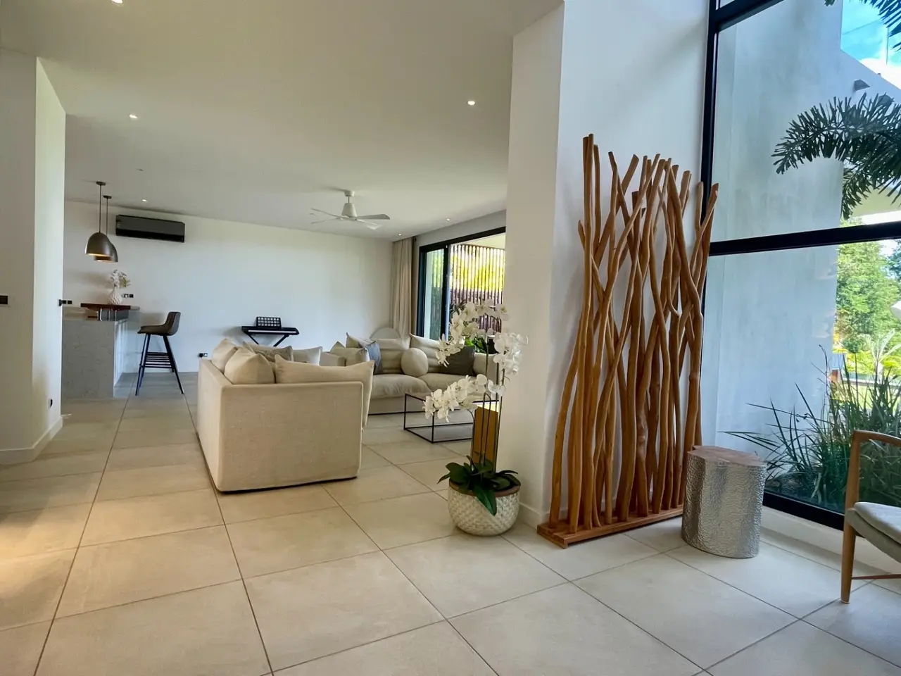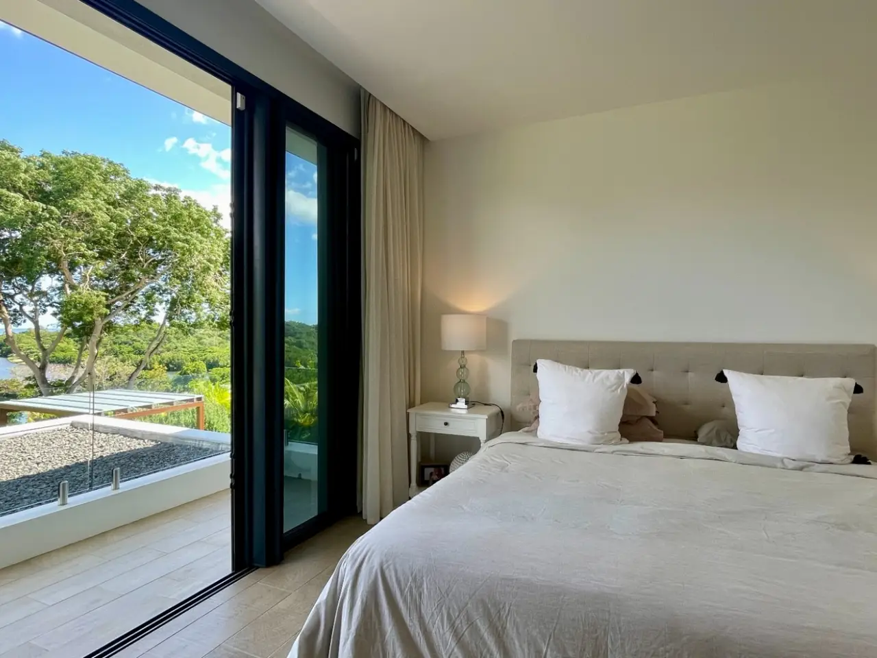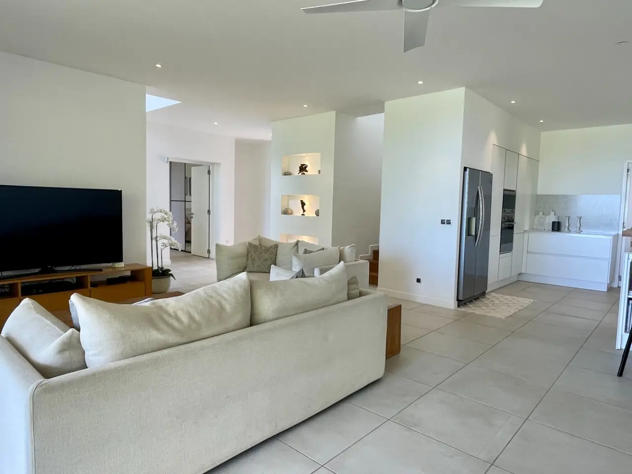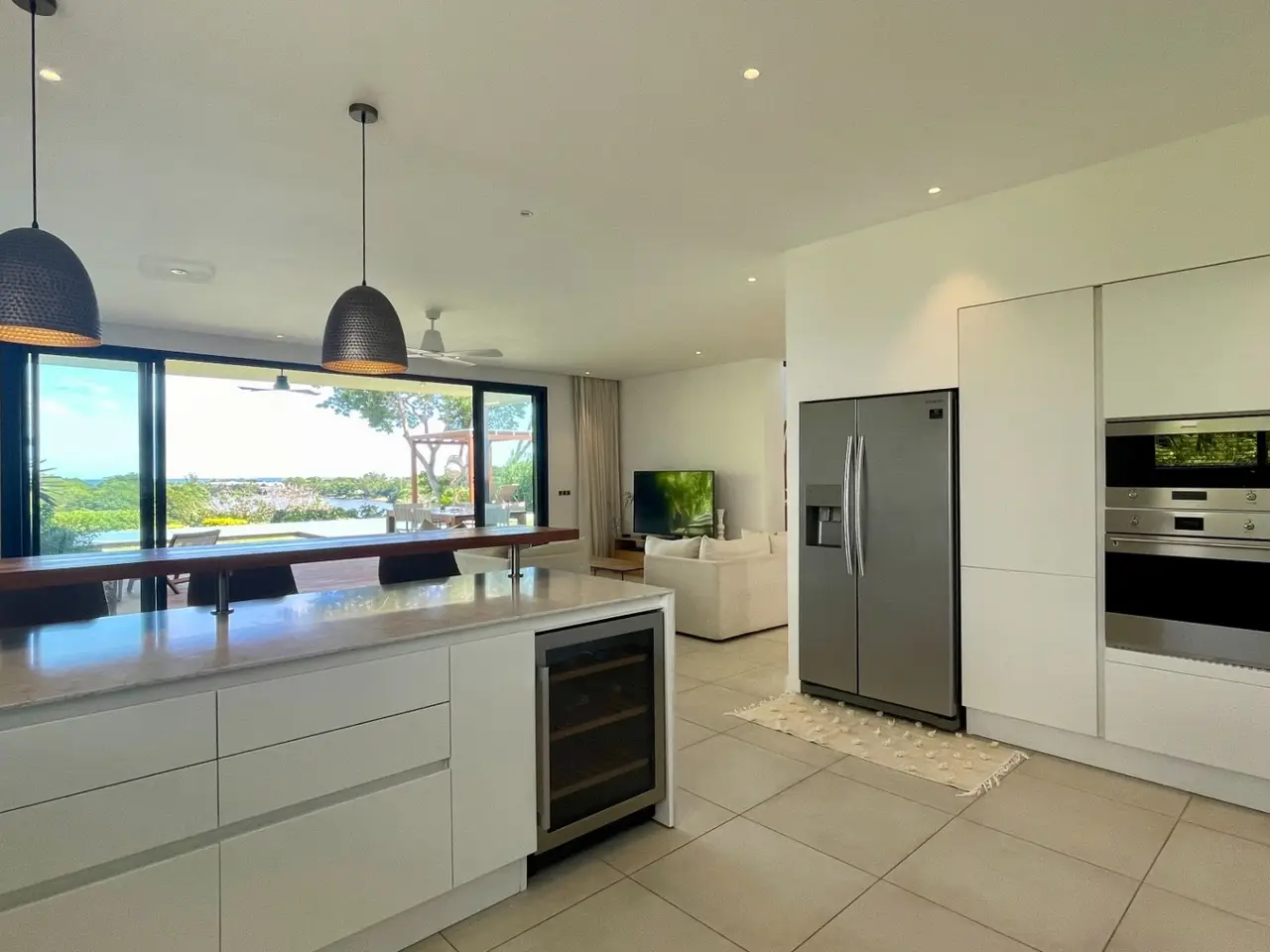 Ideally positioned in a newly built estate, this 380 m2 villa is one of the few with an incredible outlook onto the Barachois opening into Tamarin Bay. The villa boasts a wonderful garden, pool and kiosk, blessed with incredible ocean sunsets every evening. Mixing metallic, marble and clean white designs and equipment, the open-plan kitchen is semi-attached to a spacious laundry room with access to a practical courtyard. The vast living and dining room with air-conditioning opens onto a covered verandah overlooking the garden, pool and Barachois in the distance. Suitable for guests, the ground-floor bedroom includes an en-suite shower room and a private terrace giving access to the garden and pool. The three remaining bedrooms and bathrooms are found on the first floor, equipped with integrated cupboards and air-conditioning units. Boasting an exquisite walk-in closet, with automatic light fittings and customised drawers, the master bedroom benefits from the property’s exceptional views, as well as the en-suite bathroom with bathtub and double vanity. The property is fully equipped with a carport for two cars, a generator, an alarm system and garden lighting. The new owners will benefit from the estate’s club house which will open its doors at the end of 2022, as well as their private boat shuttle to Tamarin Bay. Permanent residency applicable upon purchase.