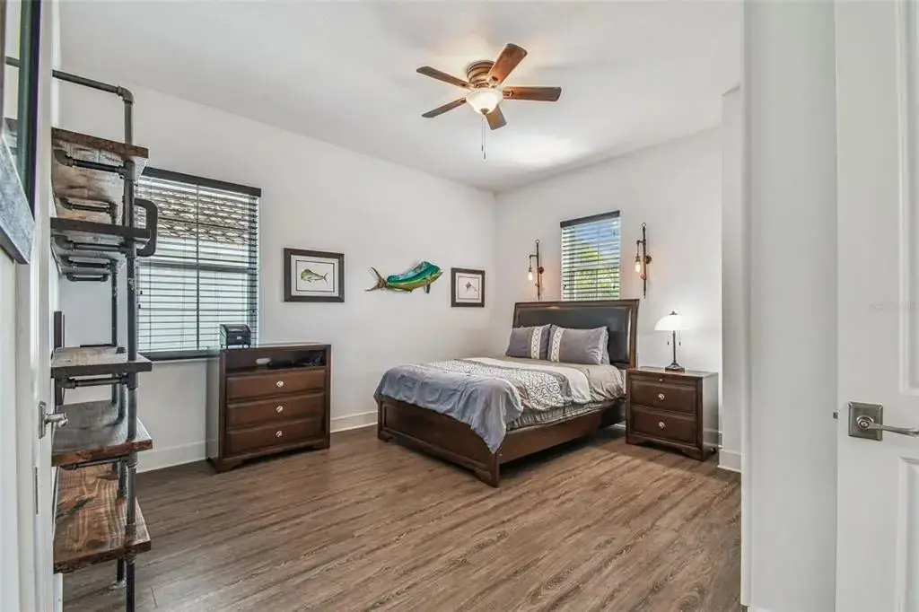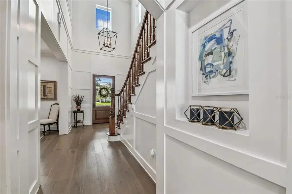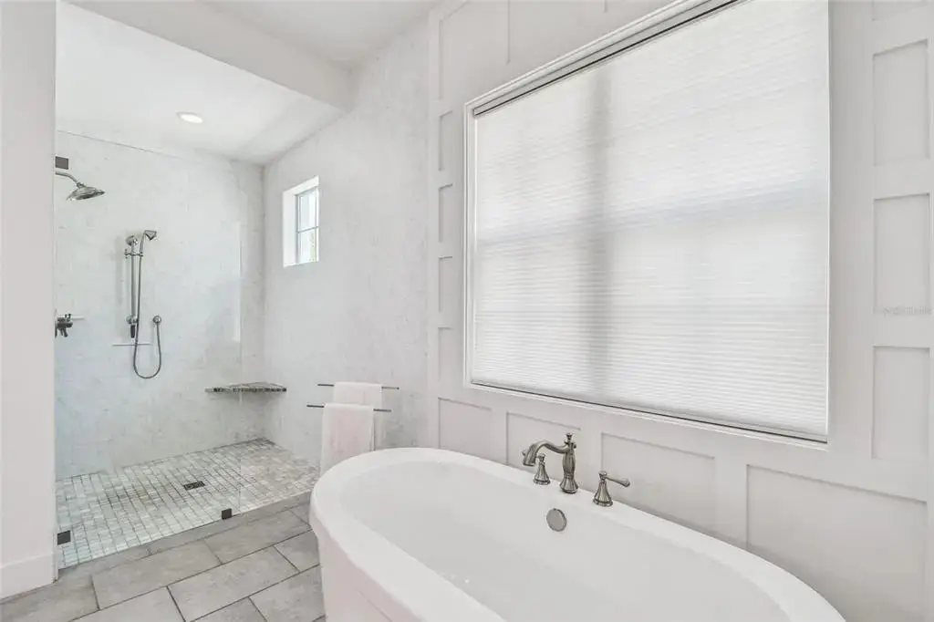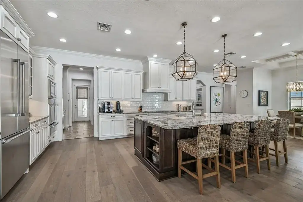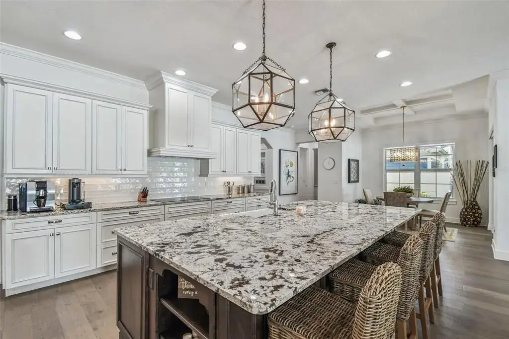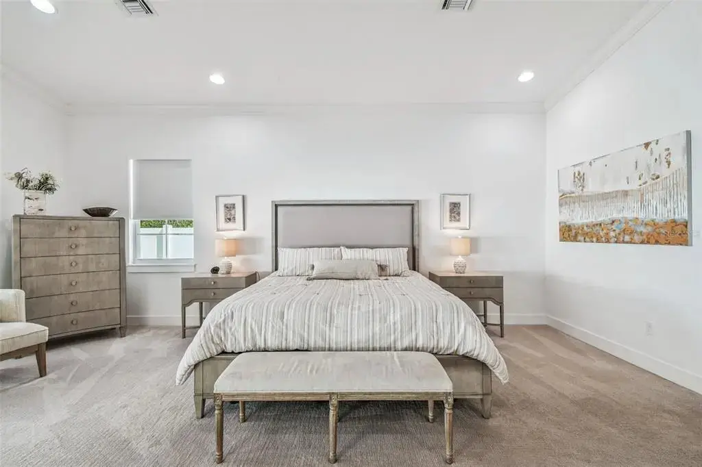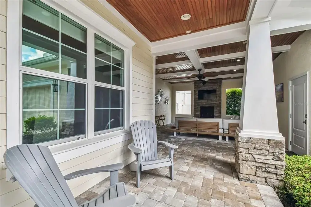 Welcome to this stunning Craftsman-style estate in the highly sought-after Golfview neighborhood of South Tampa. This meticulously designed five bed, four bath home offers over 4,200 square feet of heated living space and more than 1,100 square feet of covered outdoor areas. Built in 2016 on a 75x100 lot in Flood Zone X, the home features a split three-car garage with ample guest parking. From the moment you arrive, the home makes a grand impression with its covered front porch, wooden staircase, paneled walls, and abundant natural light. Inside, you'll find hurricane-impact sliding glass doors and windows, rich crown molding, coffered ceilings, and custom light fixtures throughout. The formal dining room sets a refined tone, while the dry bar and arched entryway lead you into the heart of the home: an open-concept kitchen, breakfast nook, and great room designed for both everyday living and entertaining. The oversized island is the centerpiece of the space, and customized with Thermador appliances, a walk-in pantry, built-in butler’s pantry/wet bar, and a large mudroom/laundry room with sink and ample storage. The private first-floor primary suite is a serene retreat with vaulted ceilings, paneled walls, and direct access to the pool and lanai. Its spa-like bath includes a walk-in glass shower with dual shower heads, a freestanding soaking tub, dual vanities with storage, and a spacious walk-in closet. A second first-floor bedroom and full bathroom offers flexibility as a guest room or dedicated office. Upstairs, you'll find three generously sized bedrooms—each with walk-in closets and custom lighting—two full bathrooms, and a versatile loft area perfect for play, study, or relaxation. Attic access is available through the mechanical room for additional storage. Step outside to discover the ultimate outdoor lounge—virtually hidden from the rest of the house and other outdoor living spaces. Complete with a cozy gas fireplace, large built-in TV, stained wood ceilings, and ceiling fans, it’s the perfect setting for gameday gatherings or relaxing movie nights. The expansive backyard lanai features travertine decking, a gas feed and vent ready for your dream outdoor kitchen, and a 392-square-foot in-ground concrete pool (installed in 2017) surrounded by vinyl fencing and a grassy play area. Open space behind the property offers tranquil views of the ever-changing sky, adding to the sense of privacy and serenity. Located just minutes from top-rated restaurants, shopping, Palma Ceia Golf and Country Club, and only half a mile from Plant High School this home is a rare blend of craftsmanship, comfort, and coastal charm. Schedule your private showing today and experience the lifestyle you’ve been dreaming of.
