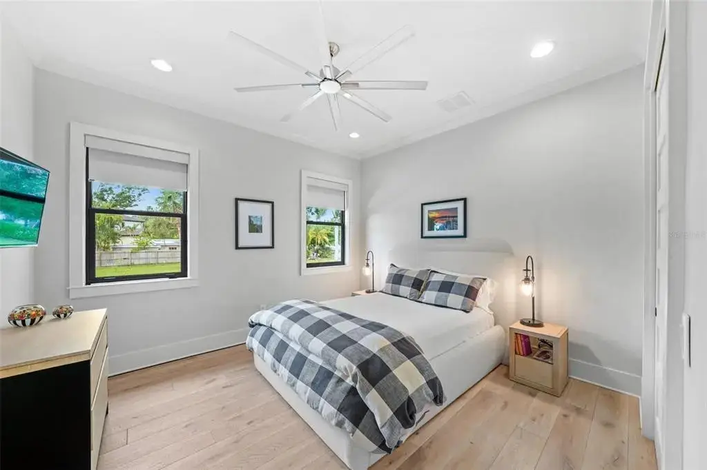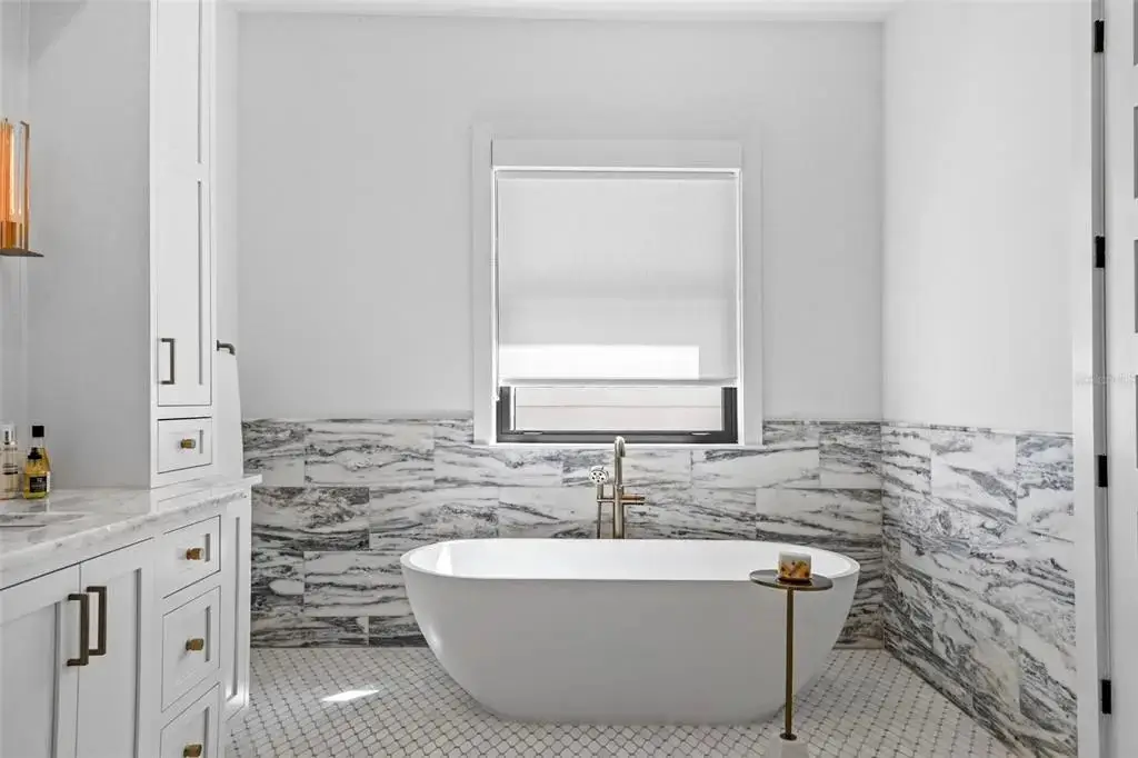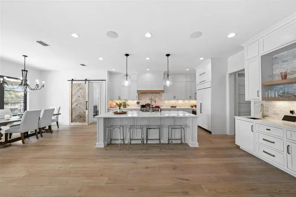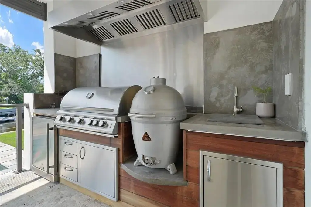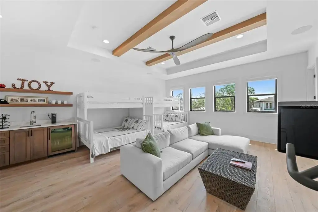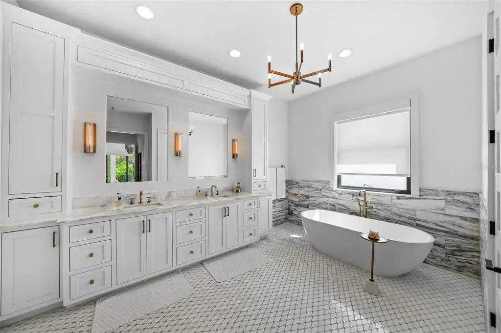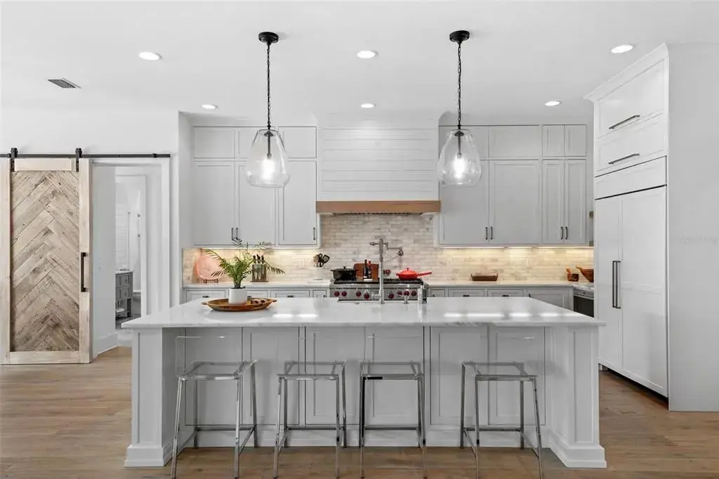 Davis Islands Modern Coastal on 100’+ of Waterfront with first-floor master bedroom. This custom-built residence blends timeless design with the highest standards of craftsmanship and is located on a quiet street on Davis Islands. The entry showcases a custom contemporary mahogany six-panel front door with impact glass and transom, opening to light-filled interiors defined by white oak engineered hardwood floors. A glass-fronted refrigerated wine cellar—with split-system cooling, floor-to-ceiling wood tile, stainless steel wine racks, a mahogany solid wood door, marble floors, custom cabinetry, and an electronic lock—serves as both functional storage and a striking design feature. The chef’s kitchen pairs marble counters and backsplash with premium appliances, complemented by a butler’s pantry and walk-in pantry. Living areas flow seamlessly to the outdoors through a 4-panel impact pocket slider, while PGT high-impact bronze windows with transoms on the front and rear elevations frame every view. Every element of the home reflects thoughtful engineering and luxury detail—from its piling foundation and concrete flat tile roof to the light sand finish stucco and custom Bahamian shutters with crafted metal railings and fencing that frame the façade. The primary suite offers two walk-in closets and a spa bath finished with imported marble flooring, counters, and shower, plus a freestanding soaking tub. Additional bedrooms include en-suite baths with marble finishes, continuing the home’s refined material palette.. At the water’s edge, a new seawall supports a composite dock with a covered 13,500lb boat lift—finished with a metal roof, lighting, water, and electric service. An additional electric 1,500lb lift lowers directly into the water, easing access for boating or water toys. The backyard is a showcase for Florida living: a contemporary rectangular saltwater pool with water-edge spa, glass waterline tile, umbrella stand, lounge area, and automated Hayward LED lighting. Surrounding the pool and lanai, silver travertine pavers set the stage for gatherings. The lanai’s cypress coffered ceiling frames a linear gas fireplace with a tabby shell stucco surround and a custom barnwood mantel, while a custom outdoor kitchen—featuring a Blaze grill and smoker with a double hood, stainless steel backsplash, beverage center, concrete counters, sink, and an Ipe wood surround—makes entertaining effortless. A plumbed outdoor shower with hot and cold water completes the resort feel. Six gas lanterns accent the entry and garages, bringing coastal character to evening hours. The oversized three-car garage offers versatility with a deep two-car bay (workbench and storage included) and an extended one-car garage sized for a golf cart. A whole-house generator ensures comfort and security year-round. Come enjoy the DI lifestyle with its walking and bike path, and just a short distance away from Davis Islands Village with many restaurants, shops, and bars. Bring your golf cart and enjoy the Island lifestyle with baseball fields, public tennis courts, a public historic pool, two dog parks (one wet and one dry), a beach, a public marina, and an airport. Located only minutes from Downtown Tampa, Water Street, Sparkman Wharf, and the Tampa Riverwalk, this neighborhood is the most desired in South Tampa!