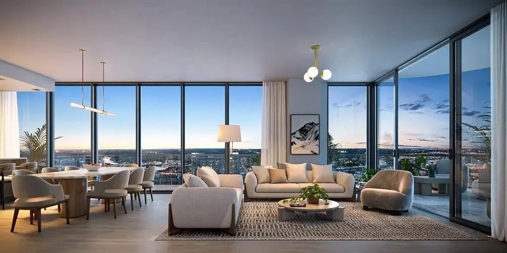 Pre-Construction. To be built. The developers of Hyde Park House are bringing the newest luxury living highrise to downtown Tampa, welcome ONE Tampa! With refined contemporary architecture, elegantly finished residences, and extraordinary resort-style amenities, ONE Tampa’s soaring 42-story tower is an icon in the city skyline offering a lifestyle of unparalleled luxury. Its prime downtown location, just one block from the Tampa Riverwalk and next to Curtis Hixon Waterfront Park, ensures unmatched access to an exciting range of shopping, dining, cultural attractions, and outdoor activities. With an expansive terrace wrapping the northeast corner of the tower and generous outdoor dining space, Residence C is beautifully designed to enjoy sunrise over the city. This residence’s gracious entry foyer leads to the great room, where two walls of floor-to-ceiling windows ensure abundant natural light and sliding glass doors providing seamless access to the terrace. In the owner’s suite, a pass-through bathroom leads to a double-size walk-in closet. A guest suite with an en-suite bath and enormous walk-in closet easily serves as a second owner’s suite and a den is thoughtfully placed to provide privacy away from the great room. ONE Tampa provides residents with exclusive access to a host of indoor and outdoor amenities and services that elevate everyday living into something effortlessly enjoyable. From the moment of arrival in ONE Tampa’s chic, fully staffed lobby, residents enjoy flawless personal services as well an exclusive collection of amenities. Set at the 11th and 12th floors and overlooking two parks, indoor and outdoor amenities for health, wellness, socializing, and relaxation include a resort-style pool terrace, an extensive clubhouse, a state-of-the-art fitness center, and a well-equipped business lounge featuring inspiring work from home spaces. 2 BEDROOMS | 3 BATHROOMS | DEN INTERIOR | 2,215 sq ft EXTERIOR | 319 sq ft