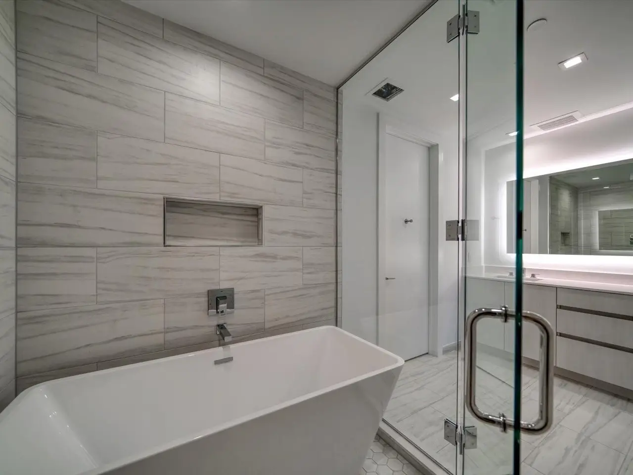 40-foot boat slip INCLUDED. Welcome to this exquisite condo, where luxury and sophistication meet in perfect harmony. With an array of premium features and elegant finishes, this residence provides a sanctuary of comfort and style. Boasting 10-foot ceiling heights in the great room and bedrooms, a private entry foyer, and a host of upscale amenities, this home offers an unparalleled living experience. Upon entering, you are greeted by the seamless beauty of porcelain tile flooring, adding a touch of elegance to the foyer, great room, dining area, kitchen, powder rooms, and bathrooms. Step onto the terrace, adorned with sleek porcelain tile, and immerse yourself in the panoramic views. Indulge in the finer details, including solid core doors with stylish lever handles, smooth-finished ceilings and walls, and prewiring for your communication and entertainment needs. The window and sliding glass systems are not only aesthetically pleasing but also hurricane-impact rated for your peace of mind. Prepare gourmet meals in the sophisticated kitchen equipped with European-style cabinetry, three-centimeter quartz countertops, and a full quartz backsplash. The top-of-the-line Sub-Zero/Wolf professional-style appliance package, including a wall-mounted stainless-steel hood and a range of premium appliances, ensures an exceptional culinary experience. Retreat to the owner's bath, a haven of relaxation, featuring polished chrome fixtures, a free-standing relaxation tub, and a luxurious rainfall shower. The guest bathrooms also exude elegance, with European-style cabinetry, Grohe polished chrome fixtures, and exquisite porcelain flooring. Experience the epitome of luxury living in this sophisticated condo, where every detail is meticulously crafted for your utmost comfort and pleasure. Schedule a viewing today and embrace a lifestyle of unparalleled opulence and refinement.