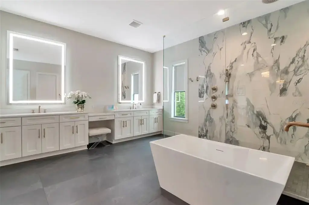 Luxury Living in the Heart of Swann Estates Experience elevated living in this newly constructed 5-bed, 4.5-bath custom home by Momentum Homes, featuring 4,597 sq ft of designer-curated interiors, a sparkling pool + spa, and zoned for A+ schools (Grady, Coleman, Plant). Built with solid block on both levels and outfitted with impact-rated Low E windows, this home blends timeless architecture with modern efficiency. Inside, enjoy wide-plank white oak flooring, custom wood cabinetry, and a chef’s kitchen with Thermador appliances, 48” gas cooktop, quartz island, butler’s pantry, and mudroom. The open-concept layout includes a spacious family room with a statement gas fireplace, private office, and media room. A first-floor guest suite offers en-suite bath and pool access. Upstairs, the luxe primary suite boasts an oversized walk-in closet and spa-style bath with freestanding tub and frameless glass shower. Professionally landscaped with a brick-paver driveway, covered patio that features a grill with skin and refrigerator as well as resort-style backyard—this home is an unmatched opportunity in one of South Tampa’s most prestigious neighborhoods. Please note that this home did not have flood damage from hurricanes in 2024.