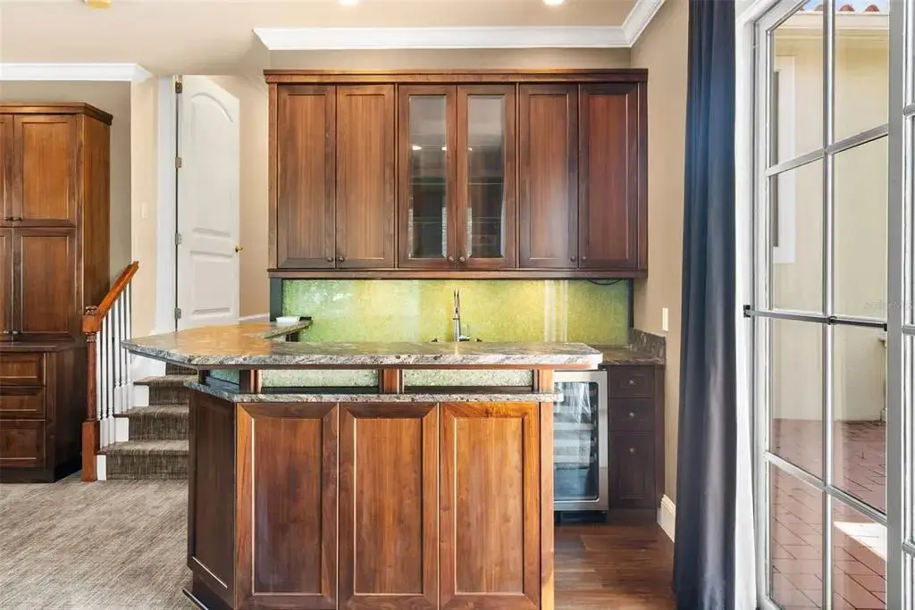 This stunning Davis Islands estate offers exceptional living on an oversized corner lot of over 1/4 acre. With six bedrooms, six full baths, and a four-car garage, this custom Spanish-style residence combines timeless architecture with modern luxury and thoughtful design throughout. A grand two-story foyer welcomes you with an elegant wrought iron staircase offering triple access—to the formal entry, the upstairs living quarters, and the rear kitchen area. The main level features a formal living room currently used as a library or home office, a formal dining room, and an expansive chef’s kitchen outfitted with rich wood cabinetry, granite countertops, a center island with breakfast bar. The kitchen opens directly to the spacious family room, creating an ideal layout for entertaining and everyday life. Top-of-the-line appliances include a Sub-Zero built-in refrigerator and freezer, dual Wolf range and oven, two Bosch dishwashers, a walk-in pantry, and a clear ice maker. The main level also offers a private guest suite with full bath, perfect for visiting family or multigenerational living. Upstairs, four additional bedrooms and three full bathrooms are complemented by a massive media and recreation room featuring a wet bar, wine bar, and kitchenette. A large terrace extends from the media room, while the luxurious primary suite offers its own expansive terrace with views of the backyard, resort-style heated saltwater pool, and play yard. A detached guest suite includes an en-suite bath, with an additional full bath dedicated to the pool area. The electric-gated driveway accommodates three additional vehicles. There is a three bay garage and then a detached one car garage that is air-conditioned and suitable for use as a home gym or workshop. The garage also features an epoxy floor and an electric vehicle charging outlet. This home is equipped with a natural gas generator, tankless water heater, and a laundry room outfitted with two LG washers and dryers. Outdoor living is elevated with an Alfresco kitchen, a pool with sun shelf and spill-over spa, creating a true backyard retreat. Living on Davis Islands means enjoying a unique, amenity-rich lifestyle. This self-contained community offers a private airport, sailing club, yacht and motorboat marinas, tennis club, community pool, two parks, a dog beach, jogging and bike paths, and a small beach. Stroll or drive your golf cart to charming local businesses including boutiques, gas stations, coffee shops, ice cream shops, restaurants ranging from gourmet dining to casual favorites, and essential services like a pharmacy/post office, salons, and medical and legal offices.