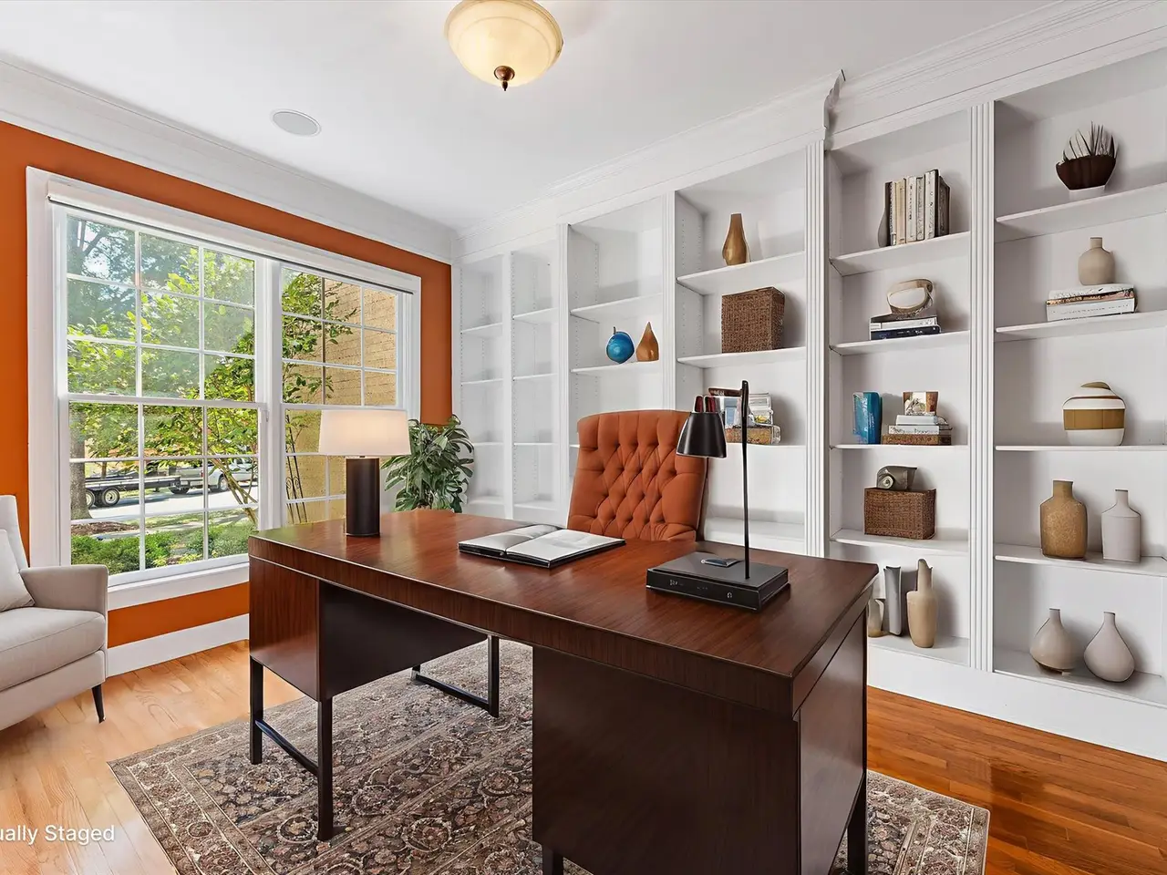 Floor to ceiling-built ins in office