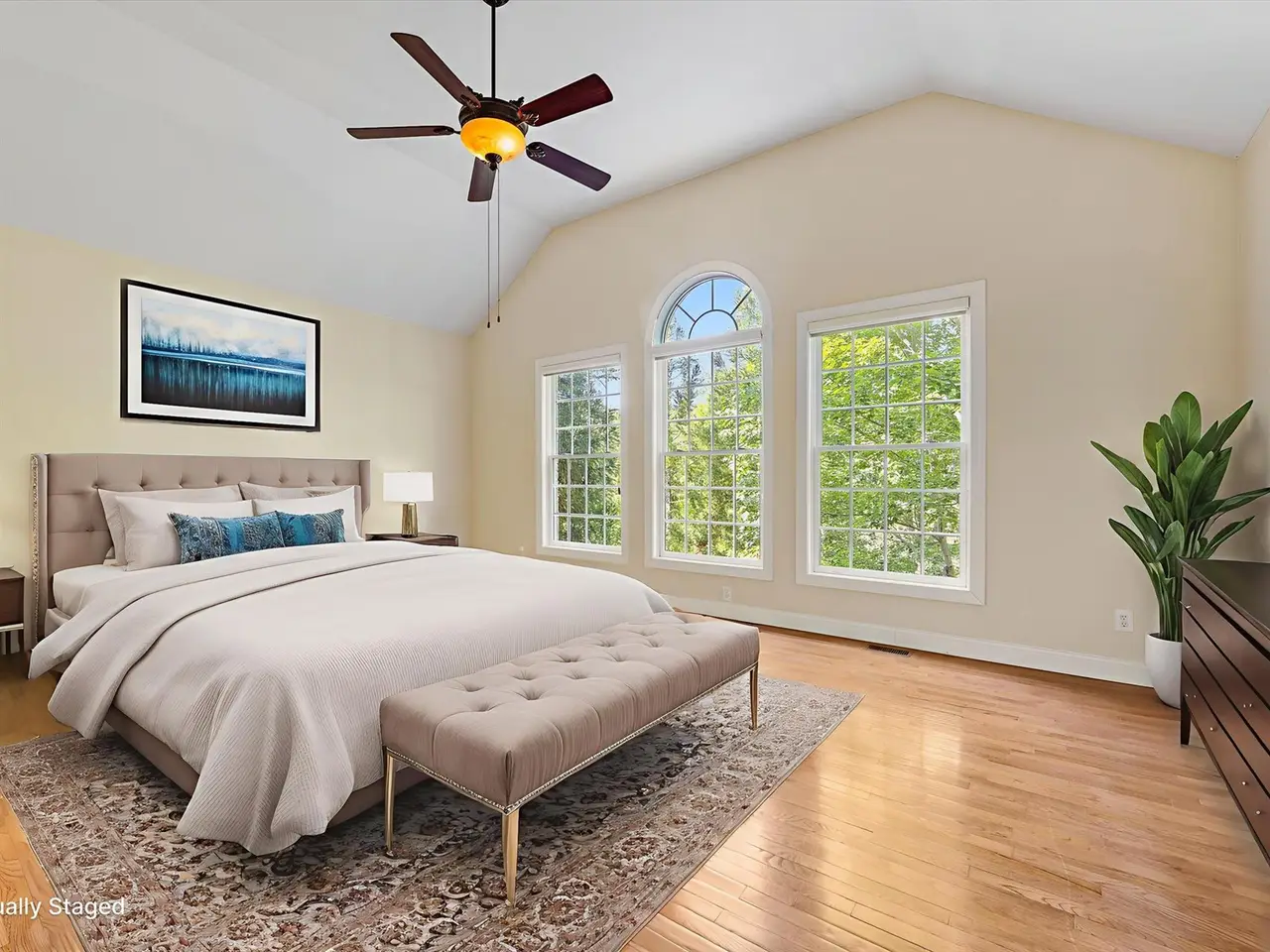 Main-floor primary bedroom with custom closet