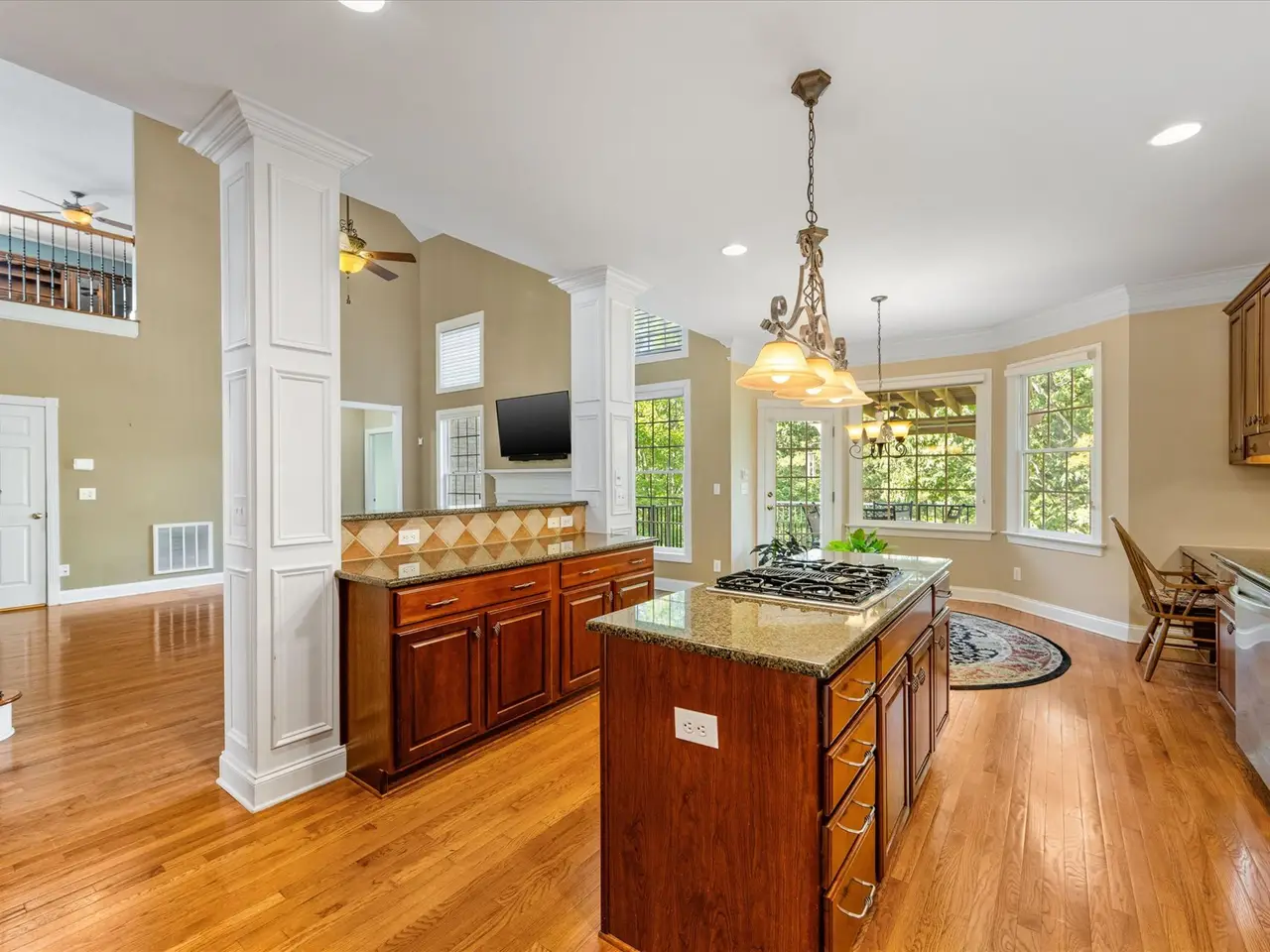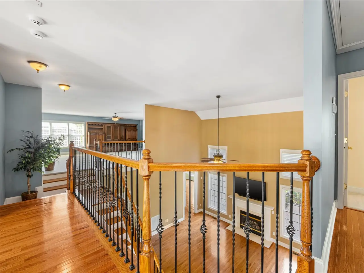 Gas fireplace with two-story great room
