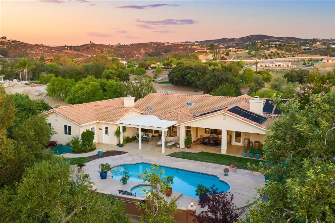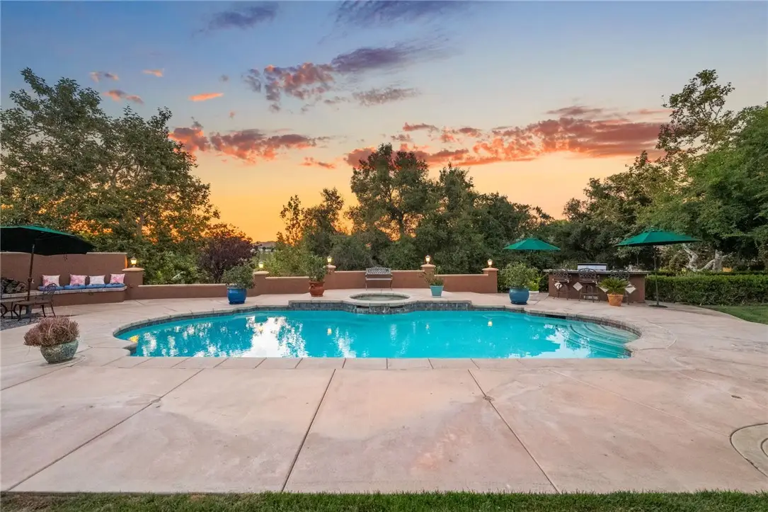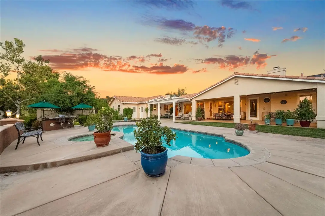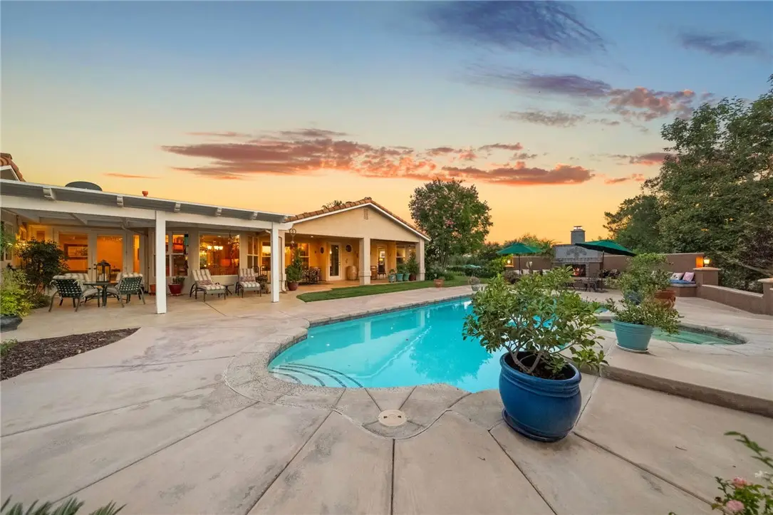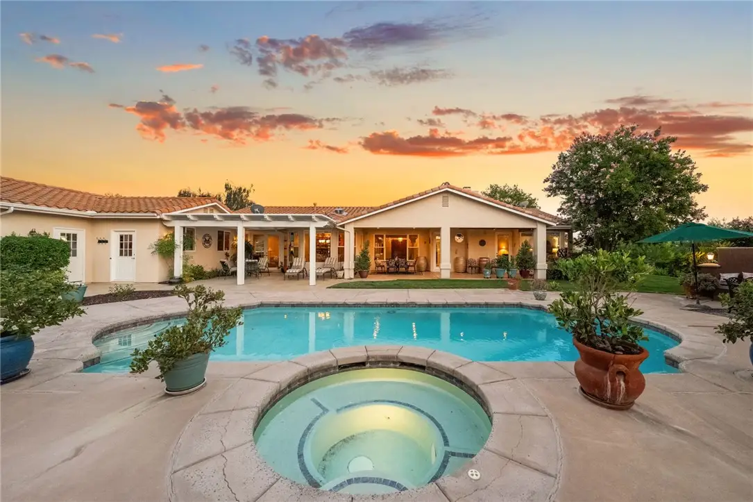 Absolutely beautiful Single Story Pool home in Glenoak Hills with beautiful barn and corrals! This lovely home has 3 bedrooms, 3 full baths, and an office, with expansive views. The family kitchen has a breakfast nook with views of the pool, a large Center Island, and features newer stainless appliances. The back yard features a large salt water pool and spa, with a built-in fireplace seating area, and spacious covered patio. There is an extensive vegetable garden with numerous fruit trees, including many mature pomegranite trees! The equestrian facilities include a 3 stall barn plus tack room and feed room - plus a large covered overhang, and a large corral. The gentle property offers room for additional facilities or vineyard, and there is a compacted pad on which to build. The property is fully fenced, with a security gate at the entrance. There is a great deal of room and good access for RV parking and facilities. The Glenoak Hills HOA offers a clubhouse, playground, tennis courts, etc. Located on a quiet cul-de-sac, justs minutes to all of the wineries and grocery stores - this home is one of the best available! The oversized 4 car garage can fit the largest vehicles. Solar hot water for the pool is an added benefit!