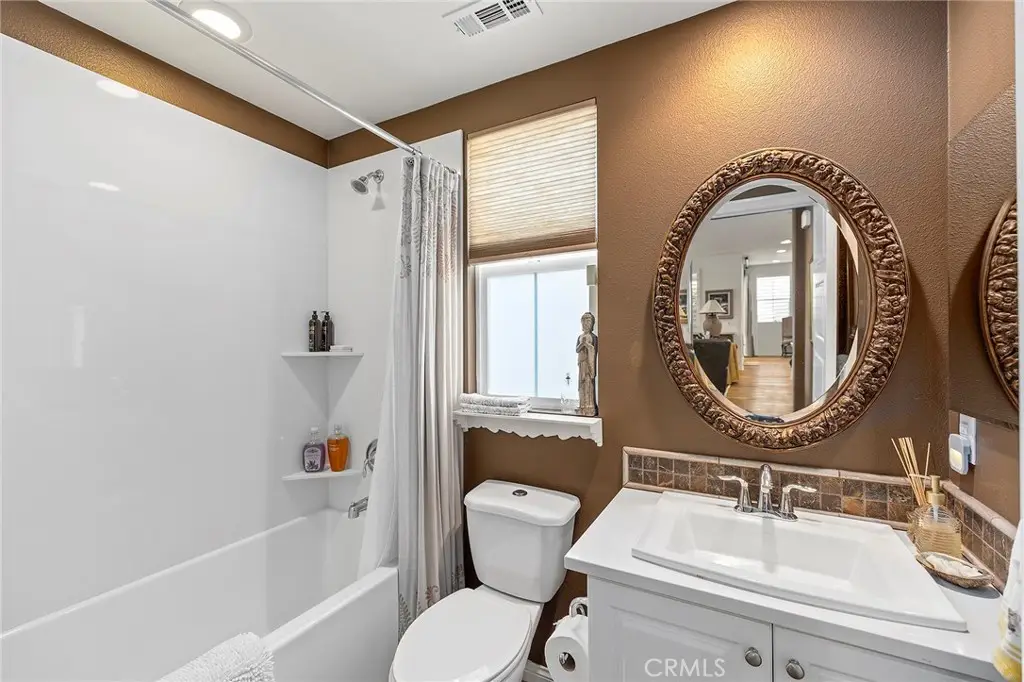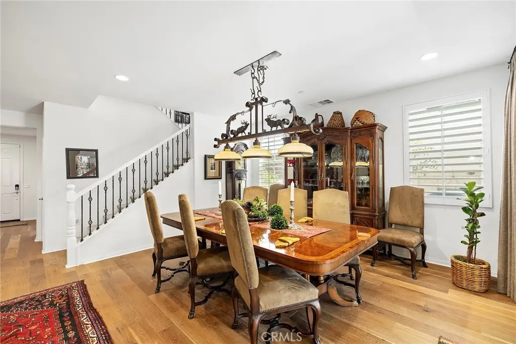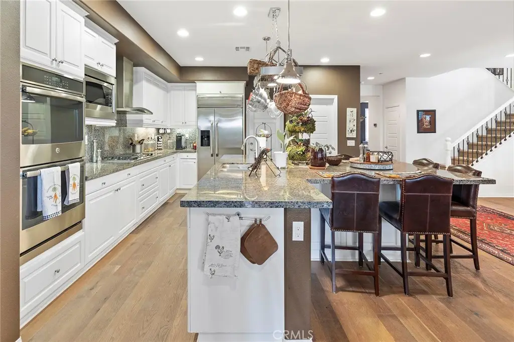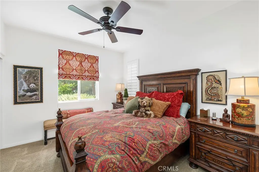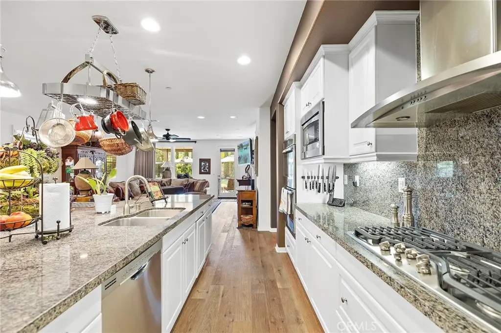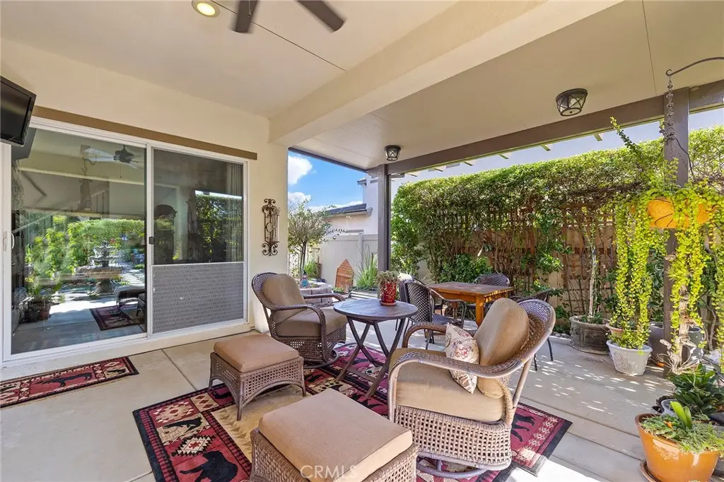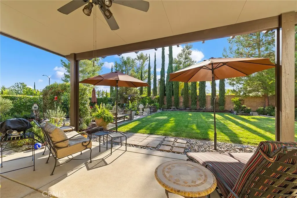 Absolutely the best in the beautiful Belle Maison community of Temecula! Located immediately adjacent to the Temecula Wine Country - this spectacular home boasts top quality upgrades and decorating in every corner, a spacious open floor plan with 5 bedrooms, 3 baths, plus office and loft, and a huge yard with two covered patios and an outdoor fireplace! The floor plan features one bedroom and full bath downstairs. There is a huge Formal Dining Room with large custom rustic chandelier, spacious open Great Room with a cozy fireplace, and Gourmet Kitchen with center island, built-in Breakfast Island attached, built-in stainless GE Monogram refrigerator and appliances, walk-in pantry, white cabinets, and more. Downstairs there is also a formal living room or office option. The stairs are lined with a wrought iron railing, and upstairs you will find a huge main suite with a large workout area/sitting room, a media room/loft at the top of the stairs, and three other bedrooms. One of the bedrooms is currently used as an office, and the office furniture is available to stay. Carpeting is absolutely the best, hardwood oak flooring and quality tile, all with a Neutral pallet, plantation shutters, custom draperies, custom lighting add to the ambiance. In the elegant backyard, you will find two covered patios, one with a fireplace, many fruit trees, flowering shrubs, cypress and pine trees, and walkways creating a private oasis. A 3-car garage with many overhead storage racks, immaculate epoxy flooring, Tesla Batteries are included, and the leased solar system provides discounted electric costs. All Televisions are included, and some of the furnishings such as the desk in the office could be available.