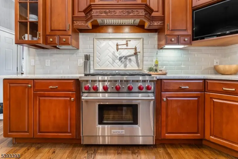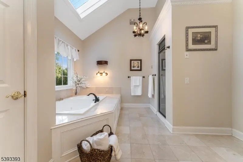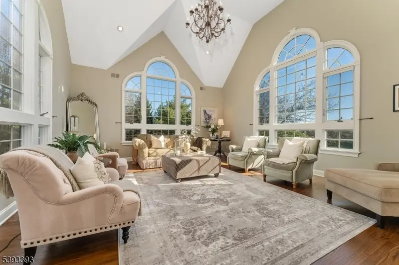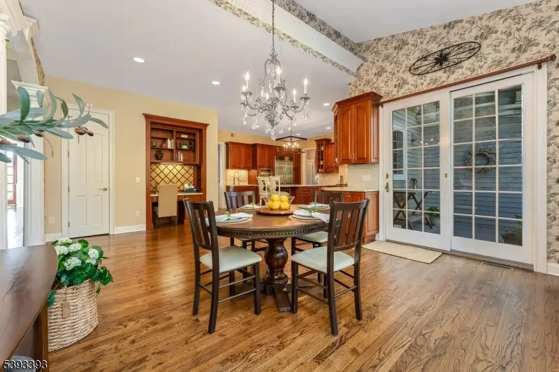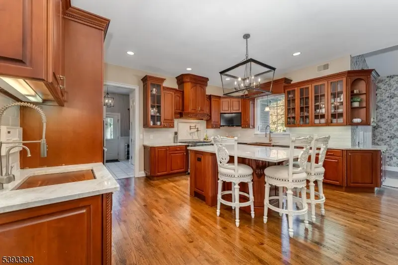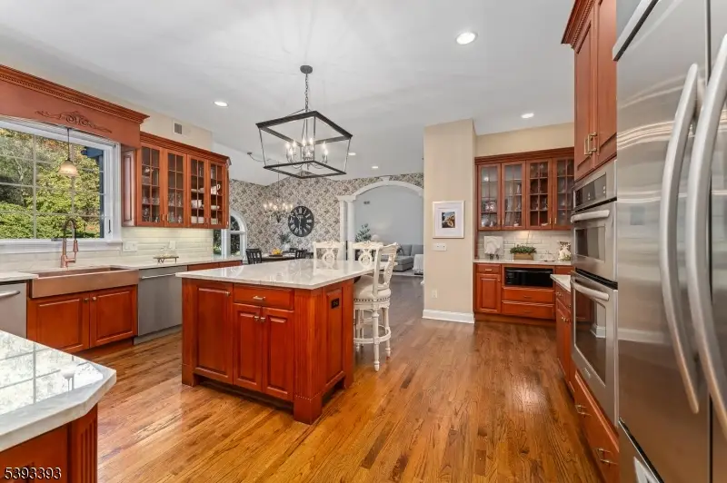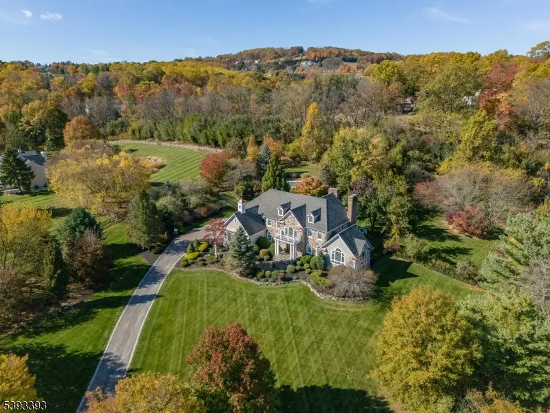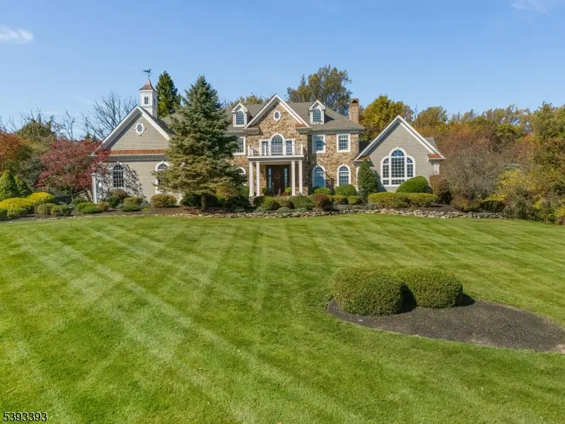 This superbly maintained and sparkling clean 5,262 sq. ft. custom colonial offers 4 bedrooms and 4½ baths on a beautifully landscaped 3.64-acre lot in a private, park-like setting. Located on a quiet cul-de-sac just minutes from Oldwick, this home is a perfect blend of luxury, comfort, and timeless design. Step inside to a light-filled, airy interior featuring: Gourmet Kitchen: 27x19 center-isle kitchen with new quartzite countertops, custom cherry cabinetry, upgraded stainless steel appliances, two dishwashers, and a new Wolf range with pot-filler. Two-Story Great Room: Expansive space with floor-to-ceiling stone fireplace and wet bar. Sunroom: 20x15 cathedral ceiling sunroom with three walls of windows. Private Office: Wood-paneled with coffered ceiling and its own fireplace. Dining Room: 18x16 tray-ceiling dining room, beautifully trimmed for formal entertaining. Foyer: Extra-wide entrance with a curved staircase, welcoming guests with elegance. The second floor features: Master Suite: Expansive cathedral ceiling, sitting room with gas fireplace and wet bar, enormous his-and-hers walk-in closets, and luxurious bath with steam shower and private commode. Additional Bedrooms: A second en-suite bedroom with Brazilian cherry floors and beautifully tiled shower, plus a pair of oversized Jack-and-Jill bedrooms sharing an adjacent bath. Other highlights include extensive millwork, hardwood floors throughout, custom built-ins, Palladian windows, a geometrically-patterned paver parking area, a huge bluestone patio, and an in-ground heated pool—perfect for entertaining and enjoying the outdoors. This home combines classic elegance with modern amenities in a truly breathtaking setting.