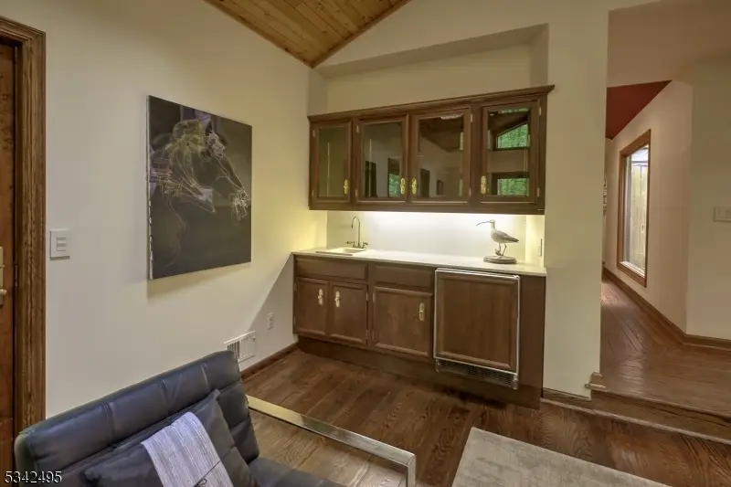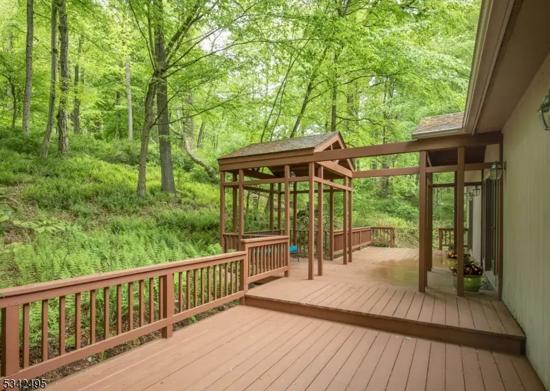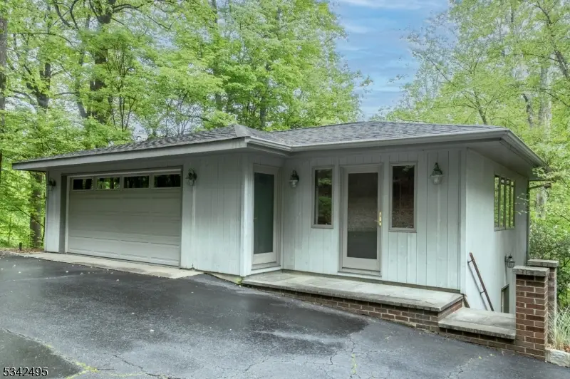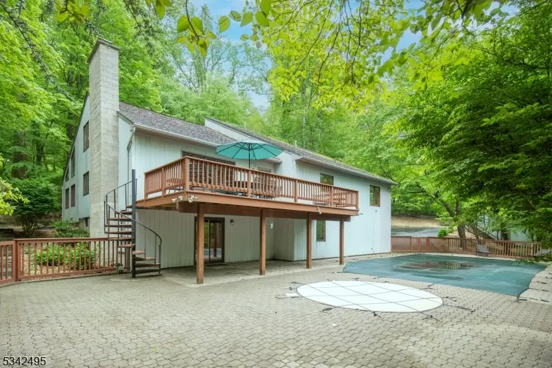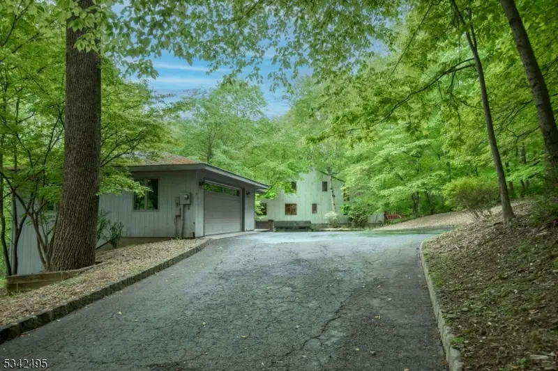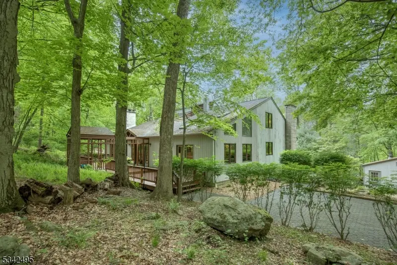 Unique custom-built Contemporary Residence w/modernist viewpoint set on 3 + private, wooded acs, surrounded by mature tree lines. Approx- 4,000 sq ft of stylish living space w/4 bedrms and 4.5 baths, W-O low lvl and 2 car built-in garage. Tranquil cul-de-sac w/striking mountain views, resort-style heated gunite pool w/sep circular spa, paver walkways and several intimate patios. This unique property is characterized by lush landscapes, (2000 built) 2-story artist's studio/home office w/built-in wall unit, hardwd flrs, marble-tiled powder rm w/low level providing storage rm, office, intimate patio,+ 2 car attached garage. Fine craftsmanship highlight open 12-rm flr plan. Unique design element is a serene Japanese Zen Garden tucked into interior courtyard, showcased by large windows thru-out home. Amenities incl window walls, wide plank hardwd flrs, soaring tongue-in-groove wd panel ceilings, 2 fireplaces and wood stove. Remodeled LR w/wet bar steps up to DR, Great Rm anchored by stone, wood burning FRPLC, tree top deck overlooks pool area and mountain views. Chef's kitch w/granite top center isle, top grade s/s appliances and 2 story breakfast area. 2-story first floor primary bedrm w/ flr to ceil stone, gas-log frplc, and en-suite bath. A bedrm/office, full bath, 3rd bedrm complete 1st lvl. Spiral staircase opens to remodel 2nd bedrm suite w/spa bath and entertainment rm. Walk-out, daylight low lvl opens to pool area, rec rm w/wd burning stove and wet bar, steam spa bath w/exercise area.