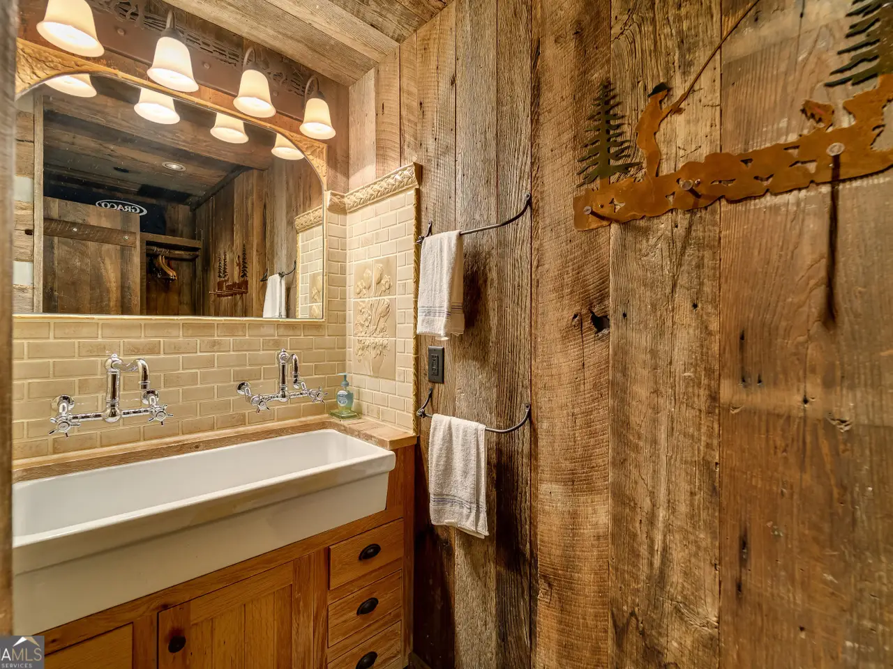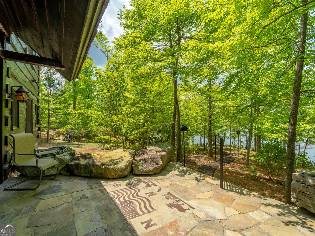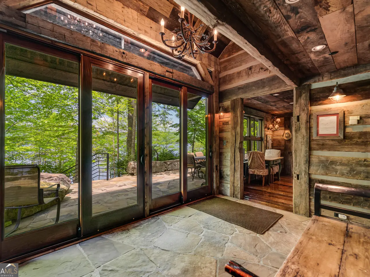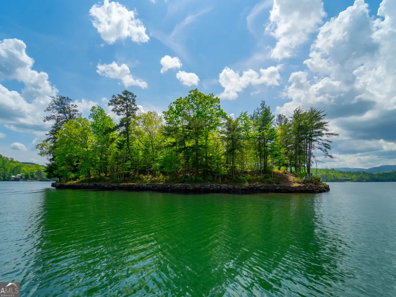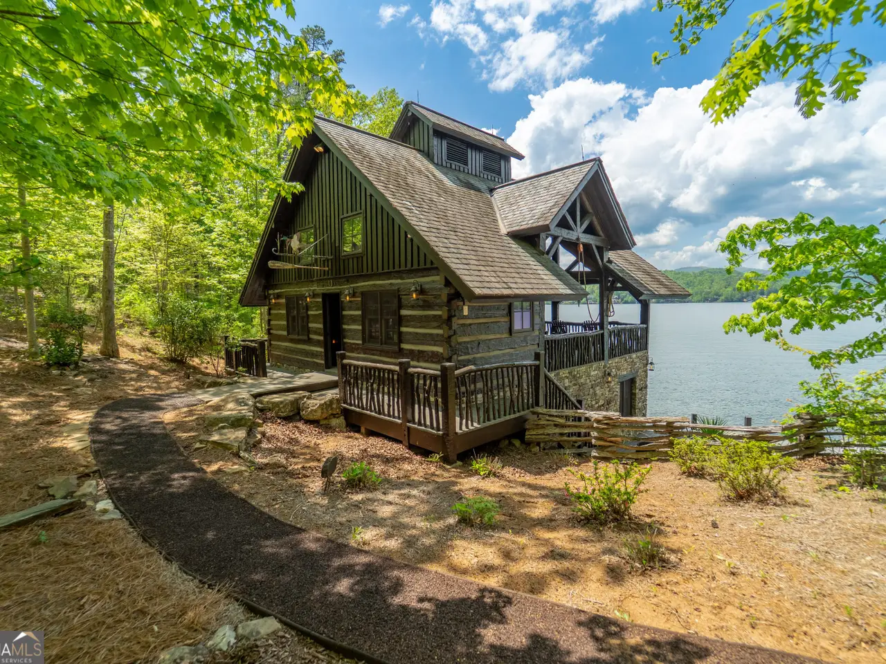 Once-in-a-Lifetime Private Island Estate on Lake Burton Discover the pinnacle of lakeside luxury with this extraordinary 6,186 sqft mountain lodge, perched on its own private island in the heart of Lake Burton's coveted big basin. Offering 360- degree lake and mountain views, total privacy, and Yellowstone-inspired rustic elegance, this one-of-a-kind estate redefines waterfront living. Crafted from reclaimed timbers sourced from Southern cotton mills, the residence exudes old-world craftsmanship and frontier charm. Hand-hewn oak siding with classic chinking, dry stack Tennessee fieldstone, rough-sawn wide plank oak floors, and steel structural supports anchor the home with strength and character. An elegant entry foyer welcomes you from two directions, showcasing east and west views through an open riser staircase with reclaimed treads and flagstone flooring. The soaring great room features lake views from 2 walls, a dramatic cupola, flanking fireplace posts reclaimed from Zachary Taylor Scott's historic home, and a moose antler chandelier complete with a buckshot hole. The chef's kitchen blends style and substance with black soapstone countertops, custom barn wood cabinetry, Viking 6-burner range, dual Bosch dishwashers, refrigerator drawers, custom soapstone sinks and two pantries. The private owner's suite features 3 walls of lake views, a barn wood clad vaulted ceiling and stone fireplace. Each guest bedroom offers unique views and details. The main floor provides 2 guest bedrooms, each with chinked log walls and a private bath. Upstairs, a clever bunk room offers access from 2 separate hallways with a full bath on each end. A large hidden pocket door opens to separate the space into 2 separate bunkrooms when desired. A library with a vaulted ceiling and lake views is currently styled as another guest bedroom upstairs. The terrace level offers a spacious yet cozy media room with a wall of bunk beds against the back wall, a kitchenette with a full fridge/freezer combo, range, sink and dishwasher and laundry room with sink. The gym was designed to mirror the upstairs bunk room, featuring full bathrooms on each end. This space could easily be converted into 2 separate guest bedrooms with the addition of a wall. Outdoors, expansive flagstone patios wrap the home offering views from all directions. Meandering trails of recycled tire wrap the Island, leading to the east wharf and swim dock, putting green, and west side 2-story, 2-stall covered boathouse overlooking one of the most epic sunset views on Lake Burton. Additional Details include: self-contained fire suppression system, copper-clad Kolbe windows, antique terracotta tile, LiteTouch lighting system, extensive security system, 1GB Fiber Optic Internet, slate roof, lightning rods, Generator, central vac. Proof of Funds required before showing. There are security surveillance cameras throughout the island. Do not attempt to access the property without listing agent being present.