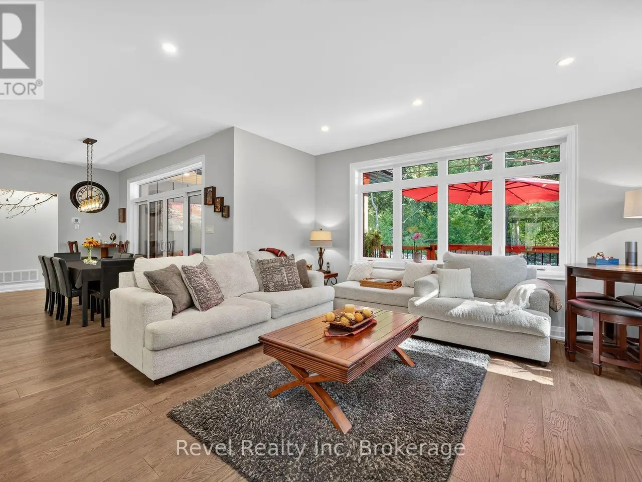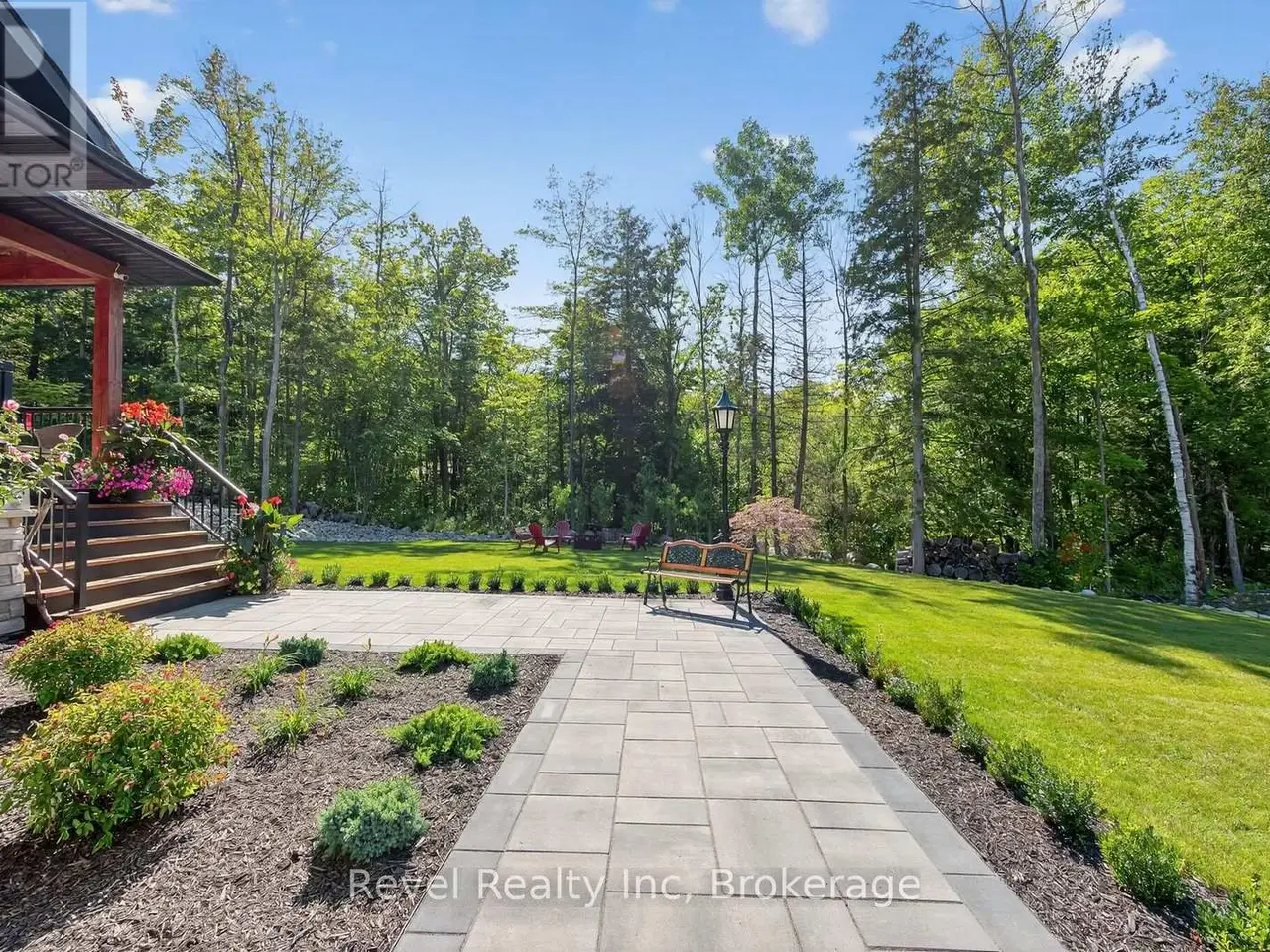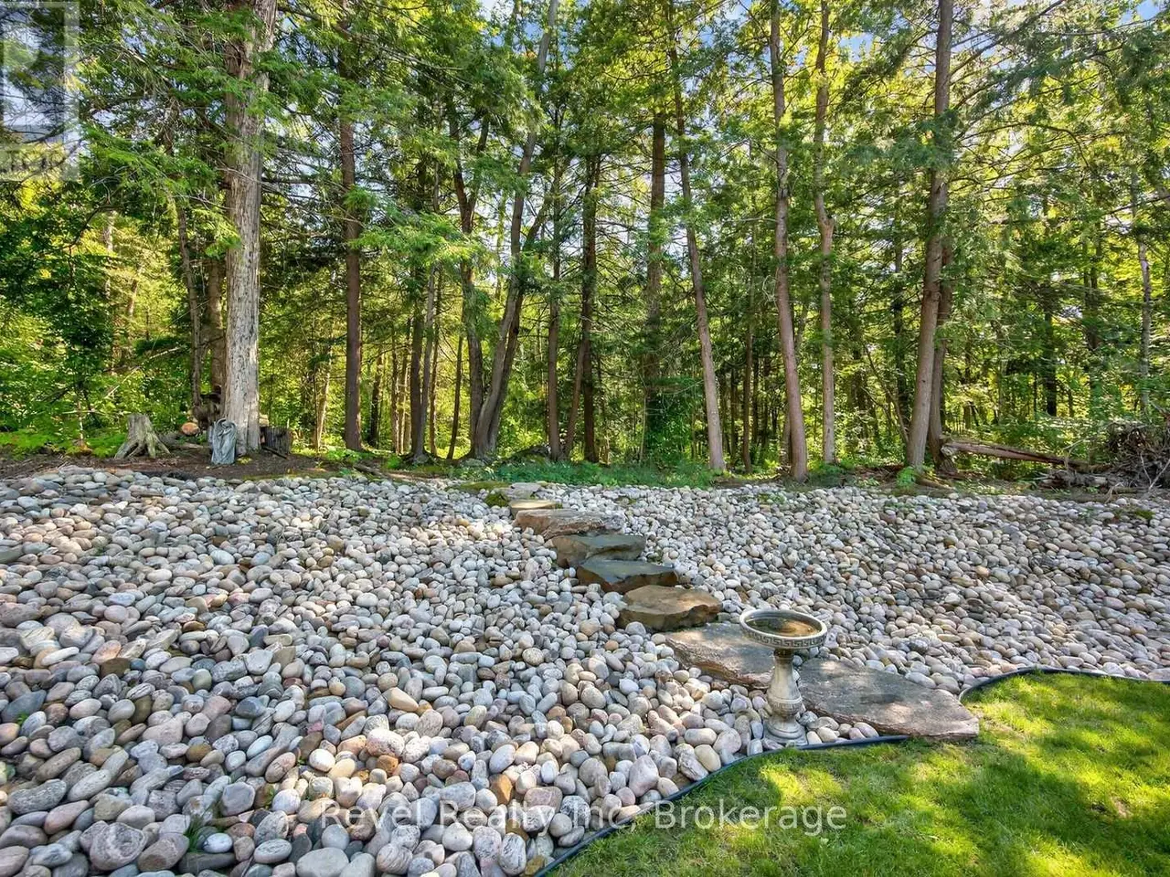 Luxury Living in Exclusive Thunder Beach! Imagine waking up beneath the serene Nipissing Ridge on 1.7 acres of landscaped privacy, with turquoise waters of Georgian Bay just steps away. This nearly new executive bungalow is a rare opportunity to call one of Georgian Bays most prestigious communities home. Every detail of this residence speaks to quality and craftsmanship. Built with ICF foundation and French drains for lasting comfort and energy efficiency, it also showcases rich hardwood floors, custom cabinetry, and spa-inspired bathrooms. The covered porch welcomes you into an airy, open-concept design where a chefs kitchen, featuring a Thor stove, pot filler, walk-in pantry, and multimedia bar, seamlessly connects to the dining area and covered deck. Every window frames tranquil views of trees, never neighbors. The primary suite offers a walk-in closet and a serene ensuite with an oversized glass shower equipped with multiple showerheads for your private spa retreat. Two additional bedrooms and a second full bath complete the main level. The finished lower level extends the lifestyle: radiant in-floor heating, a custom bar, built-in media surround, and oversized windows create a sophisticated entertaining space. Two more bedrooms, a full bathroom, and a walk-up to the heated garage ensure versatility perfect for an in-law suite. Beyond the home, the Thunder Beach lifestyle awaits. Ownership here means more than just a property its belonging to a community. Enjoy access to tennis courts, a private golf club, and a vibrant social scene that has defined this enclave for generations. And as the day closes, watch the horizon light up with sunsets that paint the sky in breathtaking shades of pink and gold. This is not just a home. It is an invitation to live exceptionally where luxury, lifestyle, and Georgian Bays natural beauty come together in perfect harmony. (id:7434)