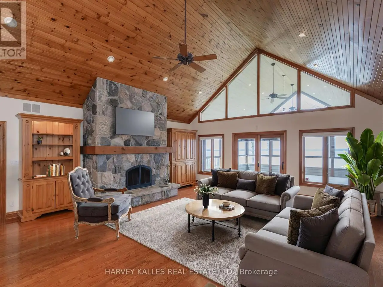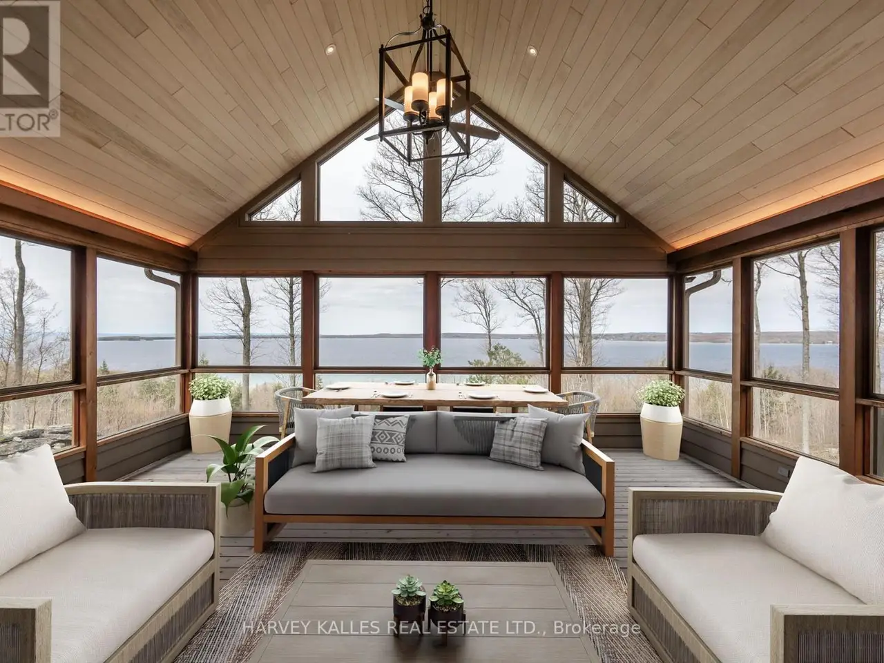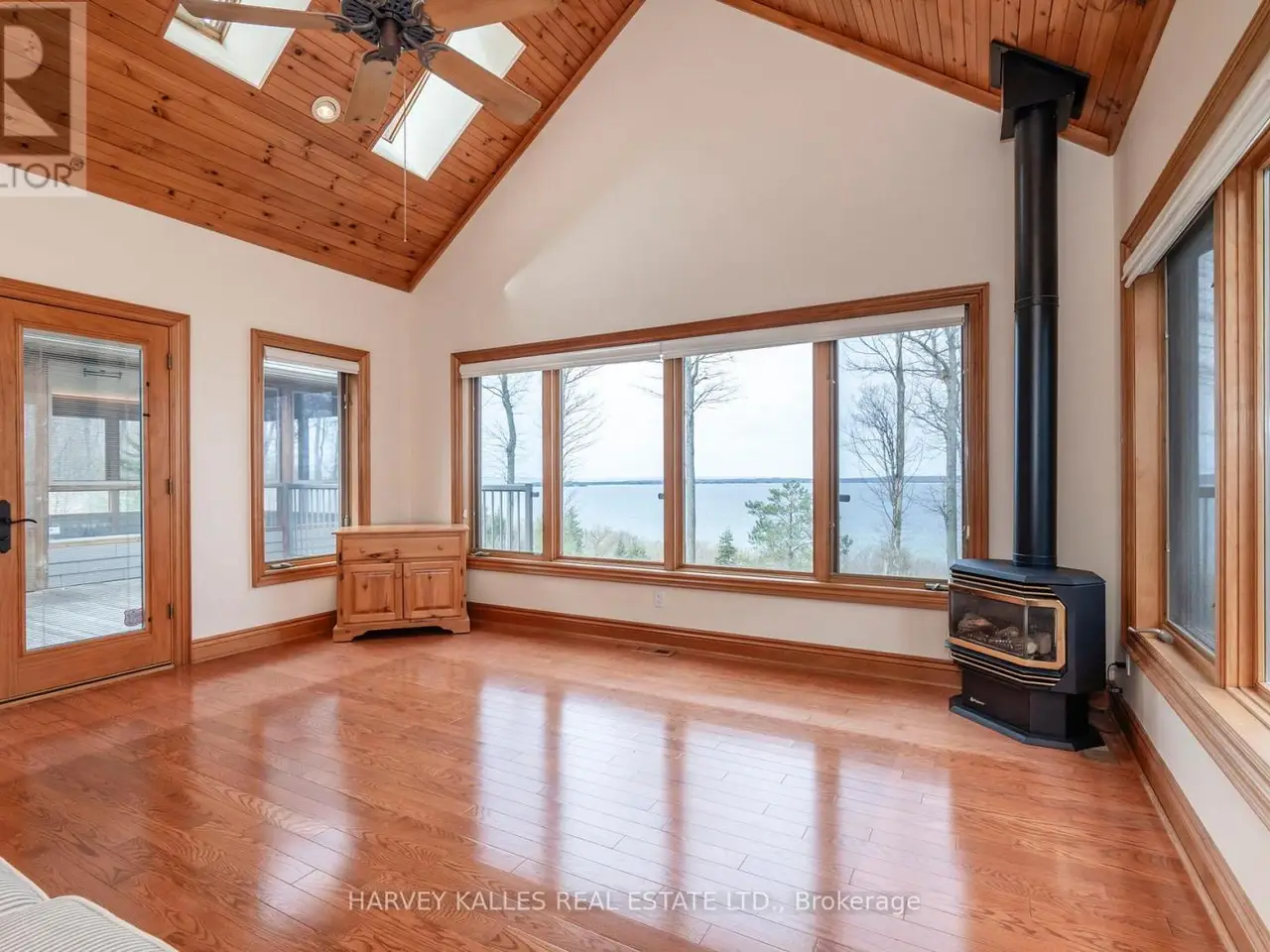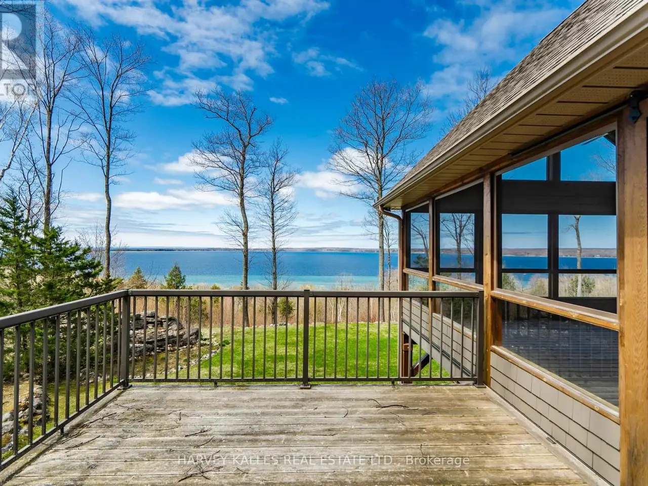 Perched high on a ridge at Cedar Point in the coveted Cedar Ridge community, this home is located just under 2 hours from Toronto. This spectacular residence captures sweeping, panoramic views over the turquoise crystal-clear waters of Georgian Bay with stunning western sunsets. Set on a premium 4-acre lot, this thoughtfully designed home offers unmatched privacy, natural beauty, and a true four-season lifestyle. Crafted for both relaxation and entertaining, this home features an open-concept kitchen, dining and great rooms with soaring vaulted ceilings, an abundance of natural light through oversized windows and skylights, and oak flooring. Warmth and ambience abound with a granite stone wood-burning fireplace in the great room and a cozy propane stove in the sunroom. The wrap-around Western Red Cedar deck and screened porch create a seamless flow between interior and exterior spaces. The private primary suite features a 5-piece ensuite and direct access to its own exterior deck - perfect for quiet mornings with a coffee and unobstructed views of the Bay. The walkout lower level, with in-floor radiant heating and the upper level loft, offer additional living space for family and guests. Located near the well-known Thunder Beach community, Awenda Provincial Park, Lafontaine Beach & the towns of Penetanguishene and Midland. World-class skiing at Blue Mountain and Horseshoe Valley is just 40 minutes away. While nearby golf courses, sailing clubs, skiing clubs, trails, and sandy beaches offer recreation for every season. A rare opportunity to own a four-season retreat in a truly breathtaking setting! (id:6370)