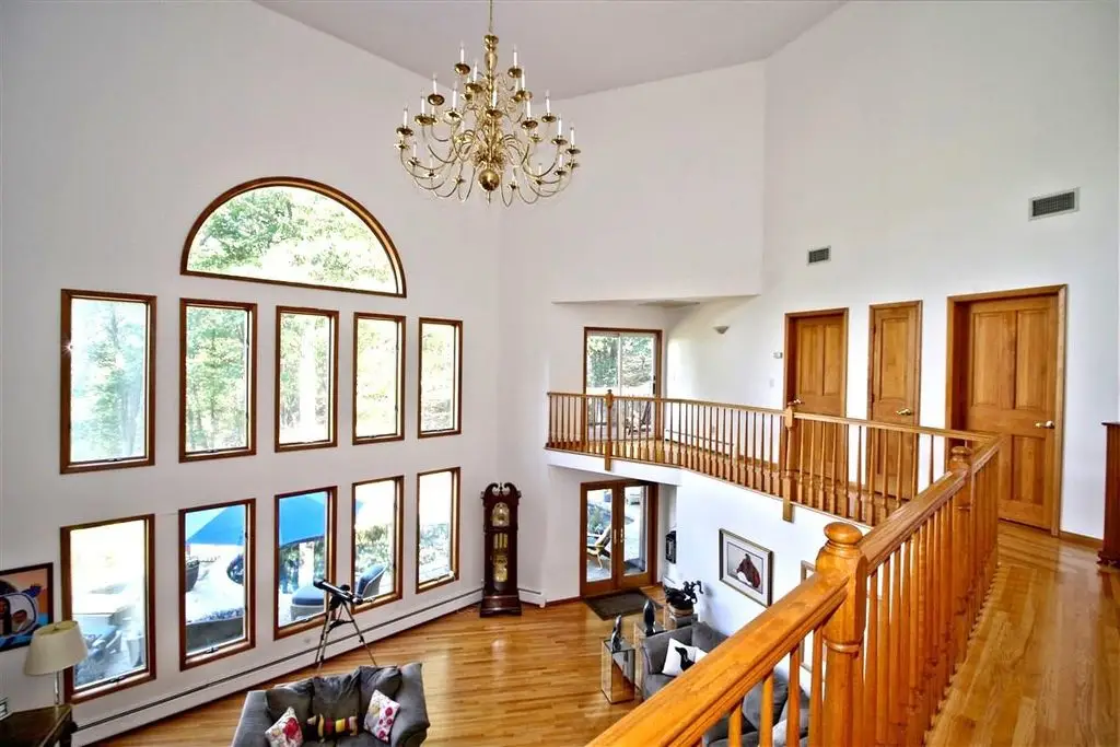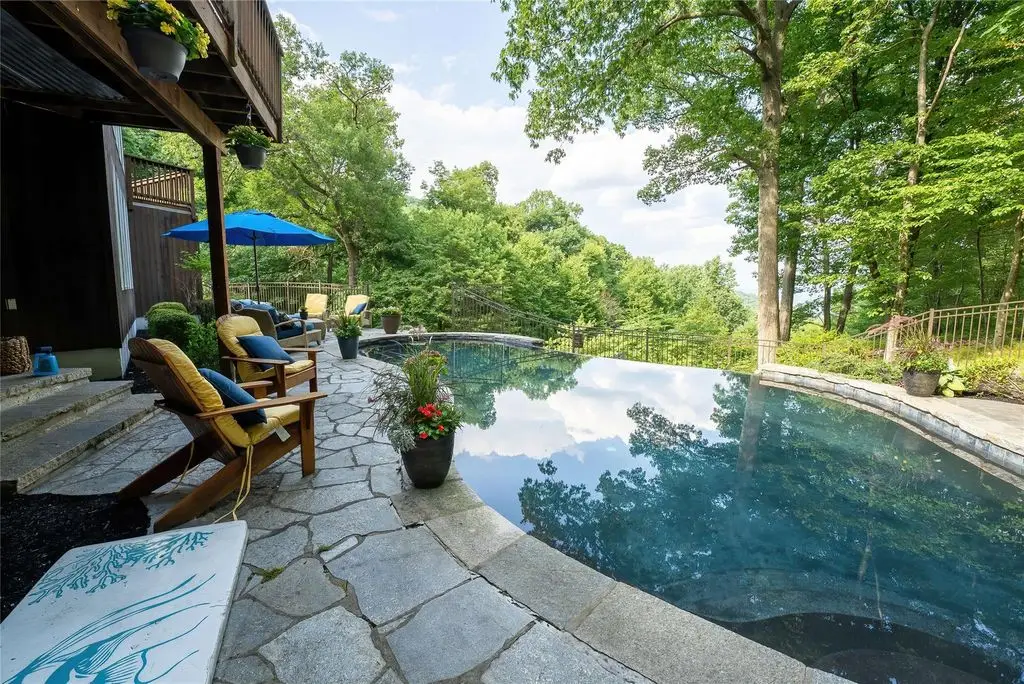 STUNNING CONTEMPORARY WITH SWEEPING RIVER VIEWS IN A PRIVATE LAKE COMMUNITY YET AMAZINGLY CLOSE TO New York City- Looking for a spacious, high-end daily or weekend retreat Look no further. Dramatic 2-story walls of windows showcase the glorious natural setting which is adjacent to Harriman State Park and overlooking the majestic Hudson River. A brand new eat-in kitchen with many beautiful and expensive finishes and appliances has just been completed and is a great place to prepare for and entertain guests at the same time. Large or small groups are easily accommodated in the spacious formal dining room next to the kitchen and leading to the impressive Great Room, truly worthy of its name. The sought-after open floorplan featuring this exceptional Great Room with spectacularly high ceilings, a motorized chandelier and striking fireplace connects all rooms. A room on this level used as an office or den, could serve as another bedroom, if you want two on the main level. A breathtaking catwalk framing the entire second level invites you upstairs. All rooms are large with light colored hardwood floors which serve to enhance the abundant natural light . The primary bedroom has its own fireplace, huge spa bath with a double sink vanity, whirlpool tub, separate shower and private deck facing the river. Nearby bedrooms have their own viewing deck too so all can be enchanted by the uniquely picturesque views. The partly finished basement adds lots of additional space and a wealth of handy storage. A breathtaking infinity pool with stone patio and energy efficient heating system faces the river and an amazing treehouse built by the owners to delight their grandchildren. Don't miss the community lake steps away with waterfront activities and don't forget to bring your canoes and kayaks to leave at the lakefront for easy access. Spring, Summer, Winter ,Fall 36 Ridgetop has it all.