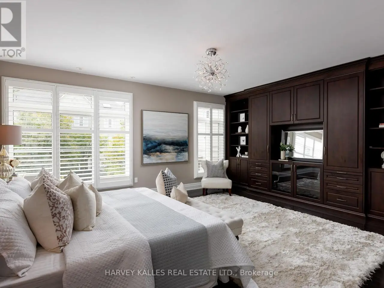 Large primary suite with built-in wall unit