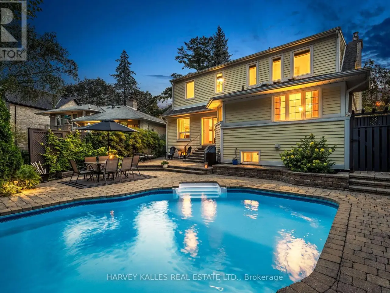 Welcome to 17 Elstree Rd, a stunning home set on one of the most coveted & tranquil tree-lined streets in Humber Valley Village. With over 81 ft of frontage on a lush,mature lot, this residence combines timeless elegance w/modern comfort in a truly unbeatable location.Step onto the covered front porch & into a sun-filled foyer featuring custom closets & gleaming hrdwd flrs. The L/R offers a wall of windows overlooking the front gardens & a custom Rumford fireplace w/stone surround - perfect for both entertaining & quiet evenings. The formal D/R impresses w/hrdwd flrs, bespoke millwork, & a statement chandelier,all overlooking the priv backyard.The kit features hrwd flrs,stone counters & backsplash, 6 s/s appliances,abundant cabinetry,a breakfast area, & a w/o to the backyard oasis. A main-flr F/R completes the flow,offering a warm space to gather & relax.Upstairs, you'll find 3 spacious bdrms, incl a primary retreat w/a w-in closet, custom b/ins, & a spa-inspired 5pc ens w/garden views.The L/L expands the living space w/a generous rec room,gas fireplace,above-grade windows, & a dedicated guest br or office paired w/a nearby 3pc bath - ideal for a nanny or in-law suite. A bright laundry area,ample storage, & a cold rm add convenience & function.Outside,the inground salt water pool,landscaped gardens, & towering trees create a private sanctuary, complemented by a dbl-car garage & driveway prkg for four. This home represents an exceptional opportunity to live on one of the best streets in Humber Valley Village,surrounded by top-ranked schools,incl Humber Valley Village JMS, Richview Collegiate Institute & All Saints Catholic School.Walk to the newly renovated Humbertown Shopping Centre & James Gardens.Renowned golf clubs, incl St. George's Golf & Country Club,Islington Golf Club & Weston Golf Club,are nearby.W/quick access to the Bloor St Subway line, Pearson Int Airport,and major hwys, 17 Elstree Rd offers the perfect balance of serene family living & city convenience.