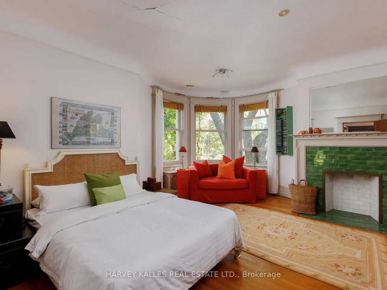 Nestled in Toronto's prestigious Rosedale neighbourhood, this landmark mansion occupies an expansive 100' x 122' estate-sized lot and offers over 7,500 square feet of impeccably designed living spaces. With 7 + 1 generously proportioned bedrooms, 8 bathrooms, and an exceptional third-floor loft, this grand residence seamlessly blends historic architecture with the scale, elegance, and functionality. Originally built circa 1900 for the distinguished Applegate family, the home has been meticulously restored and thoughtfully maintained to preserve it's architectural heritage including a selft portrait stain glass window of Mrs. Applegate herself. Drawing inspiration from the classical traditions of Italian Renaissance architect Andrea Palladiio - most notably his iconic Villa Rotunda in Vicenza, Italy - the home reflects timeless design and exceptional craftmanship. A majestic octagonal central hall, framed by twelve lonic columns, creates an unforgettable first impression and sets the tone for the rest of the residence. Throughout the home, rich period details abound: original oak hardwood floors, finely hand-craved oak mouldings and wainscoting, intricate millwork, and 6 fireplaces with decorative tile and brick hearths. The soaring 10-foot ceilings are adorned with ornate plaster crown mouldings, ceiling medallions, and oak-beamed details that speak to the home's historical significance. Expansive bow windows and beautifully preserved stained glass flood the interior with natural light and highlight the warm, elegant atmosphere. Outside, the property is a private oasis, surrounded by mature trees, lush landscaping, and tranquil gardens that offer rare serenity in the heart of the city. A detached two-car garage and additional parking for three vehicles provide added convenience. This is a once-in-a-generation opportunity to own a truly iconic Rosedale residence - an architectural treasure steeped in history and timeless charm.