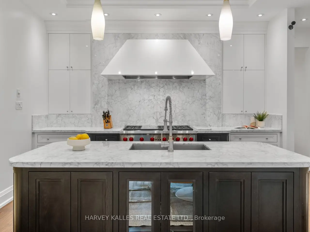 Experience the timeless sophistication of a New York brownstone, reimagined in the heart of midtown Toronto. This bespoke builder's own residence showcases hand-finished limestone architecture and over 4,200 sq. ft. of interiors defined by 11 main floor ceilings, elegant proportions, and meticulous craftsmanship. An inviting marble mosaic entry hall introduces the home, where elegant French pocket doors reveal the chef's kitchen. At its centre, bespoke cabinetry is paired with book-matched marble, a large island, and a sun-filled breakfast area. A discreet walk-through pantry offers abundant storage along with a wine fridge, bar, and display. Expansive glass doors extend the living space to a private deck and landscaped yard - ideal for both refined entertaining and everyday living. Elegant curves throughout, including a sweeping staircase, lend architectural drama, while solid core wood doors and a built-in Bose surround system underscore the home's quiet luxury. A dedicated space alongside the staircase also allows for the addition of a private elevator. Upstairs, with soaring 10 ceilings, the oversized primary suite is a sanctuary complete with an expansive dressing room and dual spa-inspired ensuites joined by a dramatic walk-through shower. Two additional bedroomseach with its own ensuitecomplete this level, including one with a private study ideal for a home office, reading nook, or serene retreat. The versatile lower level features a bright recreation room/gym, guest bedroom, full bath, laundry, and direct access to the double garage. This home delivers a rare blend of convenience and sophistication. Perfectly positioned close to synagogues as well as Toronto's elite public and private schools, this residence offers both lifestyle and locationjust moments from downtown. A residence of rare distinction for those who value timeless design, craftsmanship, and modern comfort.