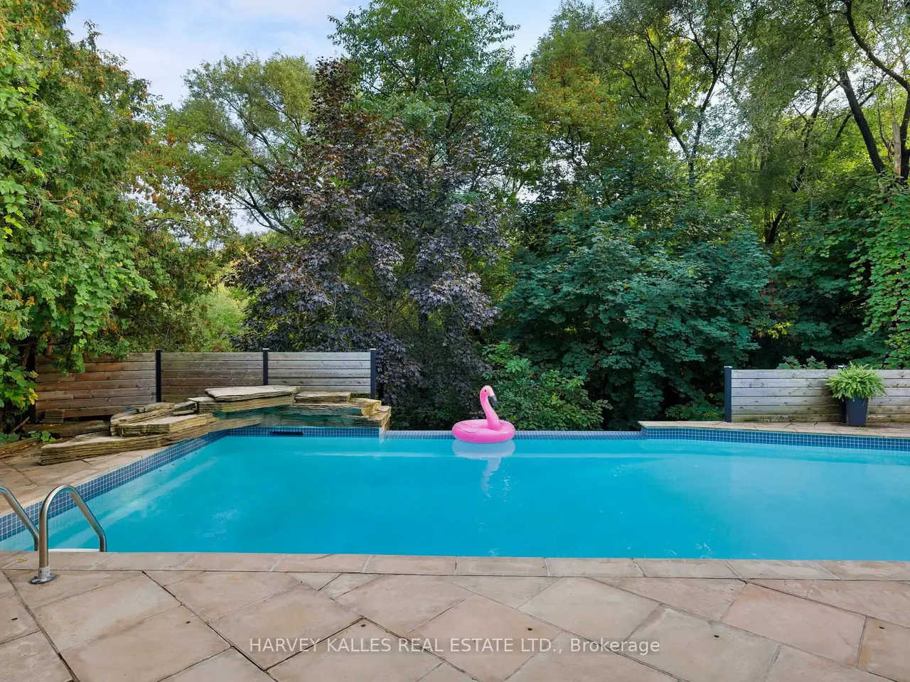 Say yes to the absolute best; this Markland Wood mid-century modern home is the pinnacle of style and comfort with unique details and a timeless aesthetic. Modern living and beautiful mid-century modern architecture? Check! Close to every amenity imaginable? You've got it! A beautiful backyard paradise on a ravine lot and an inground pool that makes you feel like you're on a tropical vacation every day, all day? Naturally. A brand-new mud room with direct access to the garage and side entrance? Oddly specific ask, maybe but yes, that too! Your new dream house offers so many perks that you may never need to board an airplane again. Designed by Award Winning Architect, Anthony Ferracuti (Global Architects), this 4+1 bedrooms, 3.5 bathrooms, plus a half bath home provides room to spare. The eat-in kitchen comes with professional-grade Frigidaire and Miele appliances, while a walkout basement makes entertaining a breeze, with its own kitchen, dining area, lounge spaces and sauna. Community features include Neilson Park Creative Centre, Markland Woods Golf Club, and walking/bike trails along the Etobicoke Creek Ravine (and CF Sherway Gardens, of course!) The home is also in the catchment area of top-rated schools, including St. Clement Catholic School. With an oversized pie-shaped lot, opportunities for outdoor enjoyment open up. This home was made for making memories. With an expansive primary bedroom complete with its own sitting area and a four-piece ensuite, it's hard to pick a favourite feature in this glorious oasis. This is your perfect home for everyday luxury.