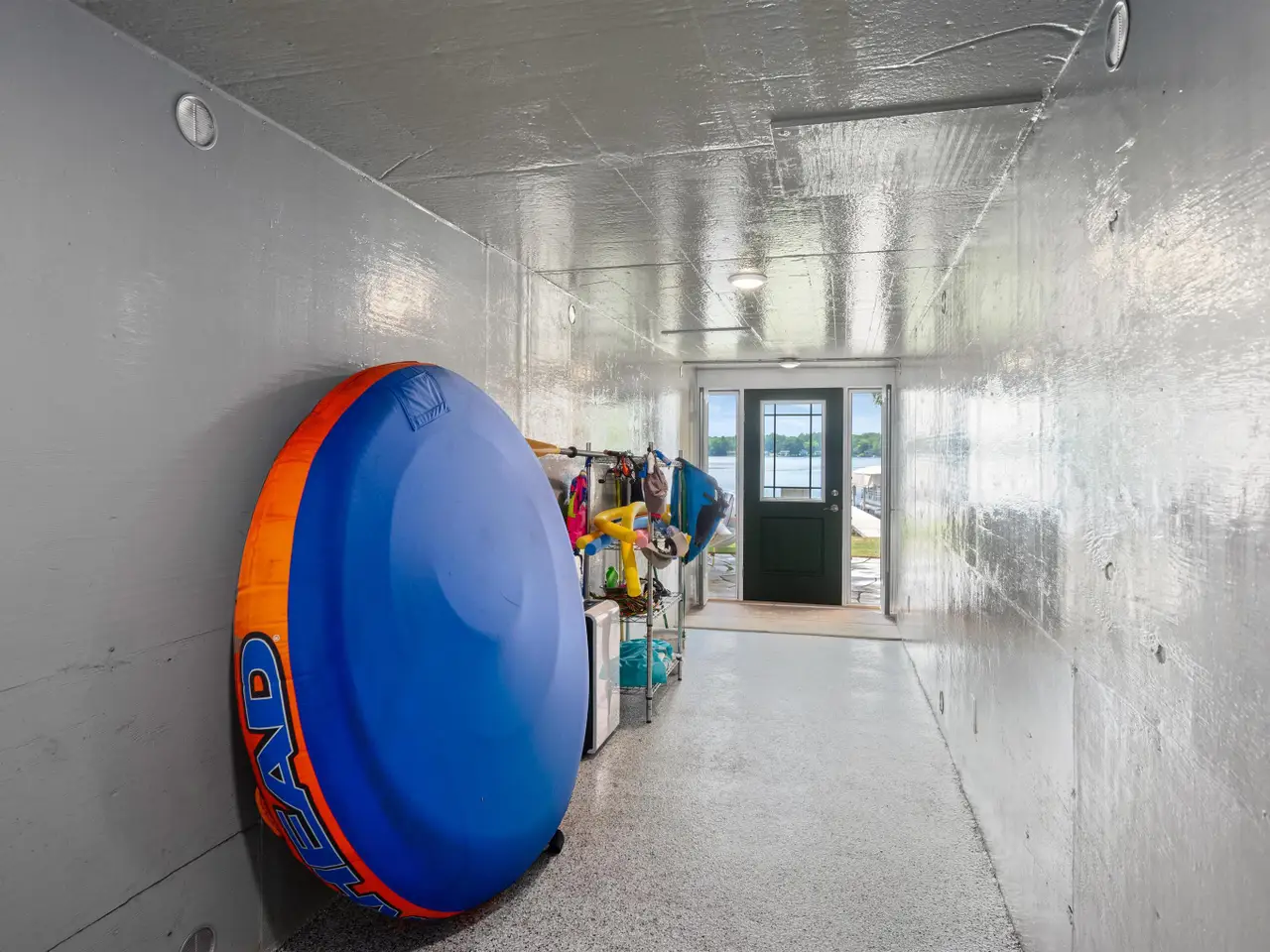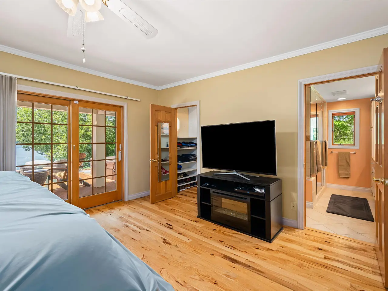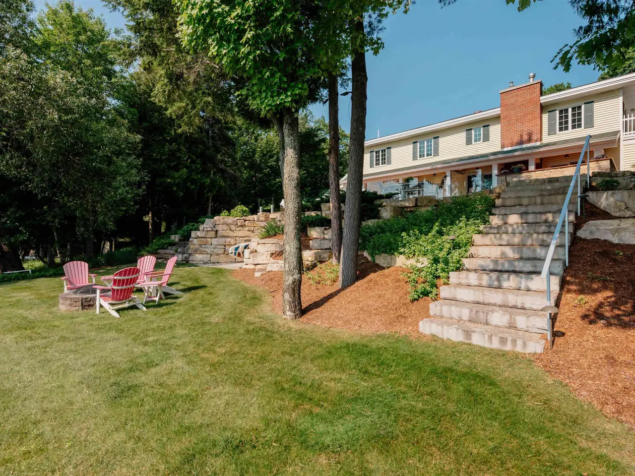 Tucked away on 1.46 beautifully landscaped acres with 170 feet of private frontage on all-sports Bass Lake, this extraordinary estate offers an unparalleled blend of history, charm, and modern luxury--all just minutes from downtown Traverse City. Thoughtfully updated while preserving its rich heritage, this exquisite home invites you into main-floor living at its finest. Soak in serene lake views from the light-filled three-season porch, complete with a cozy fireplace--one of three throughout the home. The private primary suite is a true retreat, featuring a spacious walk-in closet, a luxurious walk-in steam shower, and the comfort of in-floor radiant heating. Upstairs, you'll find additional bedrooms, including a suite with its own private bath and kitchenette--ideal for guests or multigenerational living. Another bedroom offers its own sun porch sanctuary, and there's a flexible office and bonus bedroom space to suit your lifestyle. The walkout lower level is designed for entertaining, with a second kitchenette/bar, a generous family/game room, and a unique tunnel that leads directly to the lake--perfect for effortless access to your waterfront playground. Dock, boat, and shore station? All included--just bring your sunscreen and start making memories. Professionally designed landscaping with outdoor shower and built-in grill enhances the beauty of this rare offering on 343-acre Bass Lake, making it the perfect sanctuary for those who value character, craftsmanship, and an unbeatable location.