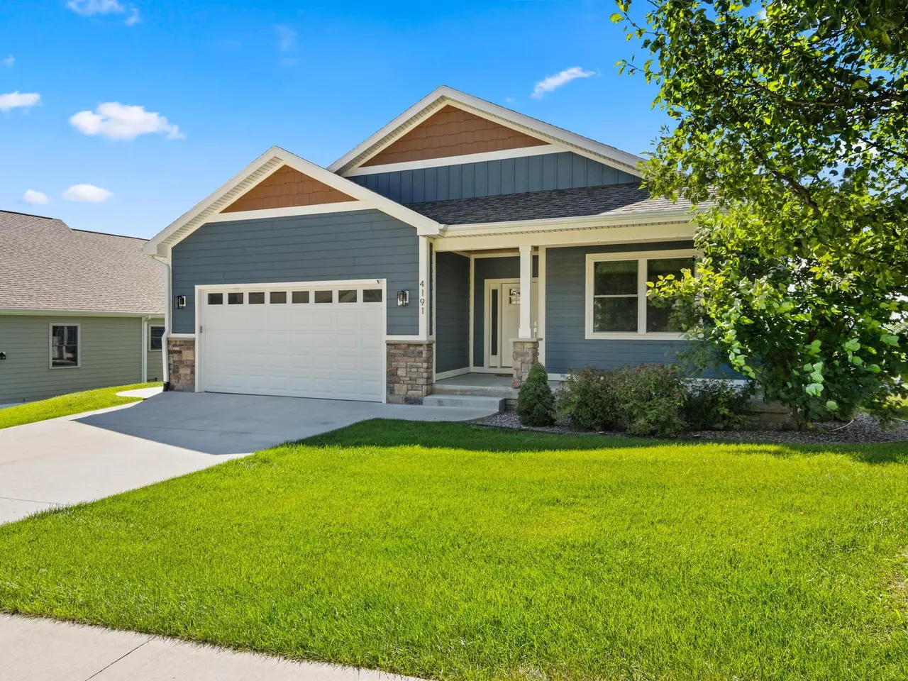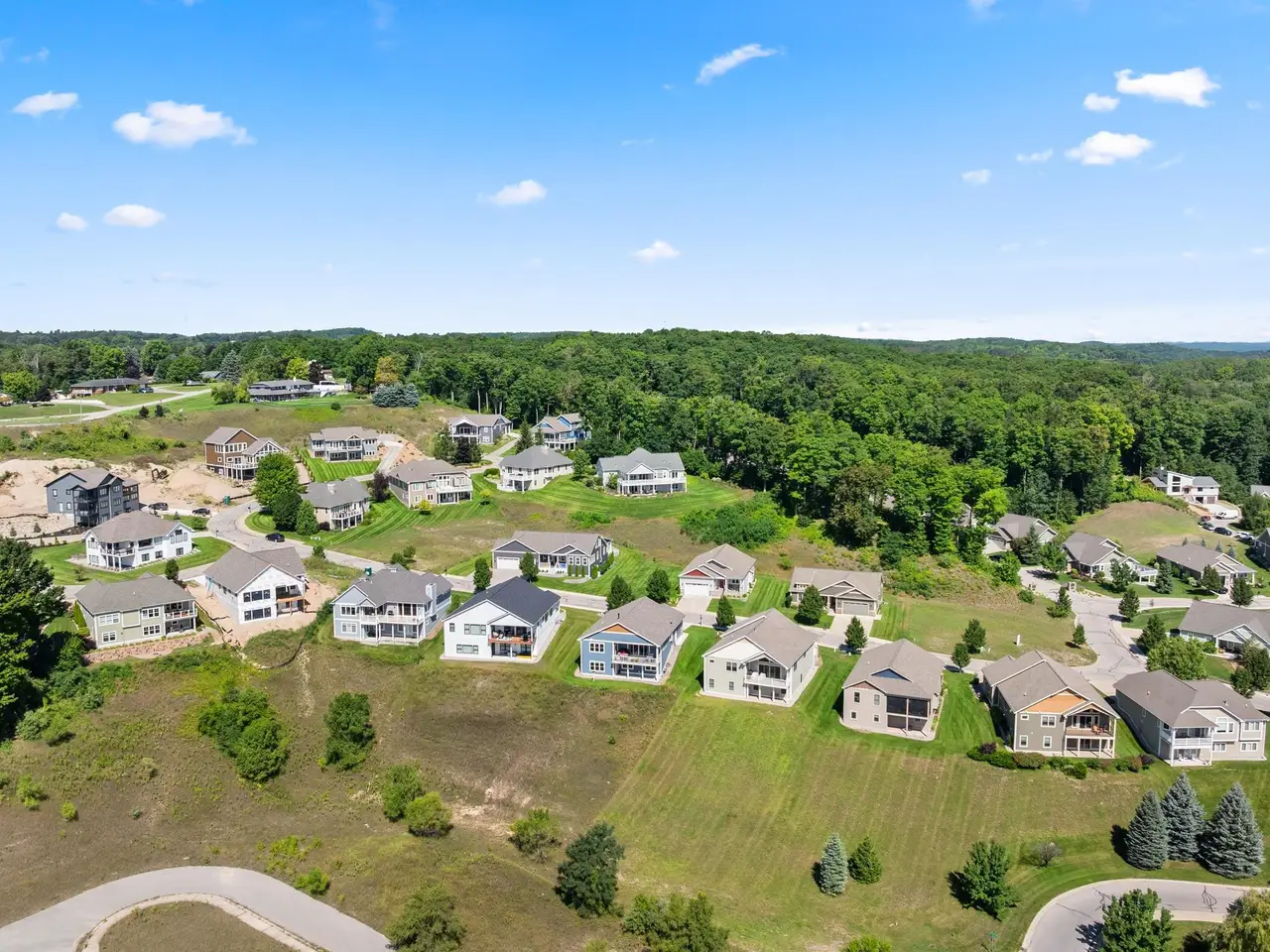 Welcome to Eagles View -- One of Traverse City's Premier Communities! This like-new, one-owner custom-built home offers the perfect blend of style, comfort, and functionality in one of Traverse City's most desirable developments. Its sweeping views make a stunning, picturesque backdrop. Thoughtfully designed with attention to detail throughout, this residence provides the ease of main-floor living in an open and inviting layout. The spacious primary suite features a private bath and a walk-in closet. The primary bedroom has a trayed ceiling to add to the luxurious look. The bright and modern kitchen is equipped with granite countertops, stainless steel appliances, a large island, a pantry, and extra shelving. The living and dining areas showcase a trayed ceiling, a stunning stone-surround gas fireplace, and double...yes, double sliding doors that open to a private rear patio -- perfect for relaxing or entertaining. Luxury vinyl plank flooring runs through the main living areas, and the home includes central air conditioning for year-round comfort. All of the bathrooms have tile flooring. The main floor also offers a convenient laundry room just off the attached two-car finished garage. The finished lower-level walk-out includes two additional bedrooms, a full bathroom, a spacious family room, a recreational area, and ample storage space. Professionally landscaped by Living Art Landscapes, the yard is equipped with irrigation and provides a serene outdoor oasis. This home is ideally located just minutes from downtown Traverse City, Munson Medical Center, shopping, schools, and numerous hiking and biking trails.