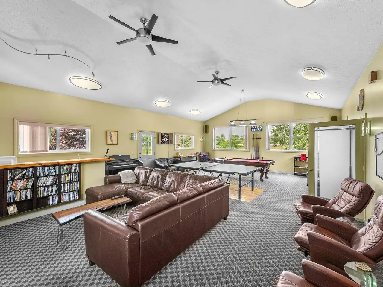 Welcome home! This is how you will feel as you enter this incredible two-story home. Designed for entertaining or lots of room to play, this home has something for everyone. Inviting foyer opens to spacious main flooring living room with gas fireplace and dining area. Gracious island kitchen with hardwood flooring, stainless appliances and solid surface counter tops. Main floor primary suite has a private bath with a jacuzzi tub and a tiled walk-in shower. Upper level features fully loaded family room with kitchenette, and room for all your guests. Full finished walkout lower level with sauna. Exceptional grounds include wrap around covered porch, in-ground heated pool, pool house, changing rooms, and playground area. There is truly something for everyone here, adult "playground" can be found in the 24 foot x 118 foot heated, insulated finished pole building, with four designated areas, last stall features raised ceiling. Secondary 16 x 36 barn with heat/ac and water. In addition to five-plus acres, home comes with shared Silver Lake access. Well maintained home ideally situated a short drive to Traverse City. Majority of home was built in 1998 small portion original to 1948.