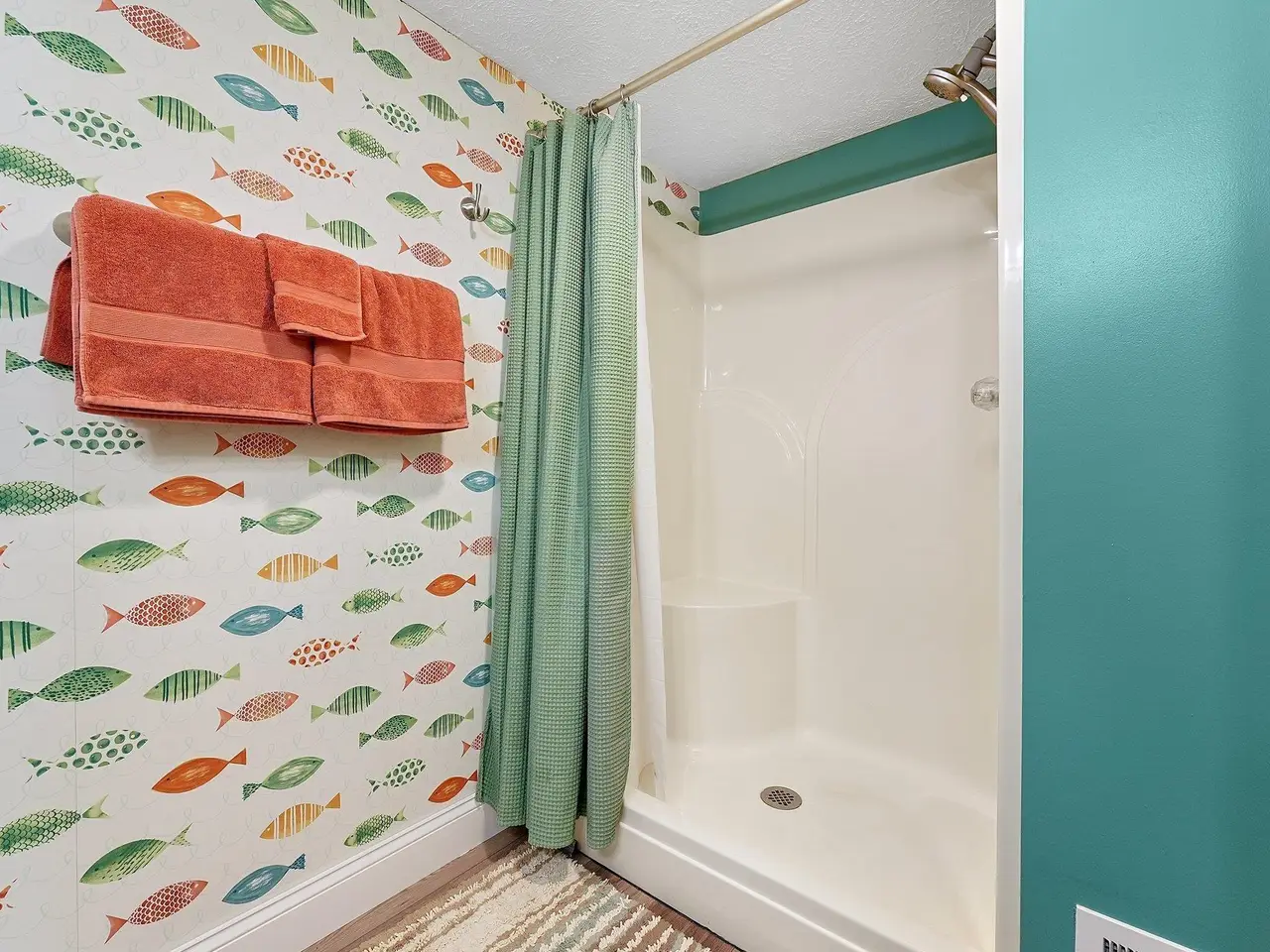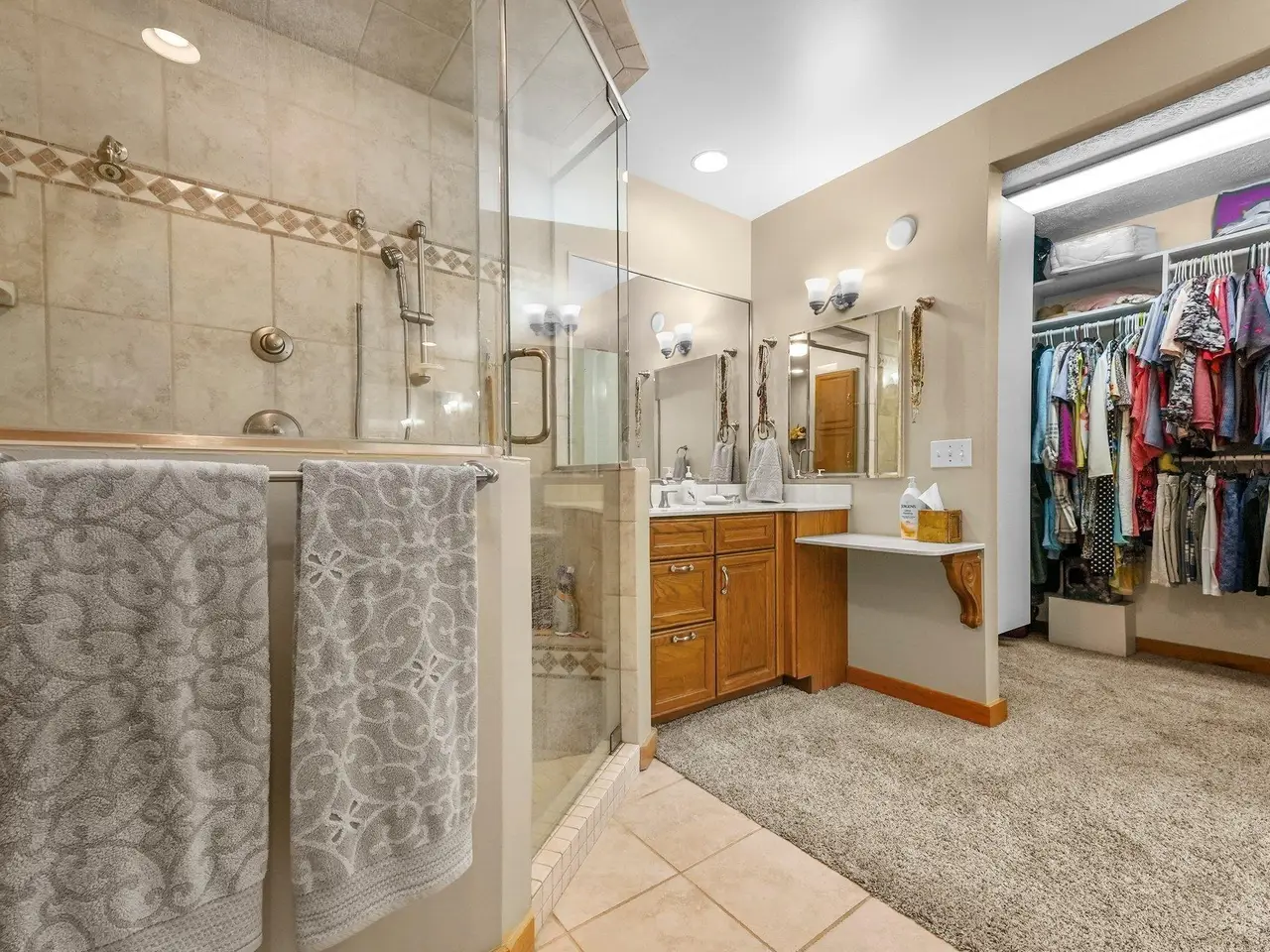 - Tiled walk-in shower