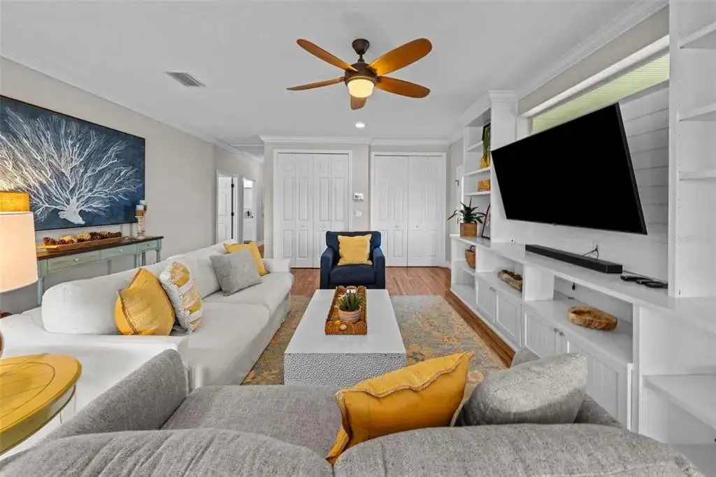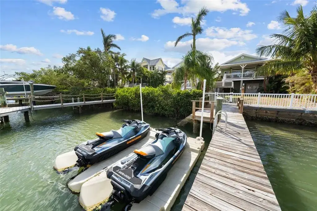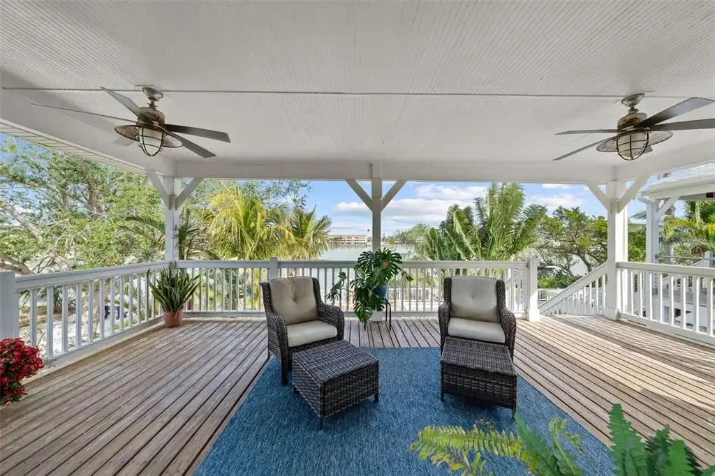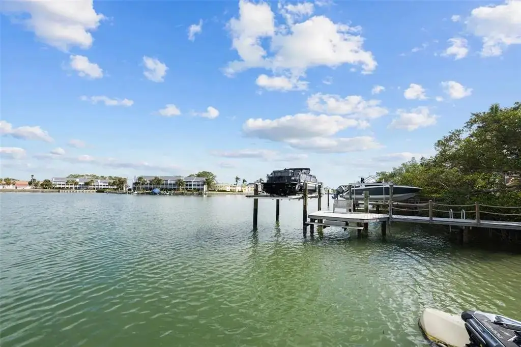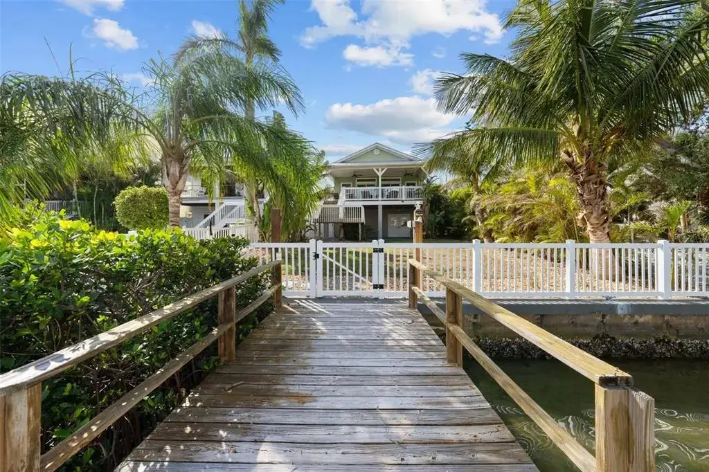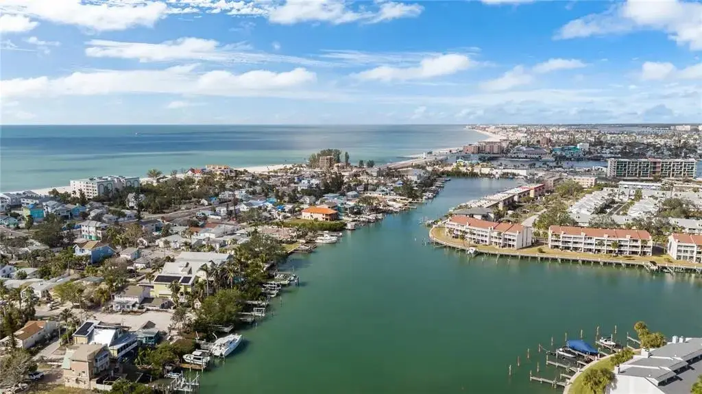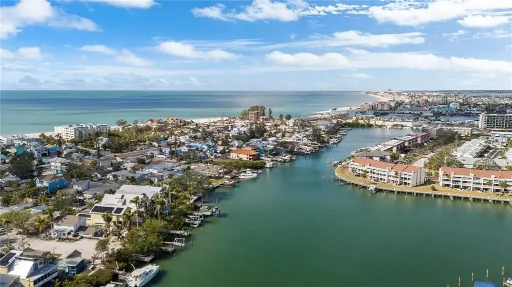 This Coastal Home is a boater's dream in a protected Lagoon on the Intracoastal Waterway with direct access to the Gulf of Mexico. The Key West-style home is wrapped in porches, capturing salty breezes for an endless vacation vibe. This waterfront beach house is found on a corner lot with both sunrise and sunset views. An open floor plan includes a living room with built-in shelving for media, entertainment and personal treasures. The dining area provides a large gathering space while the kitchen has a center island with breakfast bar, open shelving for glassware, a wine nook, and a large pantry for storing dry goods and small appliances. Sand colored granite countertops float above white shaker cabinets with abundant prep and storage space. Take indoor living outside through sliding doors to the covered waterfront living area. All on one living level, the Primary Suite has French doors to the westward porches to delight in sunset skies and nightcaps. The ensuite bath has been updated with large vanity and a gorgeous, tiled steam shower. No need to share a closet, you can each have your very own! The second bedroom also has French doors to the sunset porch to let in the natural light. The third bedroom offers flexibility for residents, guests or a home office. This Custom home has gorgeous eucalyptus flooring and 9’ ceilings throughout, 6” crown moldings, thoughtful built-in features, designer hardware and fixtures – this is a truly special home. While the living area has ample storage space, there is also a large garage with room for several vehicles, golf carts, bicycles, beach toys and fitness area. Take your kayaks and paddleboards right out the back door. The waterfront has a deep-water dock with power, water and even an outdoor shower. Sailboat water, in a no wake zone, has direct access to the Gulf of Mexico via John’s Pass. The backyard oasis has a covered lanai for BBQ and al fresco dining or chilling out in the shade. Tropical palms and bamboo surround the space for privacy, leaving room for a pool. Beach access is just two blocks away with a crosswalk at Gulf Boulevard and 123rd Avenue. Custom built in 2016 at 14 feet above sea level, this home is a fortress, exceeding FEMA requirements with impact glass windows and doors, metal roof, and reinforced engineering. This home is offered fully furnished, Move-in Ready with Motivated Sellers!