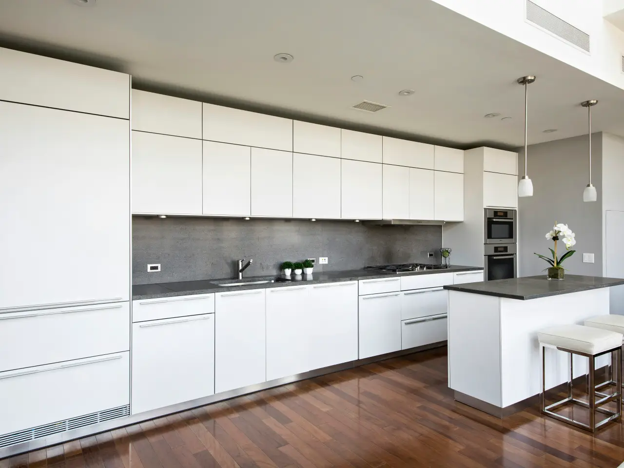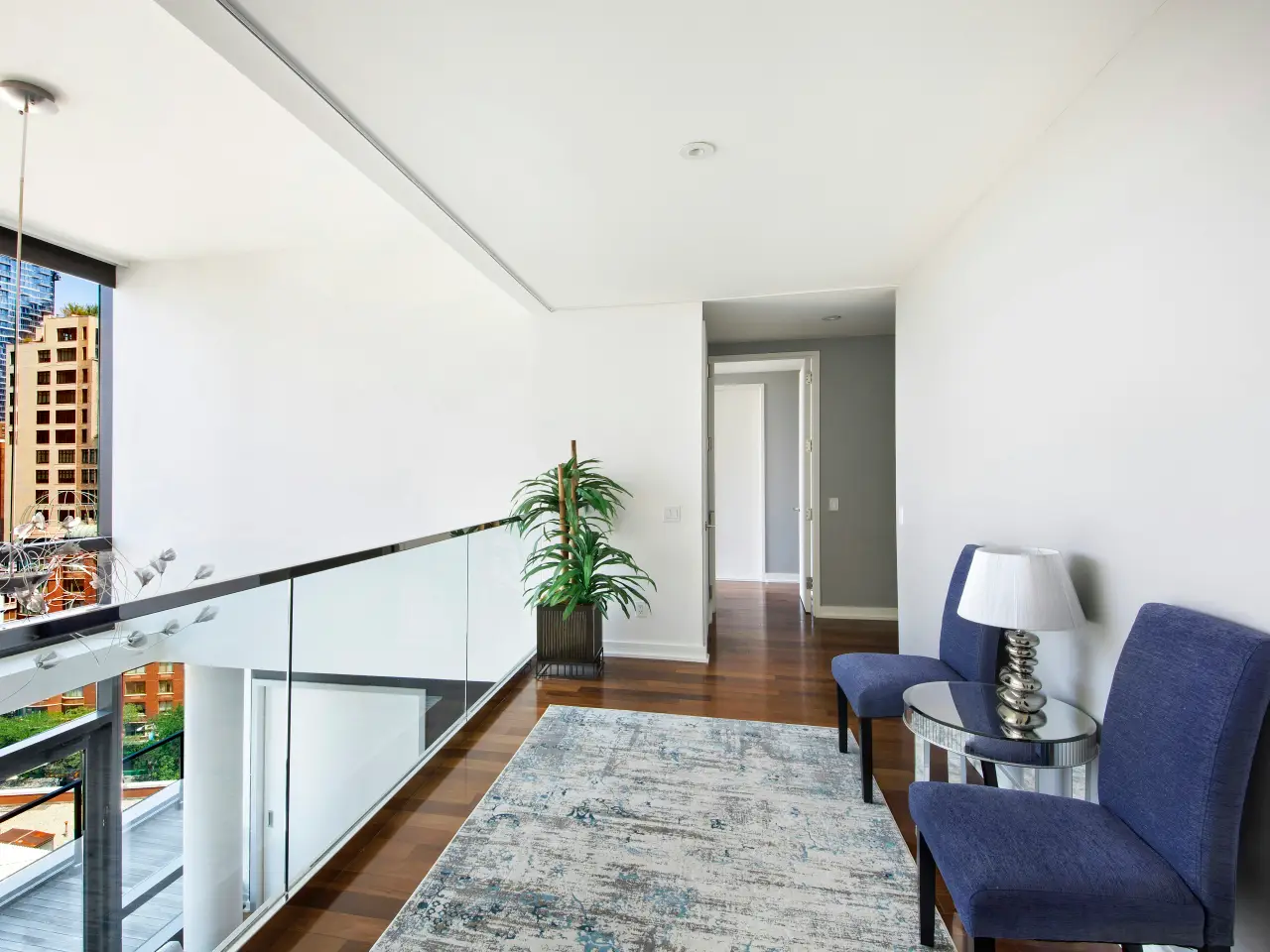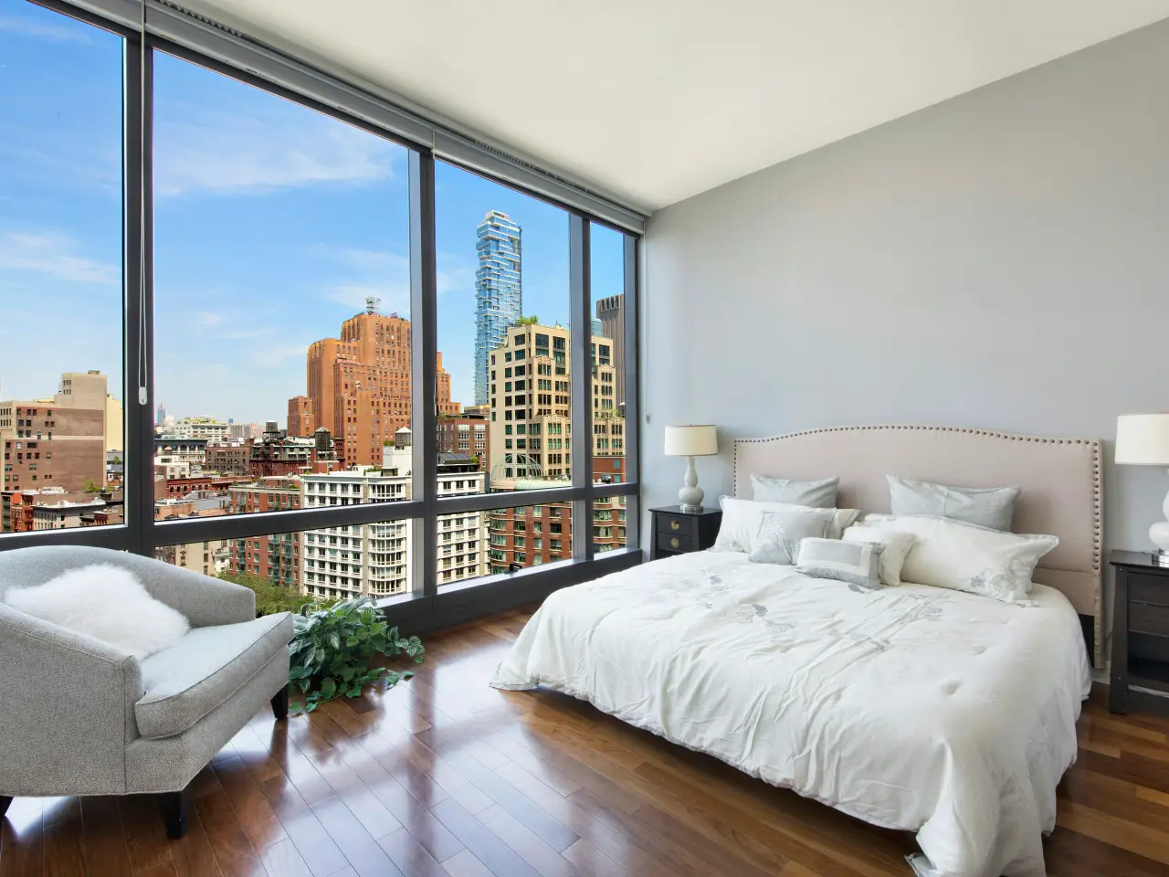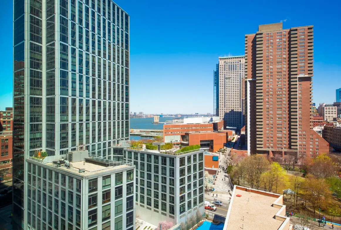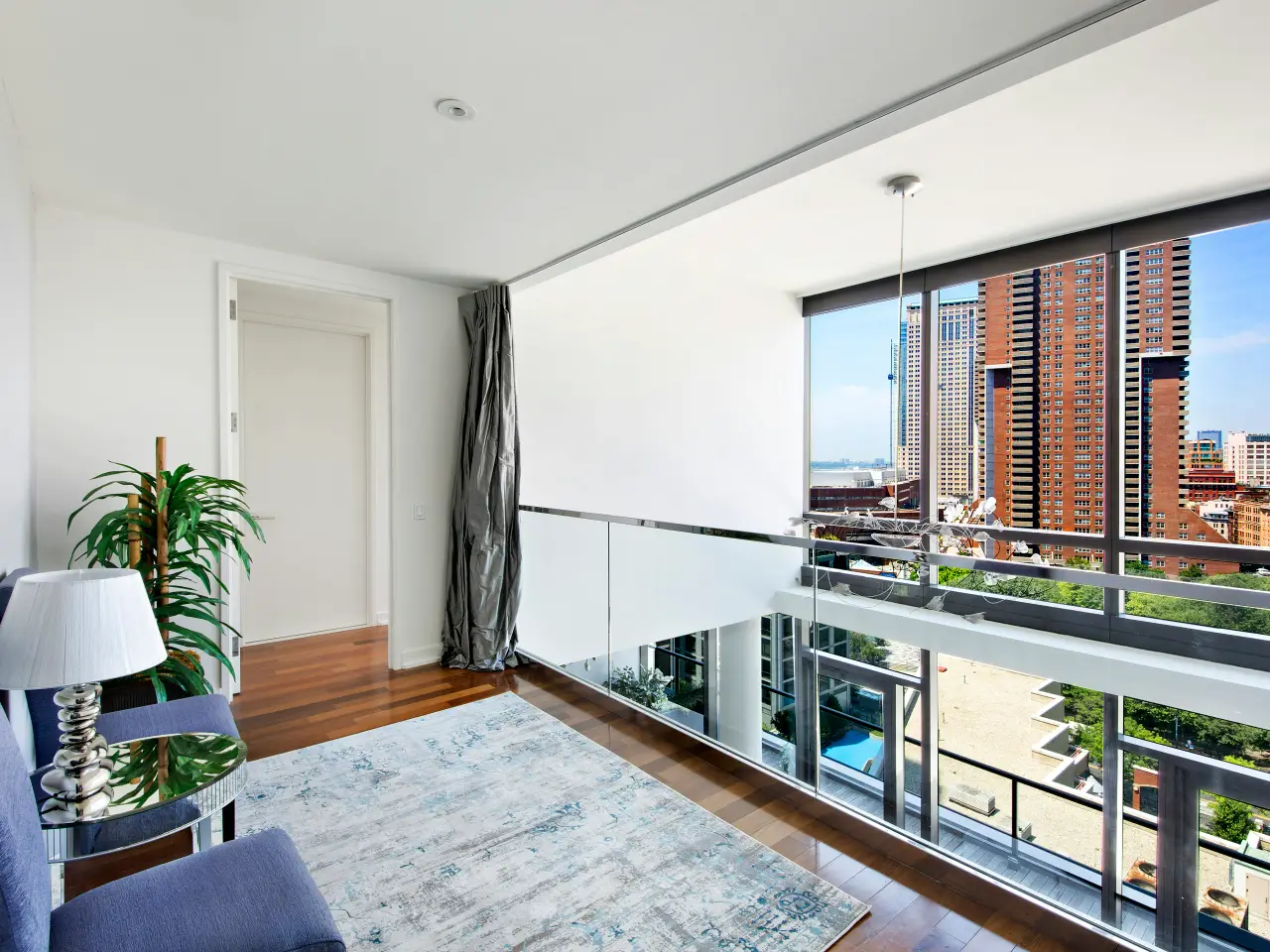 ON TOP OF IT ALL: Come enjoy an amazing top-floor 3-bedroom, 3-bathroom duplex that has 22' ceilings in the great room and 11' ceilings in the bedrooms. Most importantly, the great room, dining room, and third bedroom/library open to a spectacular 325' terrace with views for miles. An elegant curved staircase leads to a large mezzanine office area and two split bedrooms, each with an elegant en-suite bath. Every room in the apartment has unobstructed views over Duane Park to the Hudson River and Midtown. The apartment features a customized kitchen island and bedroom closets. 99 Warren Street offers a fitness center and spa, parking, children's play areas, a Bloomberg Financial Lounge, and a board room with a screening area. Pets allowed with owner's approval.