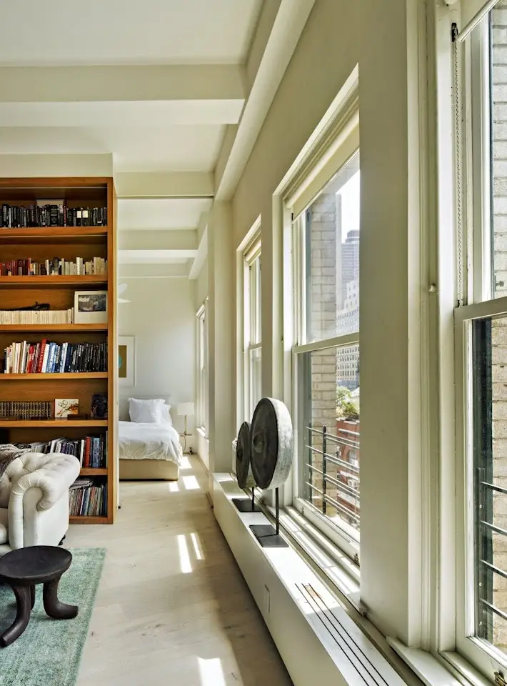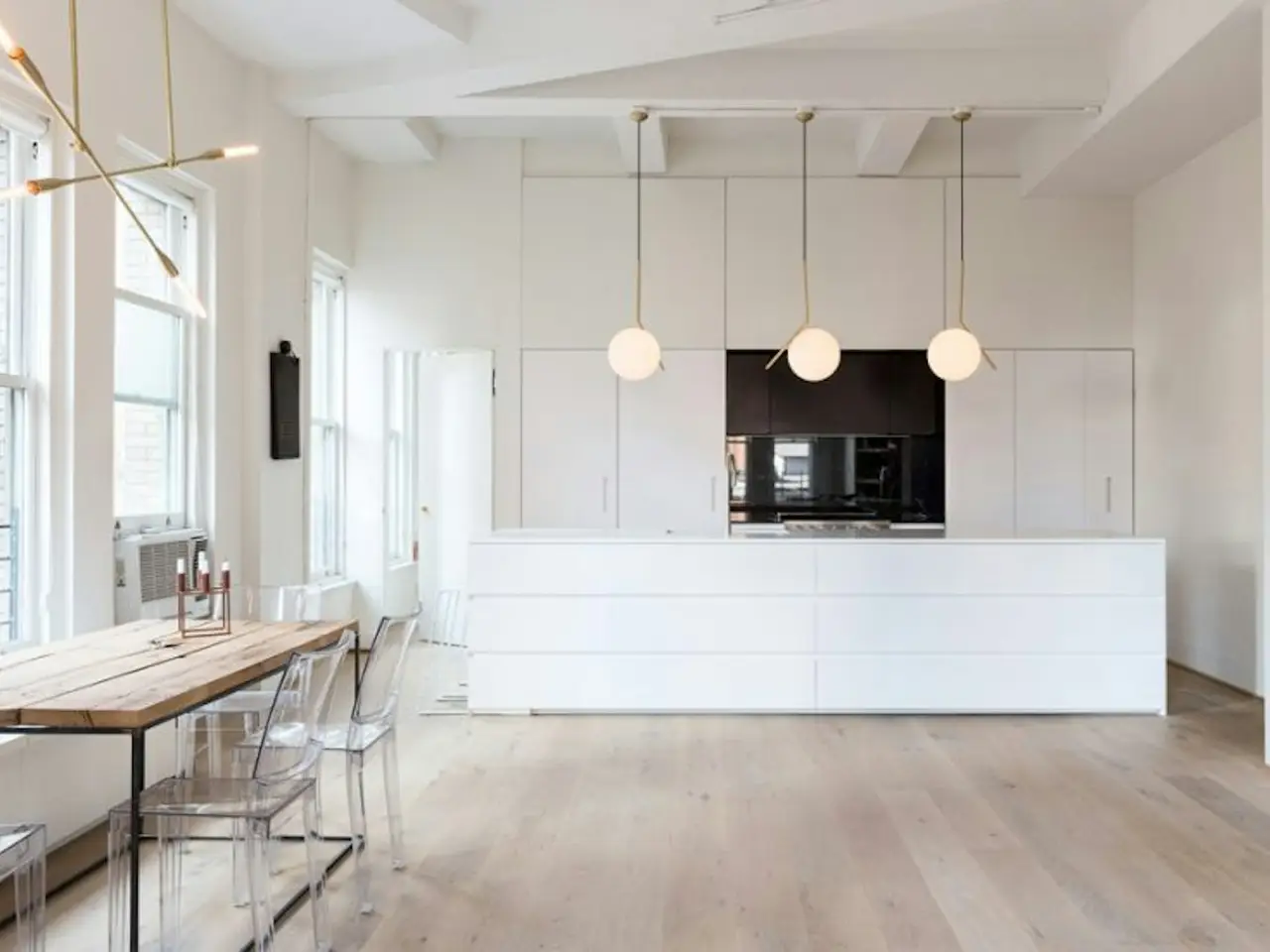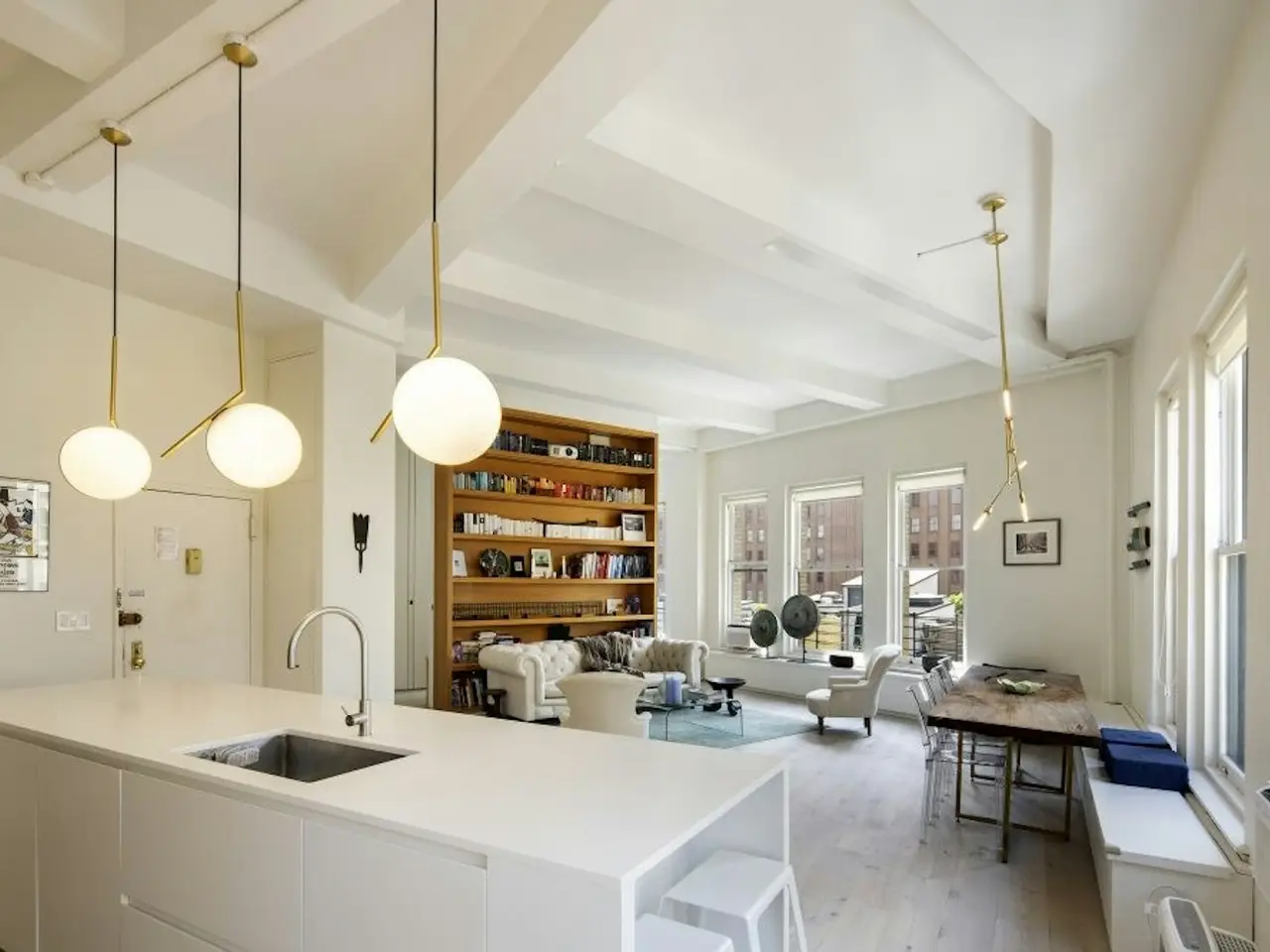 A rare opportunity to live in an EXCEPTIONAL TRIBECA LOFT!! Soaring 12 foot beamed ceilings throughout with dramatic floor-to-ceiling windows that flood every room with natural sunlight and showcase iconic open southern views of downtown Manhattan. From the moment you enter, a canvas unfolds, creating a harmonious tapestry of calm amid the energy and excitement of living perfectly positioned in the very heart of Tribeca, between Franklin and Leonard Streets. An artfully designed open-floor plan successfully integrates the living room, dining room and kitchen, all anchored by a 9.5 foot custom-designed, floor-to-ceiling oak bookcase. The ceiling in the living room cleverly conceals an electrically operated drop-down 93x39 Elite Screen for those stay-at-home immersive movie nights. The impeccably renovated open kitchen features a long center island with Corian countertops perfect for the master chef and for entertaining. Top-of-the-line appliances, include a Viking gas stove, Miele dishwasher and dryer, Gaggenau fridge and freezer, Wolf oven and range, U Line wine fridge, warming oven,pantry and an abundance of storage. An in-unit Miele washer-dryer of course! The adjacent dining area is as functional as it is beautiful, easily accommodating a 10-person table beneath striking designer lighting. It is ideal for intimate dinners or larger gatherings surrounded by picture postcard views of some of Tribeca's great architectural buildings. The primary bedroom is awash with its open southern exposure, accommodates a king-size bed and custom closets. The second bedroom enjoys the same radiant natural light and is perfect as a child's room, den, office or for your guest. The bathroom is nothing short of spa-worthy. Artfully designed to include double sinks and an oversized walk-in shower with dual large shower heads. This architect who created this beautiful apartment is Dieter Vander Velpen and was featured in the Belgian Financial Times as well as in the interior design book The Ultimate Guide to Apartments by Beta Plus. 100 Hudson Street is one of Tribeca's iconic boutique Loft buildings. With just a handful of residences, it offers quiet privacy, exceptional architectural character and a roof terrace with skyline views that stretch across the city. The very soul of TRIBECA is just outside your door cobblestone streets, Michelin-star dining, land-marked architecture, world-renown art galleries, and Hudson River park just a stone's throw away. Whether it's morning espresso at Bluestone Lane, brunch at Bubby's, dinner at Locanda Verde or a delightful stroll through Duane park, this is downtown living at its very best!! Offered furnished or unfurnished By Appointment. Welcome Home!!