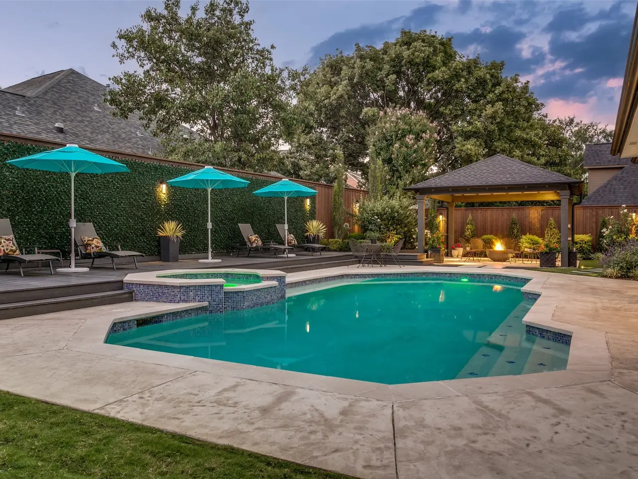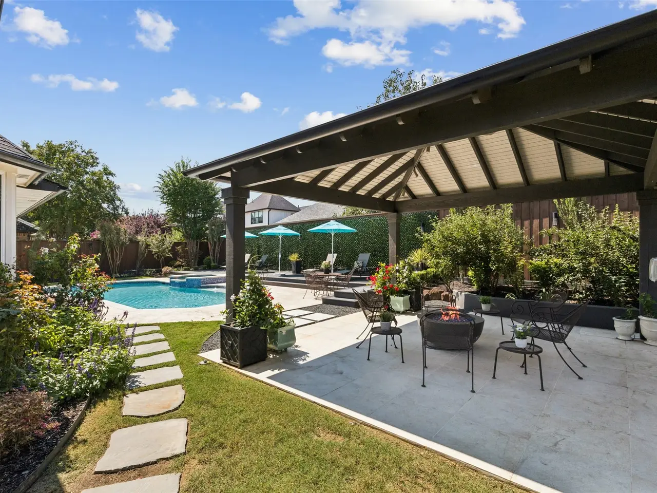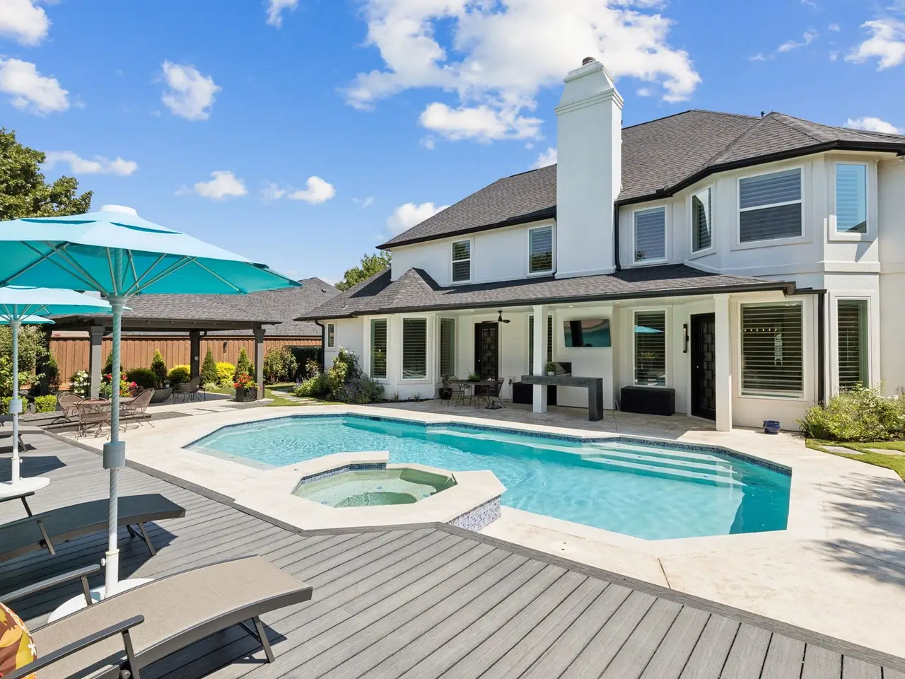 Welcome home to this beautifully updated, light and bright, four bedroom, three and a half-bath retreat with an elegant side-entry garage. From the moment you step through the graceful entryway, you're greeted by timeless charm whether it's hosting dinner parties in the formal dining room or enjoying quiet moments in the versatile formal living room or study. The heart of the home is the gourmet kitchen, featuring a large center island with seating and additional storage beneath, updated Wolf and Jennair and Gaggenau appliances, a cozy breakfast nook, and an abundance of custom cabinetry with ample storage for your family chef. The spacious primary suite is a true sanctuary, complete with a relaxing sitting area, private backyard views, and direct access to your outdoor oasis. The spa-inspired bath invites you to unwind with elegant finishes, dual vanities, a soaking tub, and an expansive custom closet. Upstairs, a generous game room provides endless possibilities, while three oversized bedrooms, each with walk-in closets, offer comfort and privacy for family and guests alike. Step outside and discover your own backyard paradise: a sparkling pool and spa, an inviting cabana with soft lighting and ceiling fan, and a built-in grilling station, an entertainer's dream. Whether it's a summer barbecue or a serene evening under the stars, this outdoor space was designed for unforgettable moments. The spacious three car garage with room for storage and epoxy-coated flooring completes the picture. Fully updated in 2023 by renowned local interior designer, the home is move-in ready. This home combines everyday comfort with extraordinary style all within walking distance to trails around Lake Grapevine.