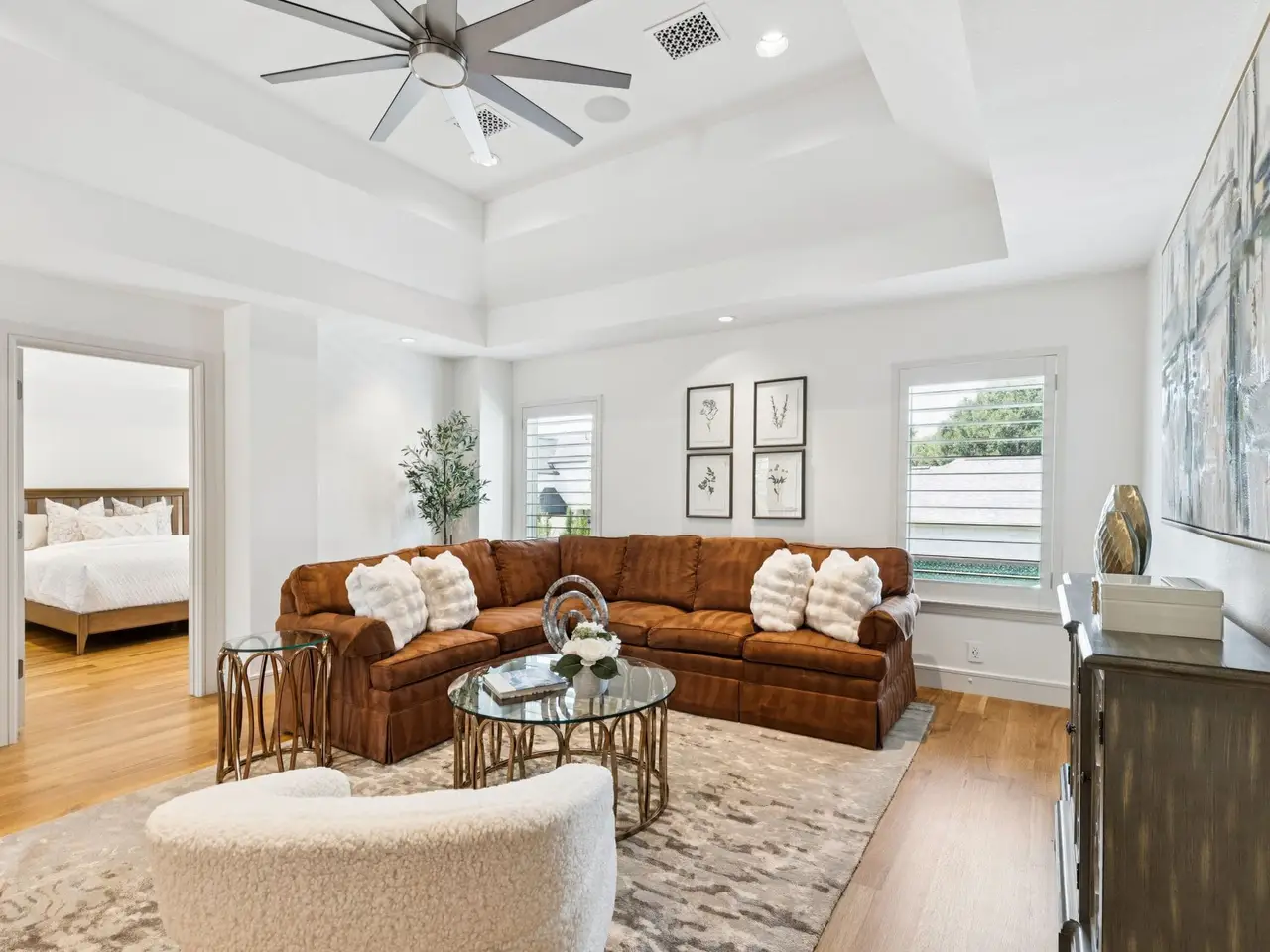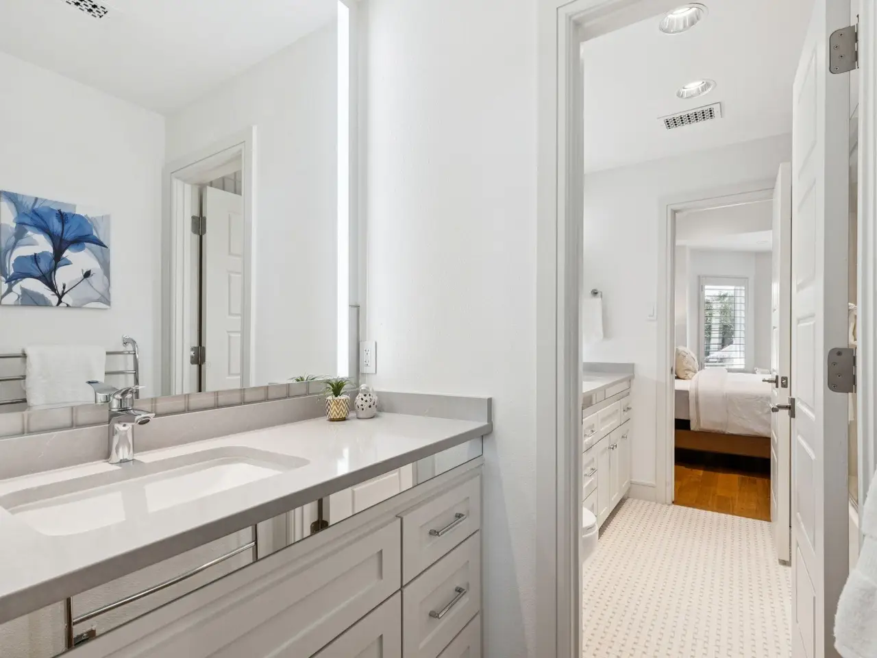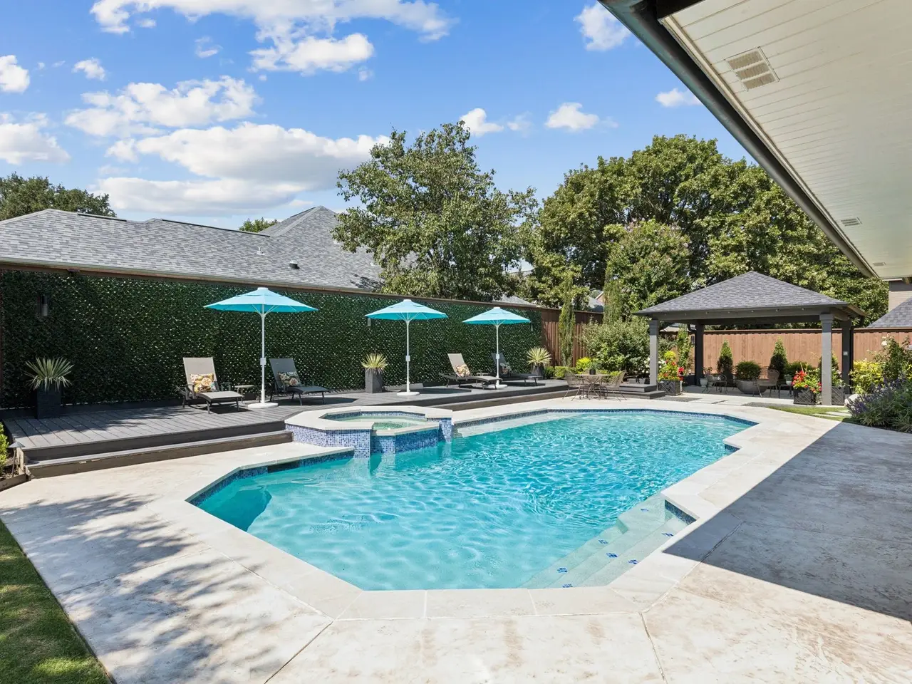 Welcome home to this beautifully updated, light and bright, four bedroom, three and a half-bath retreat with an elegant side-entry garage. From the moment you step through the graceful entryway, you're greeted by timeless charm whether it's hosting dinner parties in the formal dining room or enjoying quiet moments in the versatile formal living room or study. The heart of the home is the gourmet kitchen, featuring a large center island with seating and additional storage beneath, updated Wolf and Jennair and Gaggenau appliances, a cozy breakfast nook, and an abundance of custom cabinetry with ample storage for your family chef. The spacious primary suite is a true sanctuary, complete with a relaxing sitting area, private backyard views, and direct access to your outdoor oasis. The spa-inspired bath invites you to unwind with elegant finishes, dual vanities, a soaking tub, and an expansive custom closet. Upstairs, a generous game room provides endless possibilities, while three oversized bedrooms, each with walk-in closets, offer comfort and privacy for family and guests alike. Step outside and discover your own backyard paradise: a sparkling pool and spa, an inviting cabana with soft lighting and ceiling fan, and a built-in grilling station, an entertainer's dream. Whether it's a summer barbecue or a serene evening under the stars, this outdoor space was designed for unforgettable moments. The spacious three car garage with room for storage and epoxy-coated flooring completes the picture. Fully updated in 2023 by renowned local interior designer, the home is move-in ready. This home combines everyday comfort with extraordinary style all within walking distance to trails around Lake Grapevine.