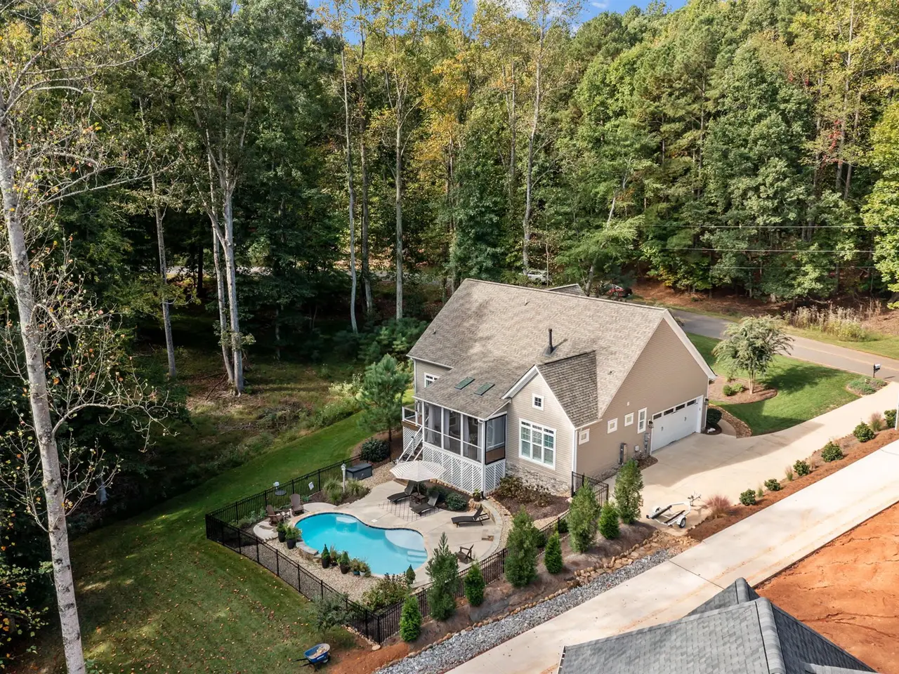 Leave the city behind and discover your peaceful escape in this immaculate 3 bedroom, 3 bath home. Graced by nature's backdrop and the beauty of Lake Norman, this custom-built home features vaulted ceilings and large windows that frame a view of the inground pool with a charming waterfall feature. Imagine yourself relaxing on the back deck or lounging by the pool enjoying the stunning natural landscape and view of the lake. There is space along the backyard shoreline to launch a kayak and float your cares away. Inside, the home offers elegant charm, with a cozy fireplace in the great room, a lovely main level primary suite, as well as a main level guest bedroom and full bath. Off of the welcoming foyer, you will also find a private office. The acre lot offers a blank canvas for a custom garden or perhaps additional outdoor entertaining space. This home is more than just a place to live; it's a quiet promise of a more tranquil life. Come visit today.