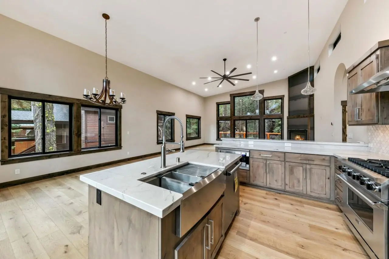 Luxurious Brand New mountain modern home, located in the highly sought after Tahoe Donner community. Features an open concept living room with a custom designed gas fireplace with metal surround. Gourmet kitchen that includes Viking stainless appliances, custom alder cabinets and quartzite counters. Beautiful and spacious lot with tree views from every window. Upper level redwood deck, plumbed for natural gas for outdoor grilling that overlooks the serene backyard setting. Primary suite includes gas fireplace with stone surround, walk in closet and spa-like bath with marble walk-in shower and free standing soak tub. Includes a bonus room/possible fourth bedroom with access to the backyard. Central Heating and Air Conditioning with Dual zoned Nest, Pre-wired to charge electric vehicle in garage. Backyard includes natural landscape and paver patio with 220V installed for hot tub. Attached 2 car garage that is fully insulated and plenty of room to store lake toys and outdoor gear. HOA includes pool, golf, tennis, ski resort, boat launch and more. Tahoe Donner Trout Creek Recreation Center is just a five minute drive away.
