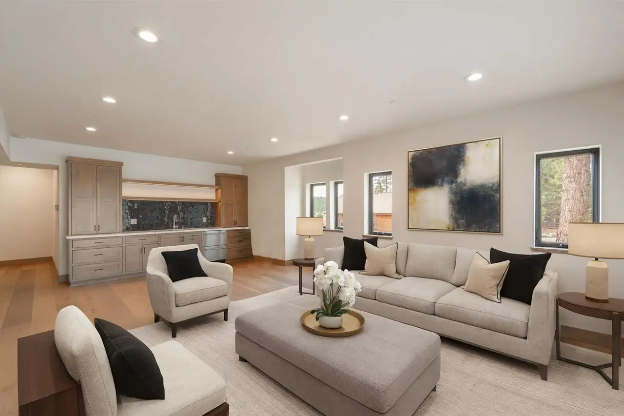 Welcome to this beautiful compound, built in 2022, with its stunning main property (2,643 SF) and a delightful ADU (744 SF) located in Truckee's coveted Cambridge Estates neighborhood. 15518 Chelmsford Circle brings custom luxury finishes, great views, a .9-acre FLAT home site, solar, generator, air conditioning and so much more! Enjoy the sleek, contemporary design highlighting the spacious great room with its modern, gas fireplace, designer lighting, hardwood flooring, electric window coverings, upgraded chef's kitchen and a large front deck with meadow, peak and ridge views! The main living level brings a luxurious primary suite, large walk-in closet and its own private deck. Two spacious bedrooms and bathroom are also located on this floor. The lower level brings a BIG family room, dry bar with extensive built in cabinetry - perfect for your media center - plus a spacious ensuite bedroom and extensive storage. You'll LOVE the large garage with its e-charger, epoxy floor finish and enclosed heating/air/solar infrastructure closet. The ADU brings a charming 744 SF, one bedroom and bath living space with front and rear decks, a smaller version of the main property's chef's kitchen, living area with a gas fireplace, plenty of sunshine and pretty views. Below the ADU, the large car garage with two separate bays - a 2 car garage and a RV garage - brings extensive storage opportunities for your Truckee-Tahoe sports equipment. If you love outdoor living, there is plenty of space to design your garden paradise. This special property brings all the accoutrements of luxury living in this coveted and upscale neighborhood. Enjoy the convenience of being so close to Truckee, explore the extensive trail systems, experience easy living with low snow load and if you intend to live full time with a young family, the acclaimed Glenshire Elementary School is sure to please! Welcome to this RARE property and your new home in the mountains!