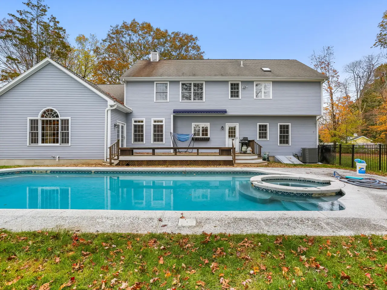 Stately Colonial retreat with Sunset Views and Pool Oasis...Privately situated on a rear lot, this Massive Colonial home opens to expansive, sunlit fields offering breathtaking sunset views year-round. The Main Level feaures spcious Entertaining Areas with Gleaming Hardwood Floors and 9'+ Ceilings, creating an Open and Elegant flow throughout. The Primary Bedroom Suite includes Hardwood Flooring, an Oversized Bath with Jetted Soaking Tub, separate Shower, and Custom Walk-In-Closet fitted with built-in organizers. Three Additional Bedrooms feature New Carpeting and ample storage provides perfect flexibility for Modern Living. Step outside to beautifully landscaped grounds with a Large In-Ground Pool and Spa, both solar co-heated for efficiency. A Spacious Deck with a Sunsetter Awning overlooks the open fields, ideal for outdoor dining or relaxation. Additional highlights include a 3-Car Garage (has the potential to accommodate 6 Cars total if lifts were installed) Ample Private Parking, Generac Generator System for peace of mind. Recent upgrades include a solar pool heating system and on-demand hot water heater. The oversized playset is also included. Enjoy your own private enclave just mintes from all the wonderful amenities Trumbull has to offer-parks, shopping, schools and commuter routes.
