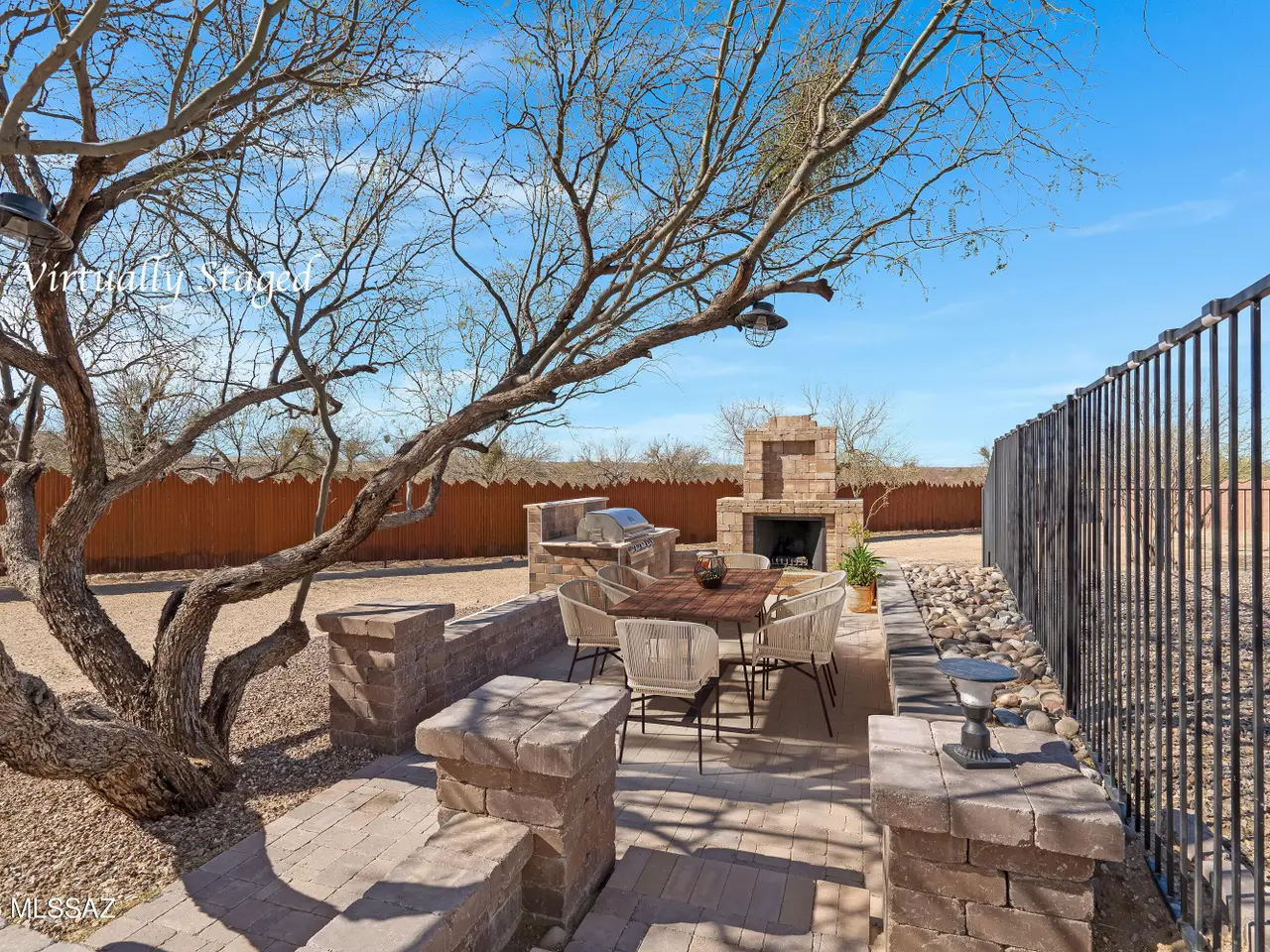 - Finished yard with BBQ and fireplace