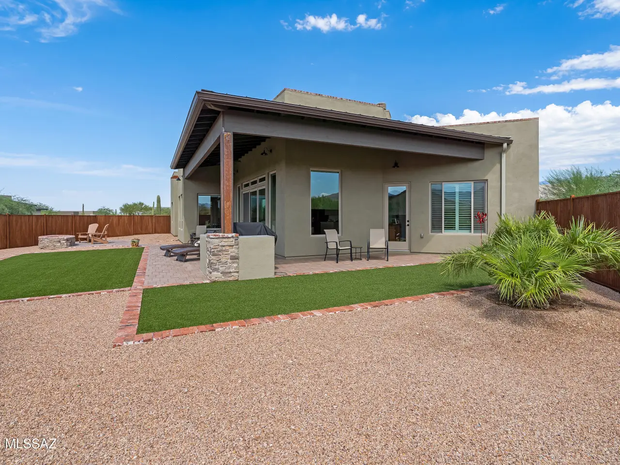With views of the Rincon Mountains outside and luxurious finishes inside, this stunning Tanque Verde Valley residence awaits you. This impressive 4- bedroom, 3.5 bathroom single-family home in the gated Rancho Soldados community blends the serenity of our Sonoran Desert with the comfort and style of a truly custom home. The spacious layout features soaring ceilings, light-filled interiors, and a split floor plan for added privacy. In addition to the bedrooms, you'll find both an office and a bonus room, perfect for working from home or creating flexible living spaces. The gourmet kitchen is a true centerpiece, complete with a walk-in pantry, wine fridge and warm yet modern finishes. The primary suite is a retreat with a luxurious bathroom featuring a soaking tub, separate shower and dual vanities. Step outside to enjoy a beautifully designed backyard with artificial grass, custom fire pit, paver patios, and a handcrafted metal fence with trellis panels- ideal for both relaxing and entertaining. Situated on nearly an acre, the property also includes a 3-car garage, providing ample space for parking and storage. This home combines thoughtful design, functionality, and magnificent views to create the perfect retreat.