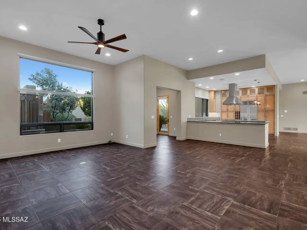 A superb blend of southwestern and contemporary architecture and design makes this an ideal retreat on the grounds of, the recipient of Michelin Guide honors, Canyon Ranch Health and Fitness Resort. The current improvements, additions, and remodeling done with delicate simplicity and quality construction adhering to minute details in its functionality. A comfortable open floor plan flows seamlessly from the living room through the kitchen and the dining area into the rest of this 4 bedrooms and 4 bathroom house. A wide streamlined 10 ft electric fireplace adds soothing warmth to the space. Fine quality of the custom-designed kitchen cabinets, granite tops and the high-end appliances is immediately apparent. Primary Suite includes a workout studio, floor to ceiling windows inviting in landscape and the Rincon Mountain views. Second and third bedrooms enjoy ensuite bathrooms and spacious walk-in closets. High-end porcelain tiles flooring, except for the fitness room, laid with special luxury vinyl plank flooring recommended for heavy workouts and waterproof surfaces provides comfort, safety and flexibility. Enjoy the views while entertaining friends on your multi-level travertine tiled patio descending towards a custom designed pool and spa. Desert plants and mature saguaro cacti breathe life into these immaculately landscaped grounds. The detached pool house/studio has full bathroom and a closet. Enjoy total immersion into Canyon Ranch healthy living philosophy and recharge and rejuvenate. Start your early morning walk on the iconic 2 mile loop followed by plethora of group fitness classes, meditation, yoga, pilates, aerobics and strength at the spa and gym facilities. Treat yourself to a massage, consult with expert practitioners, counselors and physicians in areas of nutrition, integrative and traditional medicine. Enjoy organized desert and mountain hikes and cycling. Build an appetite for healthy, delicious meals at one of the two dining venues. All at your fingertips.